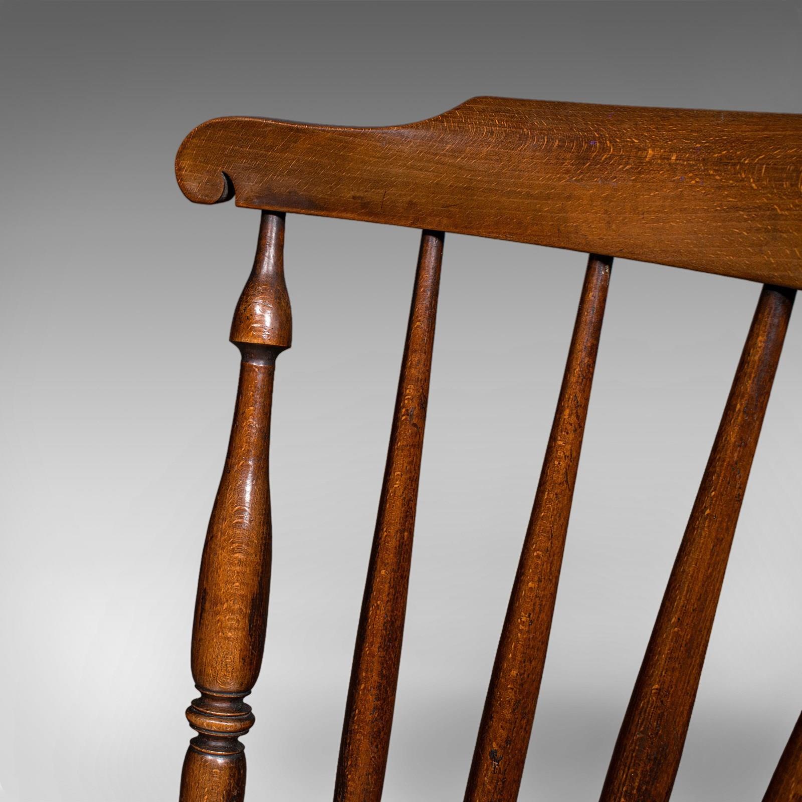Four turned spindles framed with a pair of oblique baluster supports create the back rest