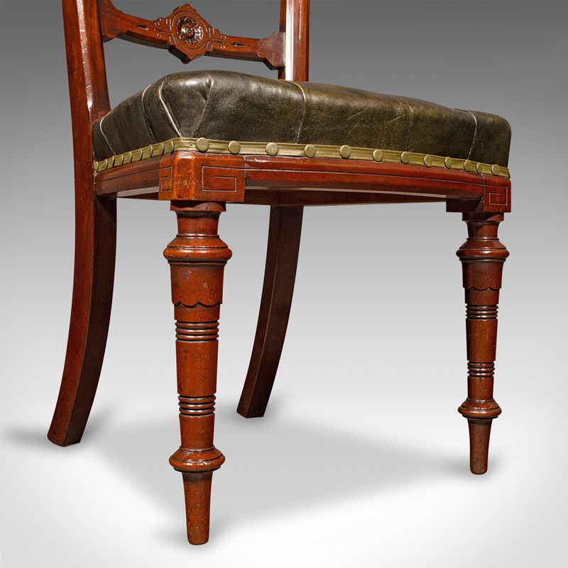 Set Of 8 Antique Dining Chairs, English, Walnut, Leather, Victorian, Circa 1870