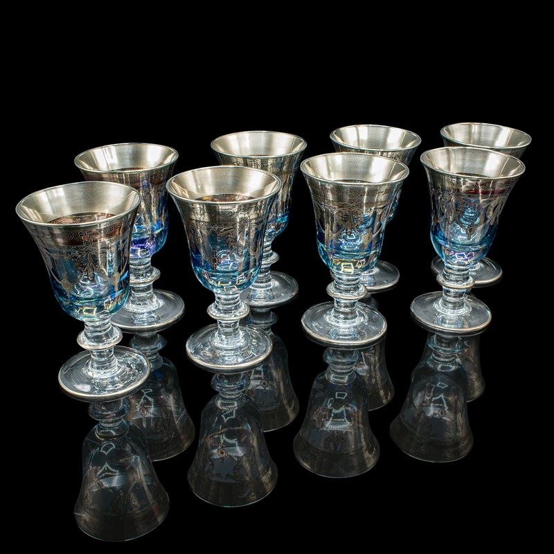 Set Of 8 Vintage Wine Goblets, Italian, Handmade Art Glass, Aperitif, Liqueur
