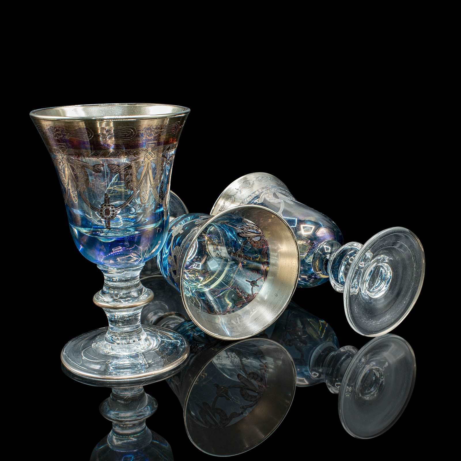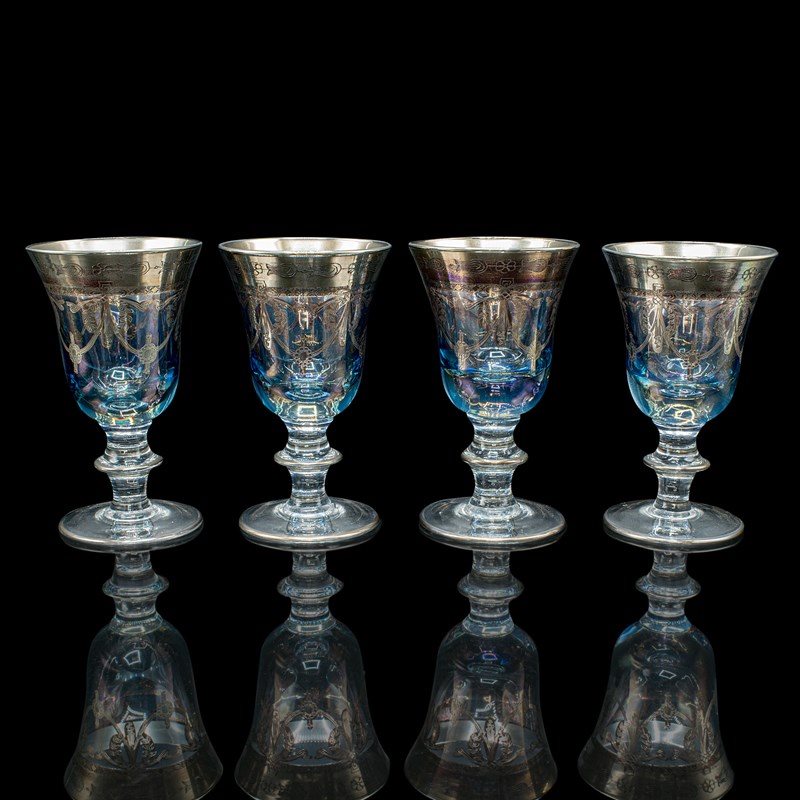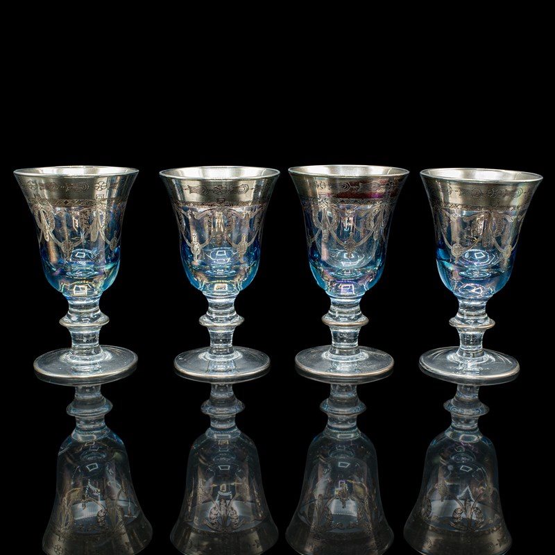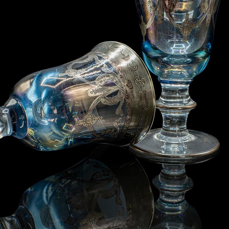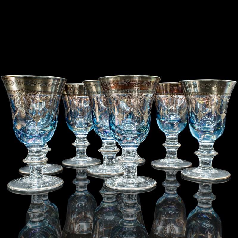 With their elegant form and vivid colouring, this set of Italian vintage wine goblets will bring a stylish flourish to any dining table, drinks cabinet or collector’s showcase. Delivered ready for the home.