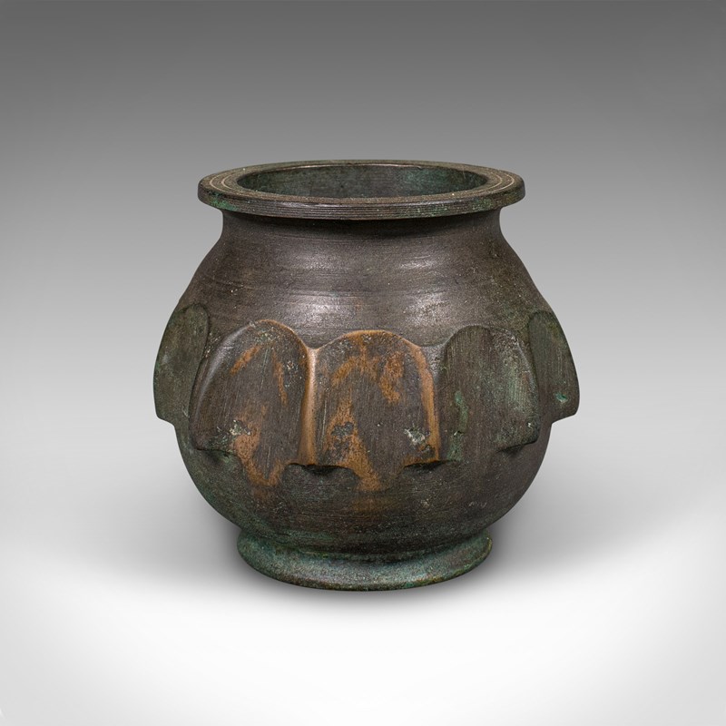 Small Antique Calligraphy Ink Pot , Japanese, Meiji, Bronze Inkwell, Victorian