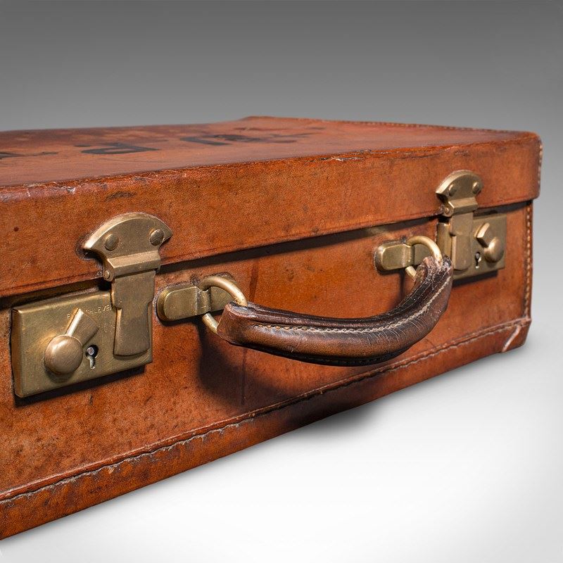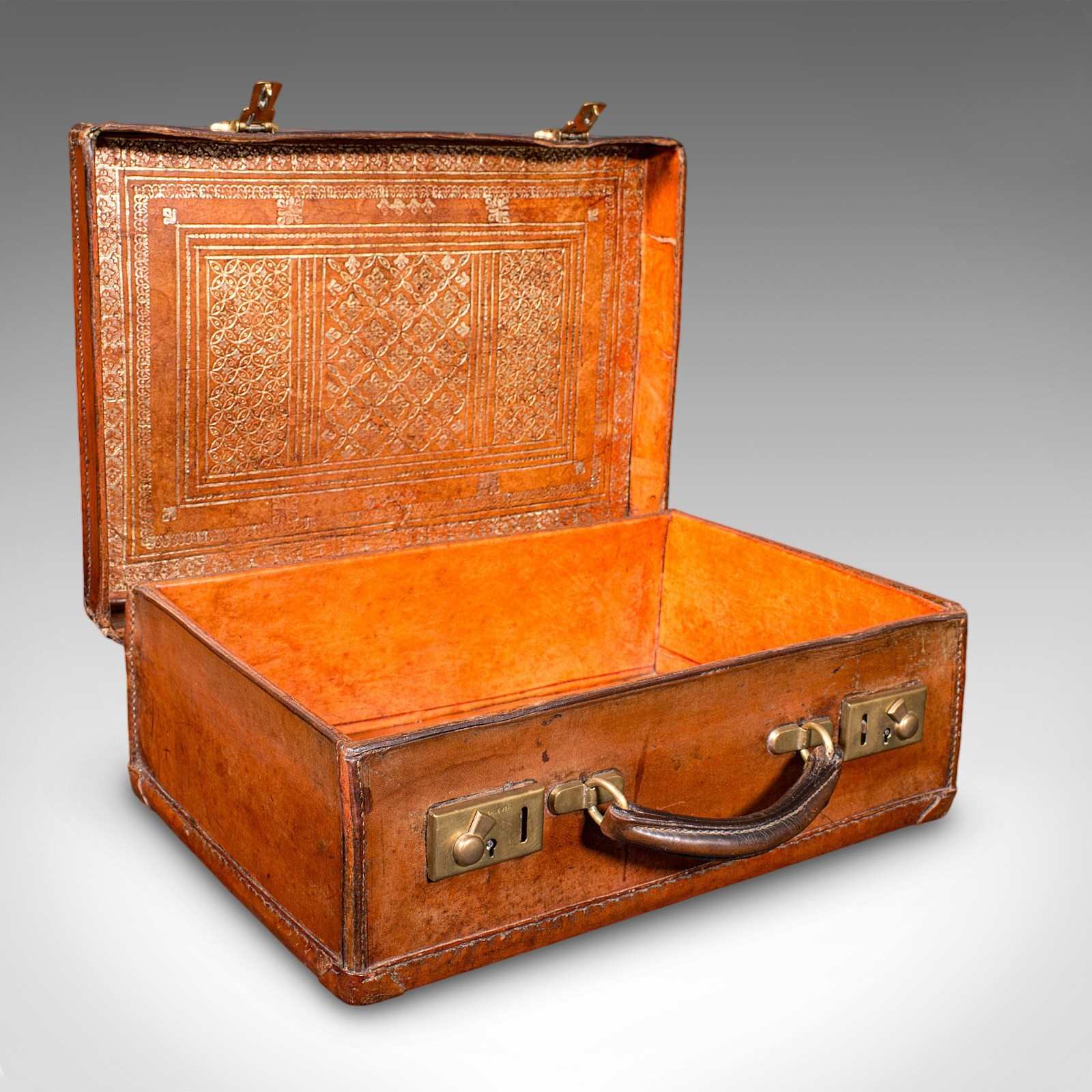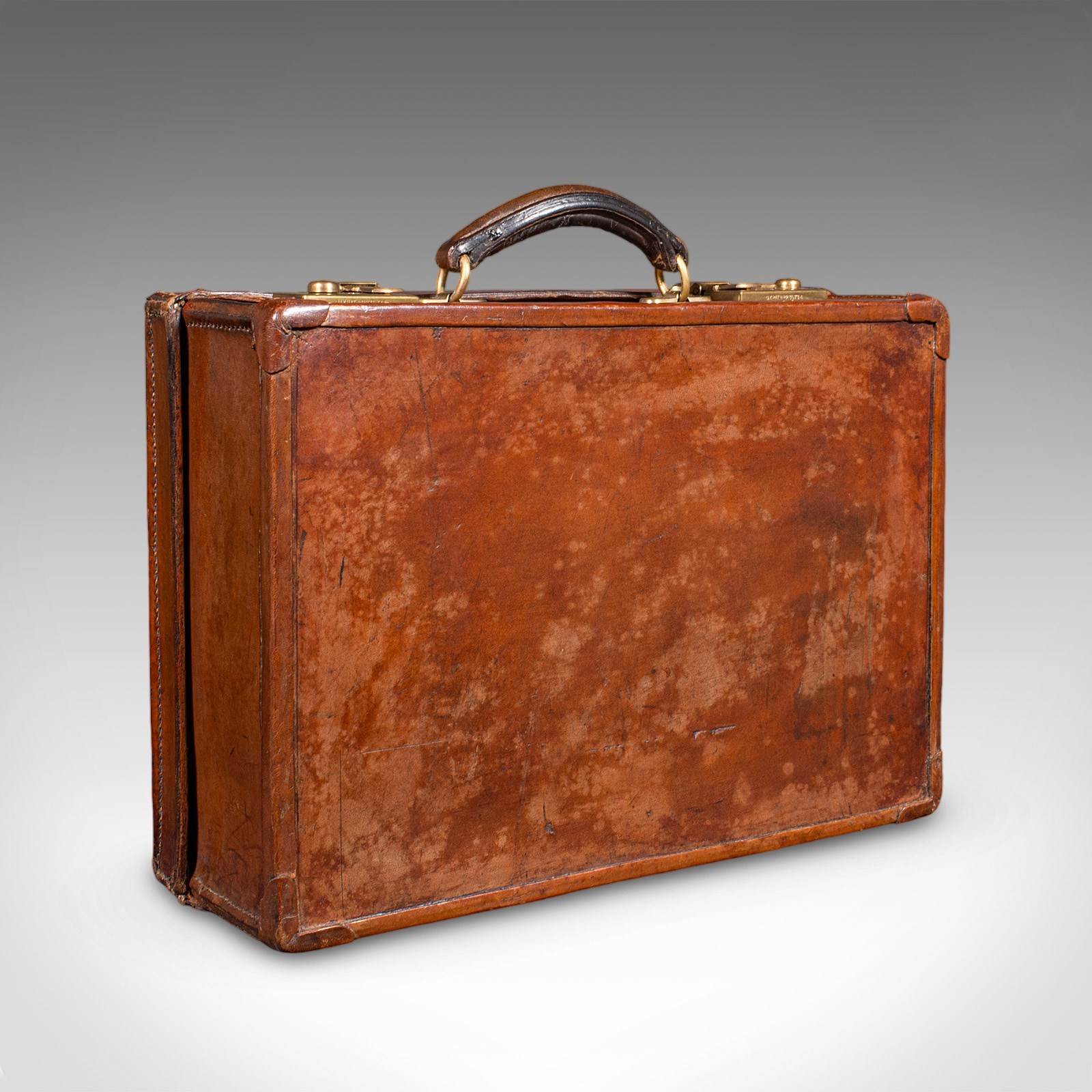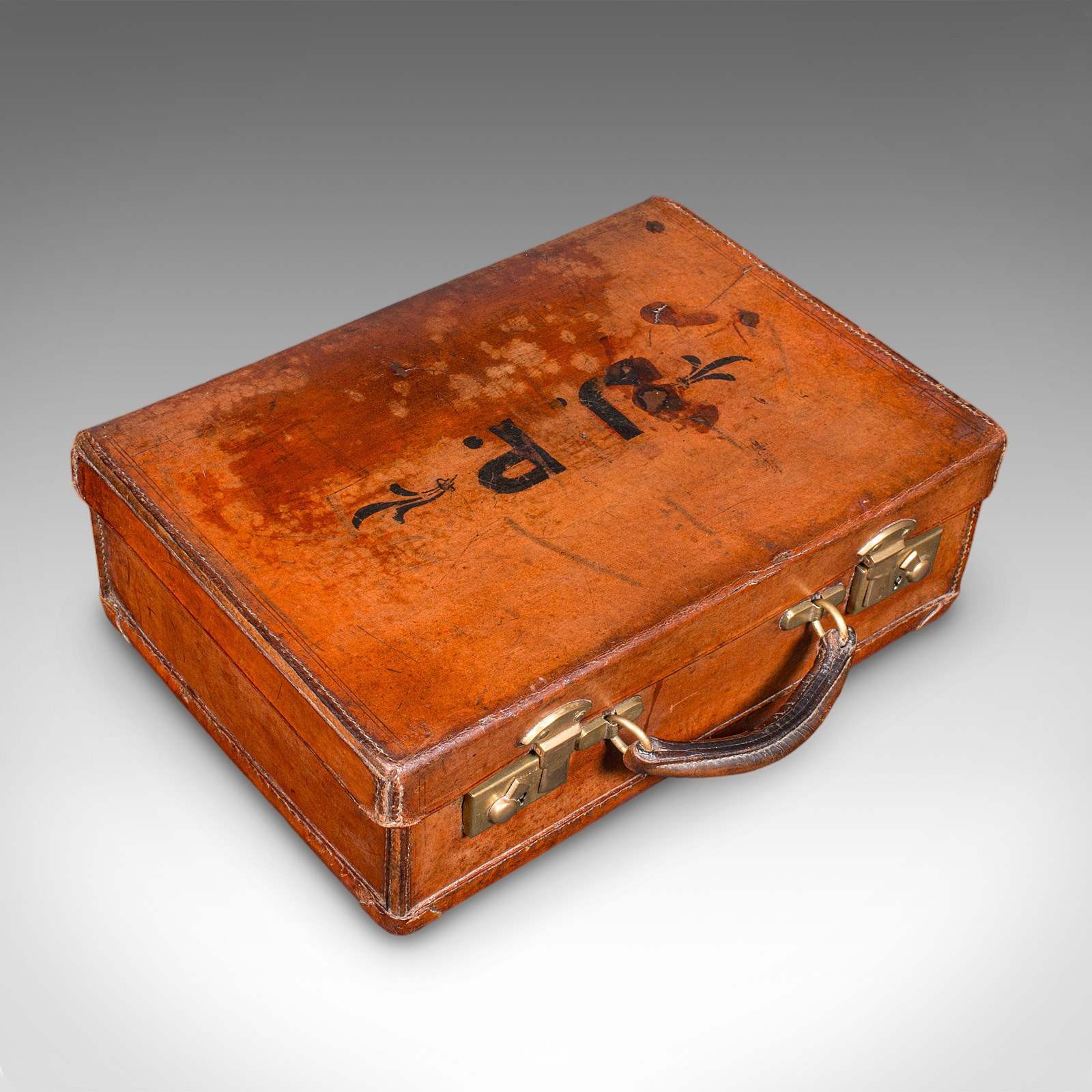 Small Antique Clerk's Suitcase, English Leather Attache Case, Revival, Victorian