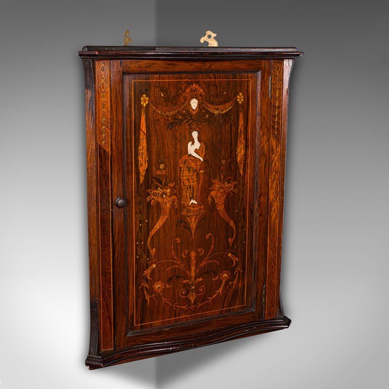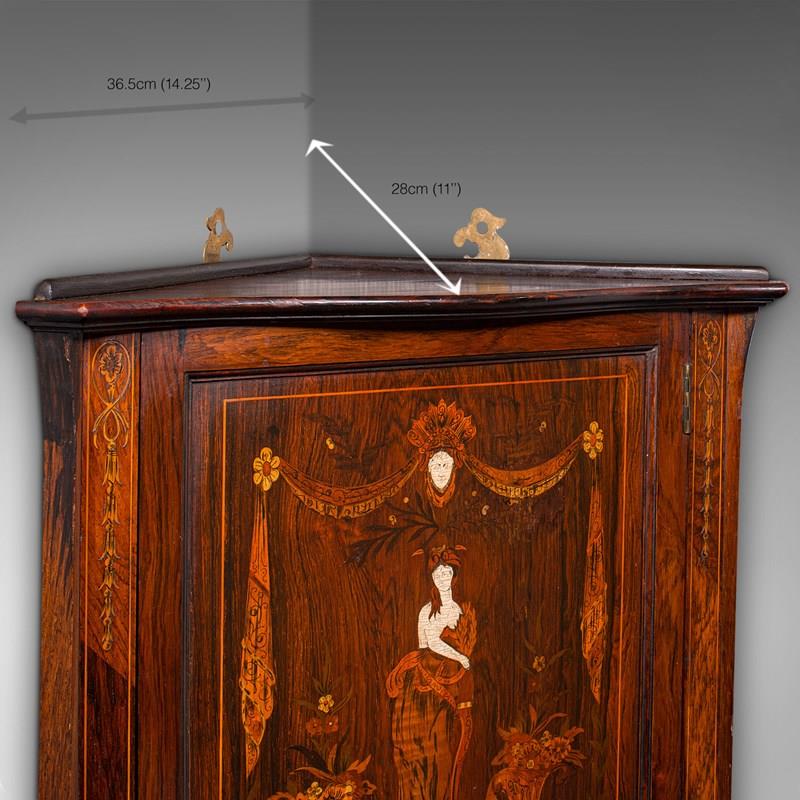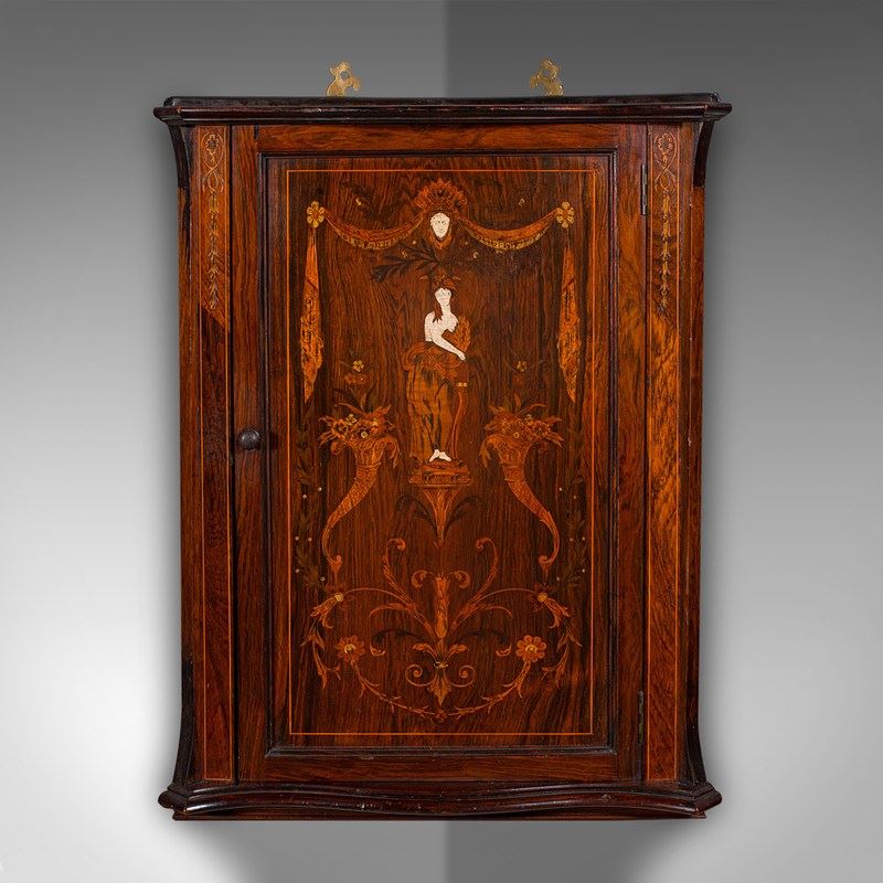 This Edwardian corner cabinet delights with its unusual inlay and elegant form — a superb piece for those seeking to enhance a period setting or display collection with subtle character. Solid joints and construction, delivered ready for the home.