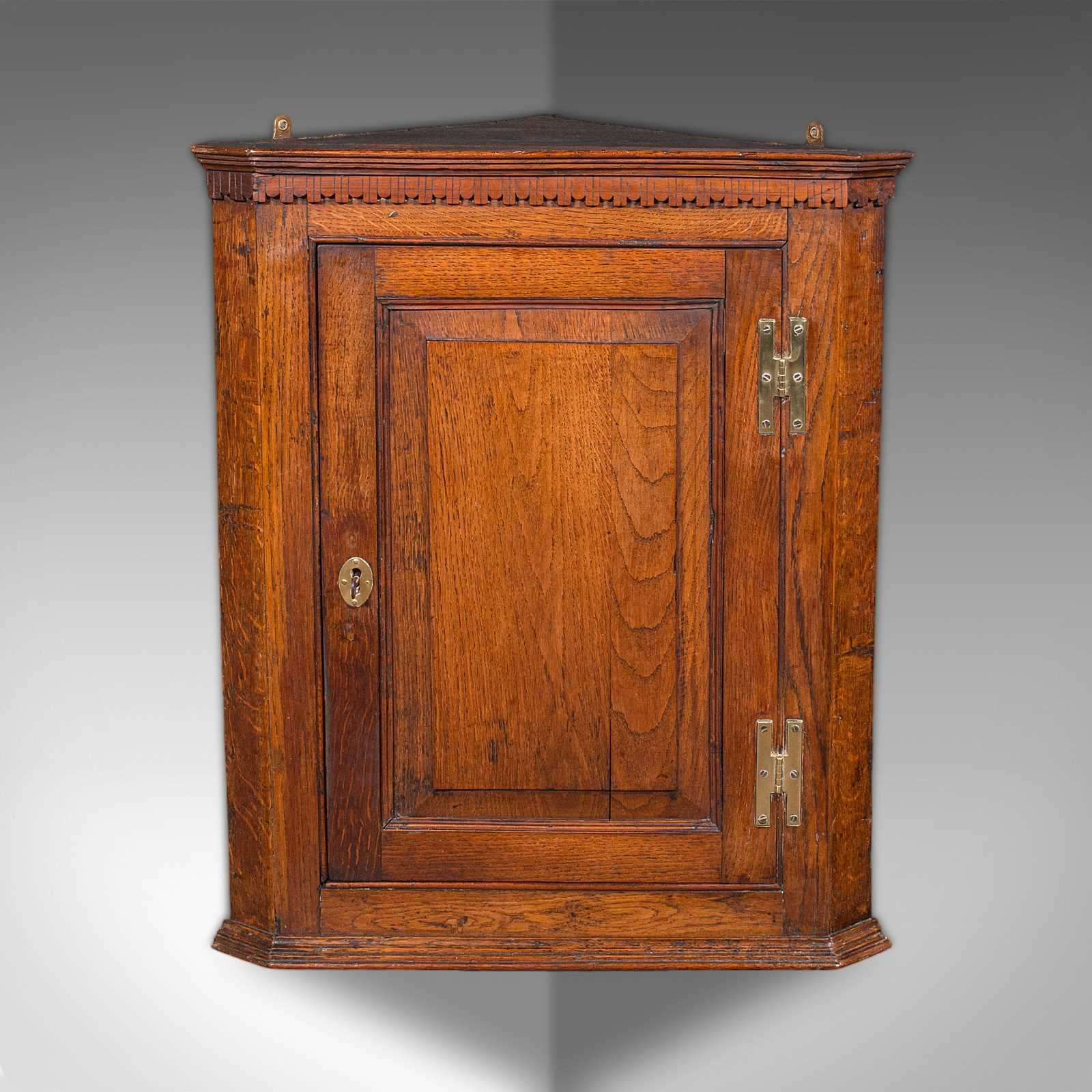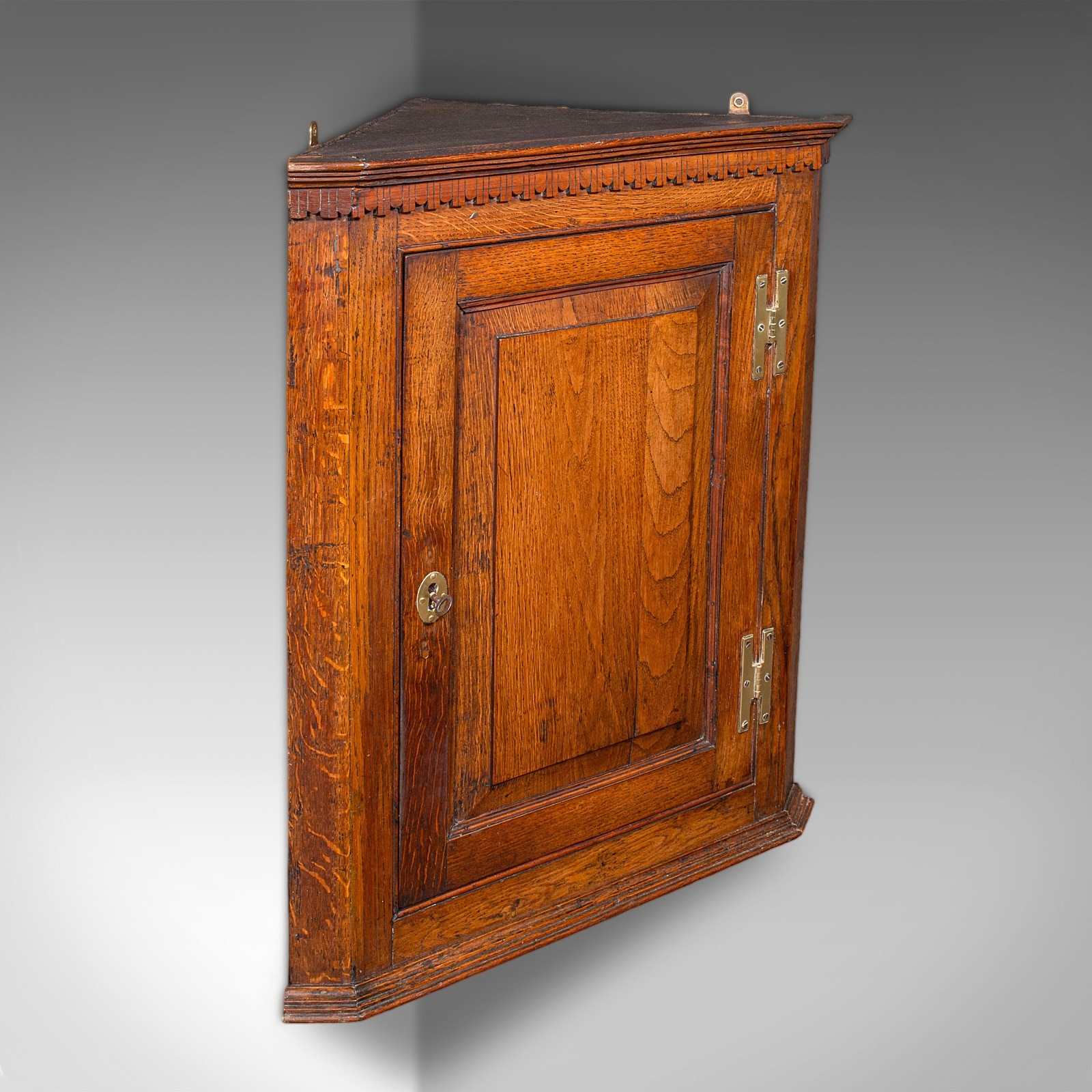 Small Antique Corner Cabinet, English, Golden Oak, Hanging Cupboard, Georgian