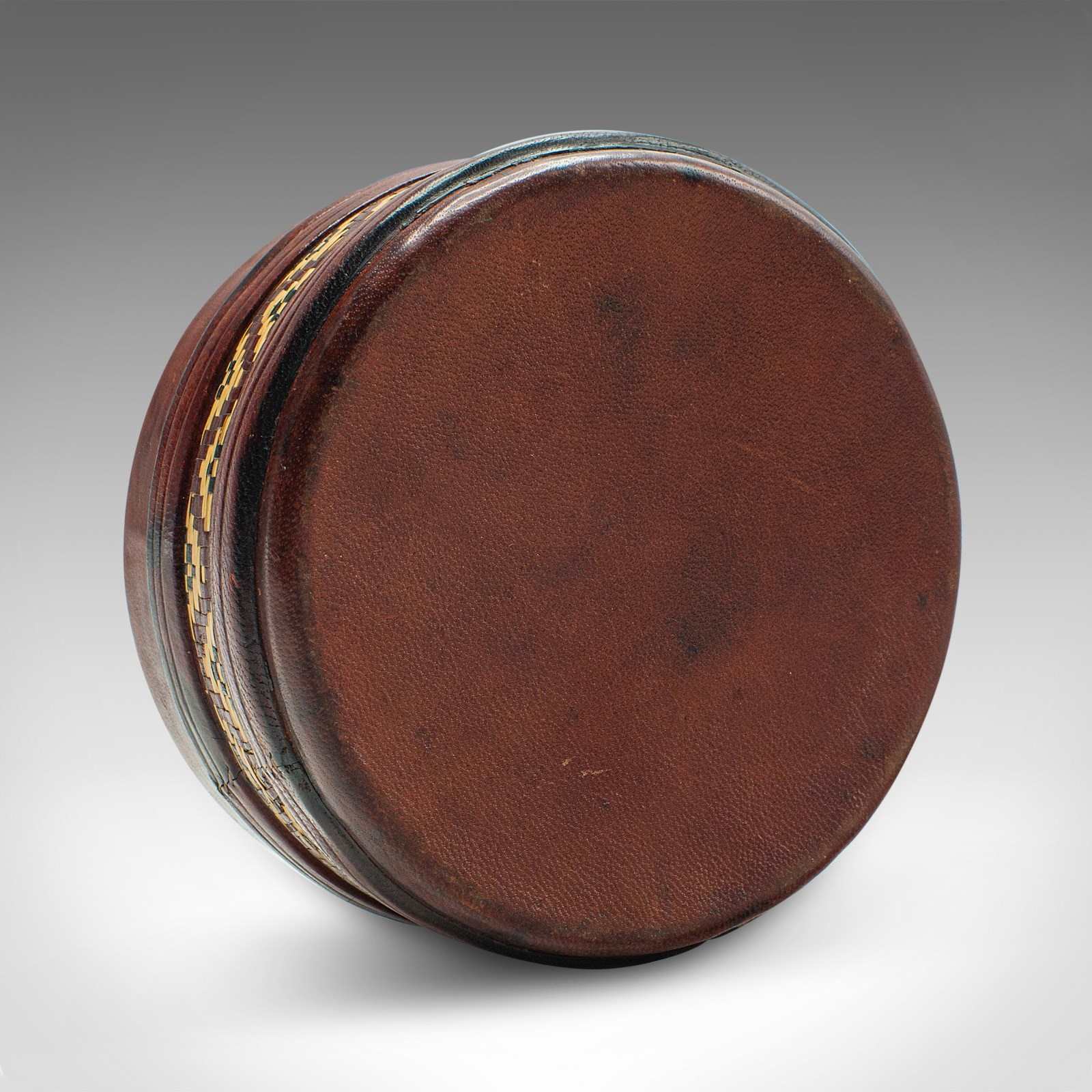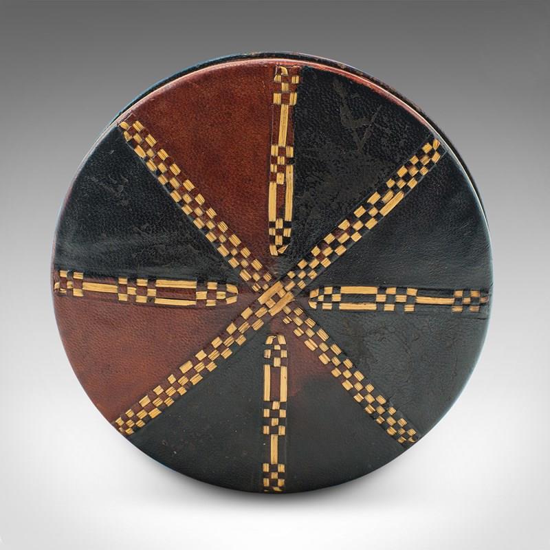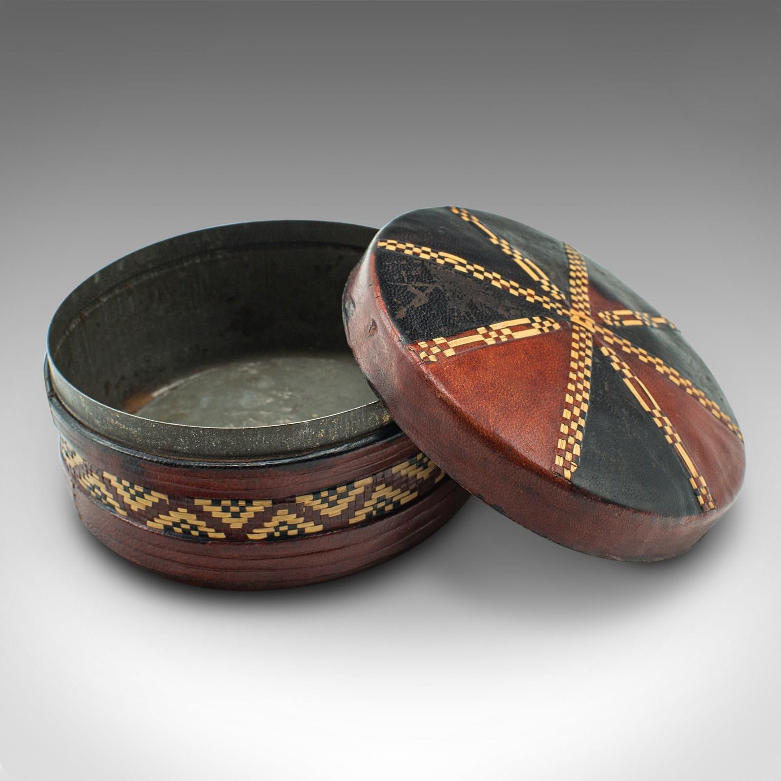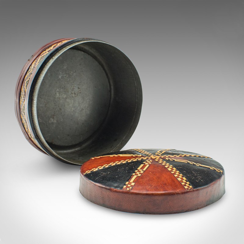Small Antique Desk Tin, English, Leather, Desktop, Stationery Pot, Edwardian