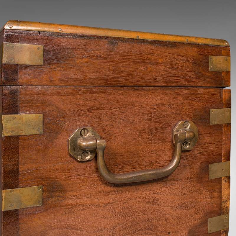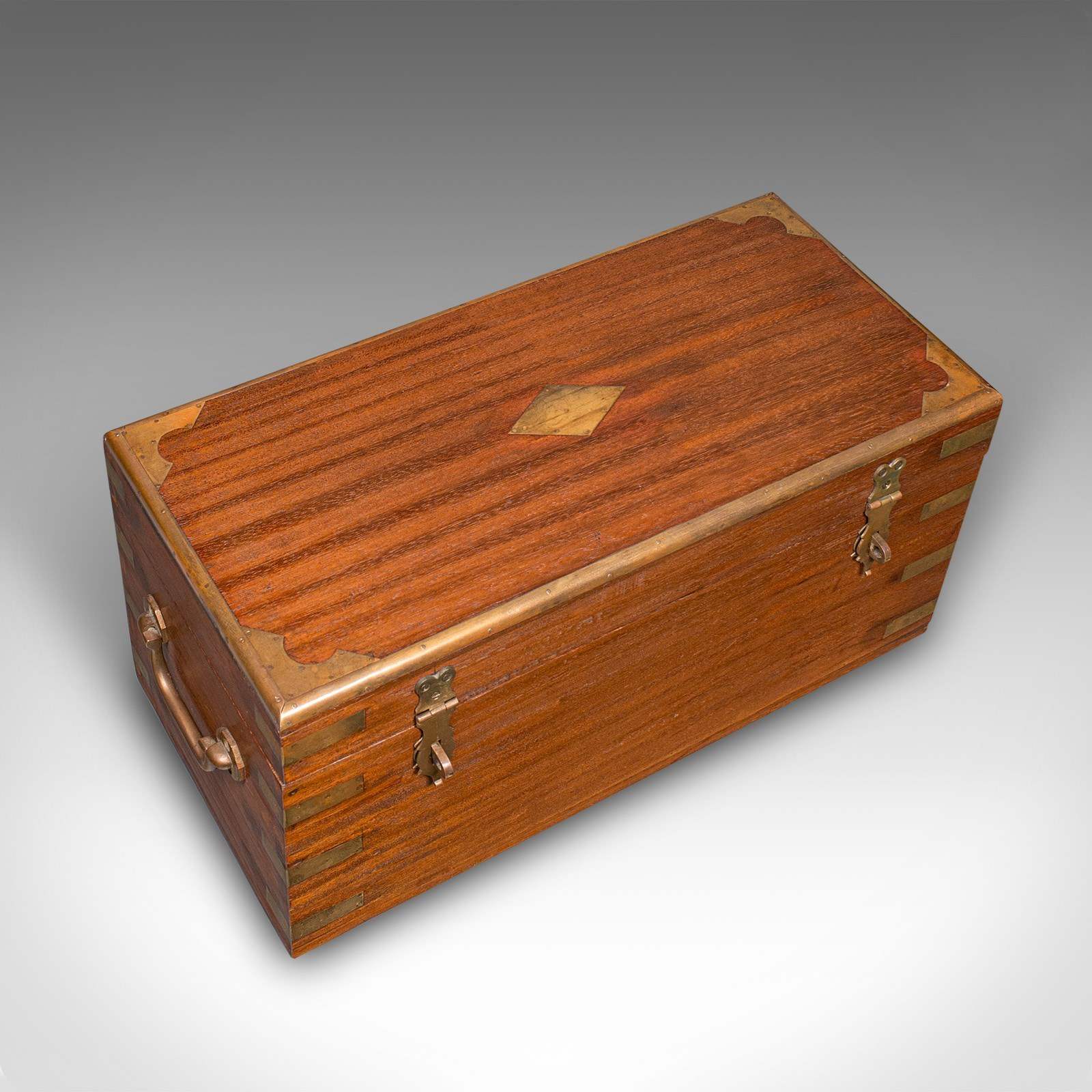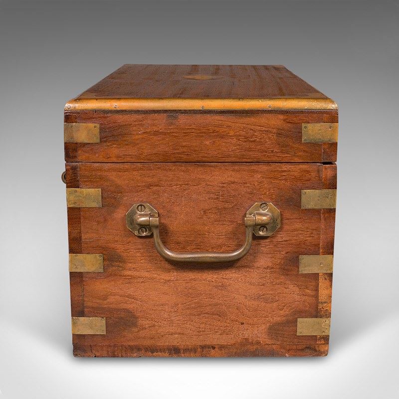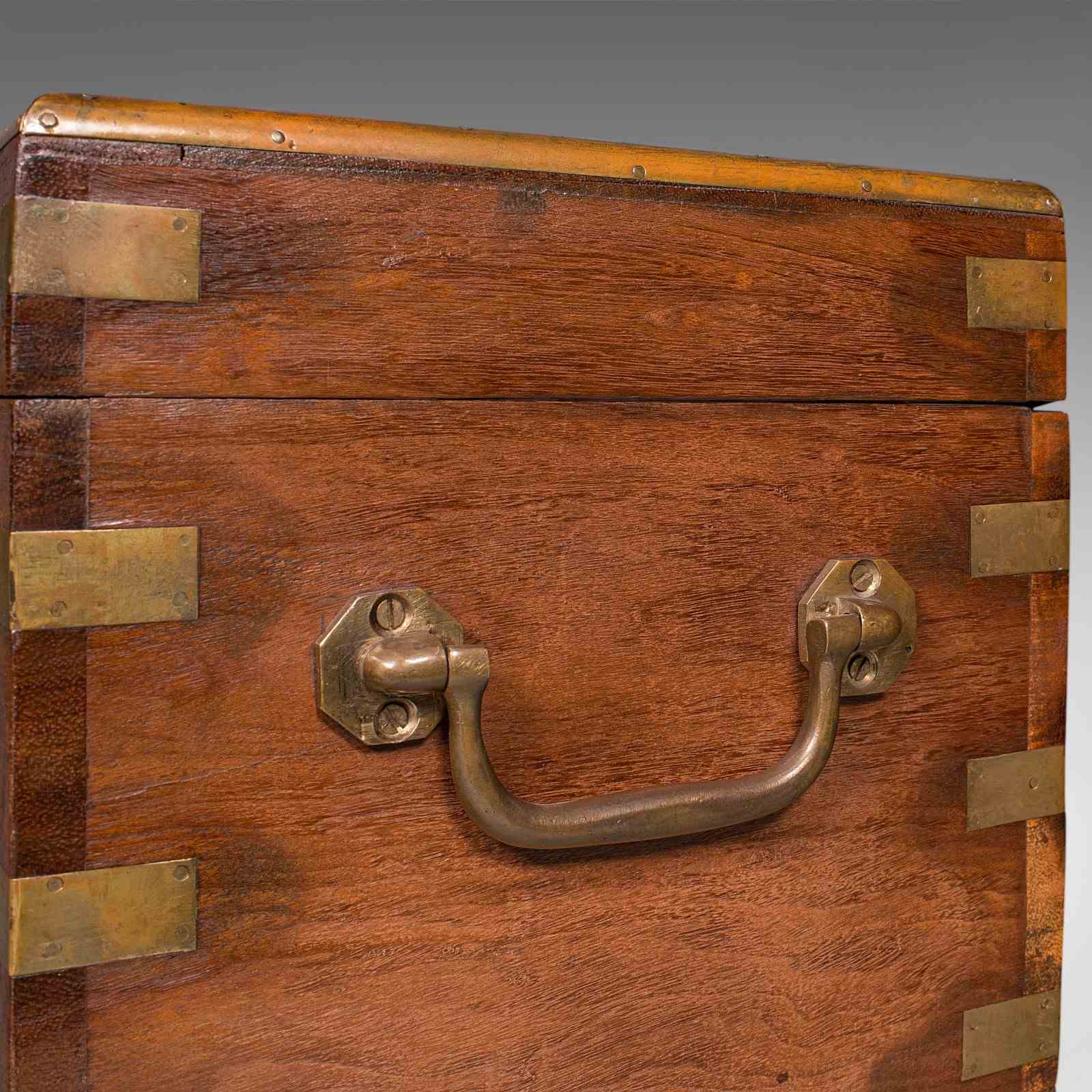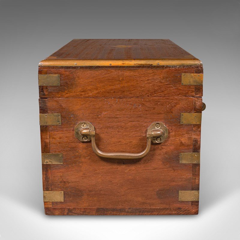 Small Antique Display Chest, Indian, Teak, Miniature Campaign Trunk, Victorian