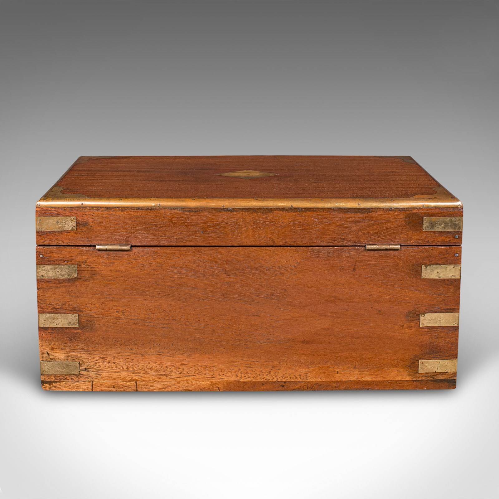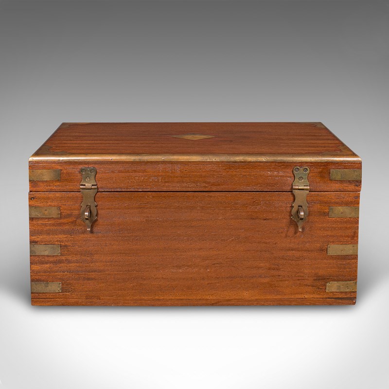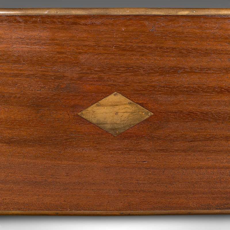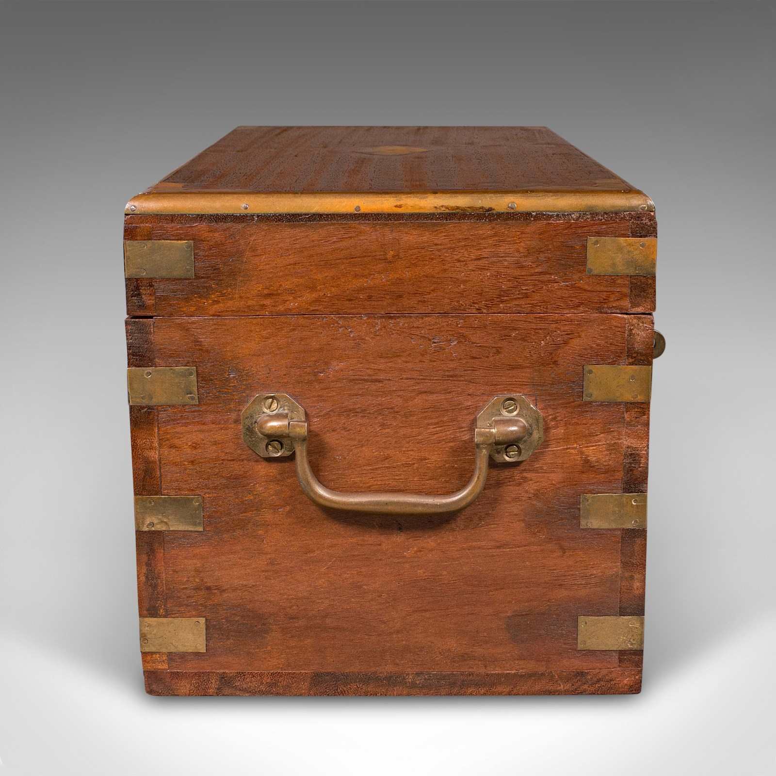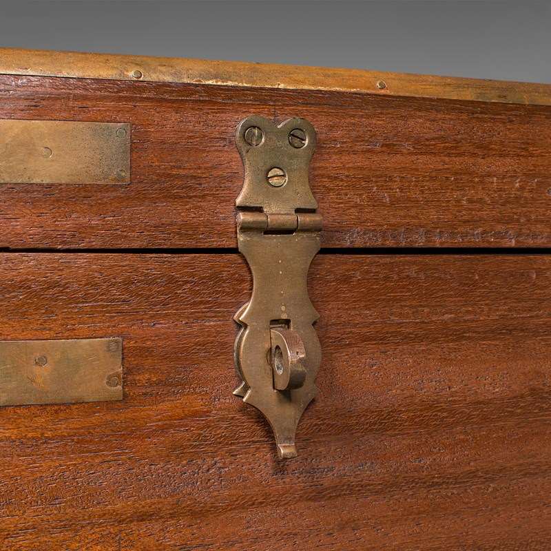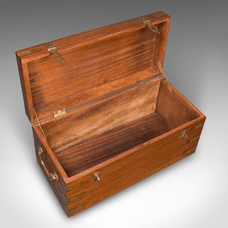 Small Antique Display Chest, Indian, Teak, Miniature Campaign Trunk, Victorian