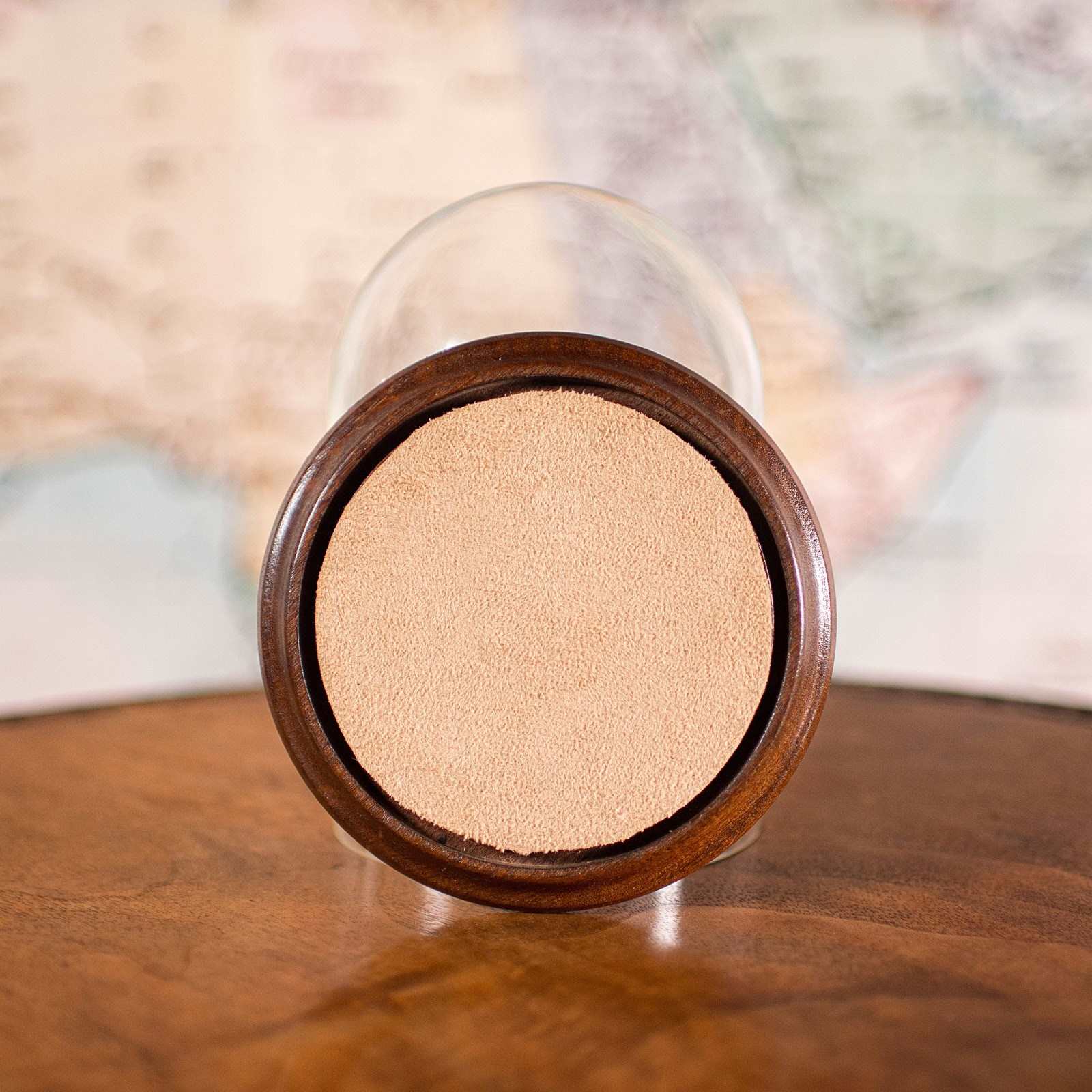 Turned beech base in warm caramel hues, offering tactile grain and gentle sheen