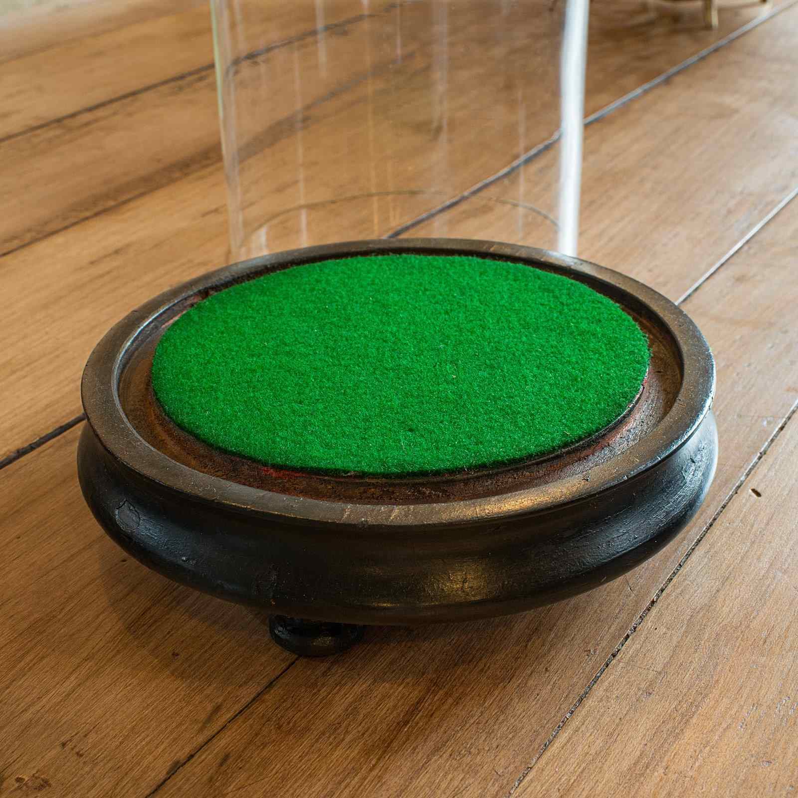 - Circular base dressed with a protective green baize
