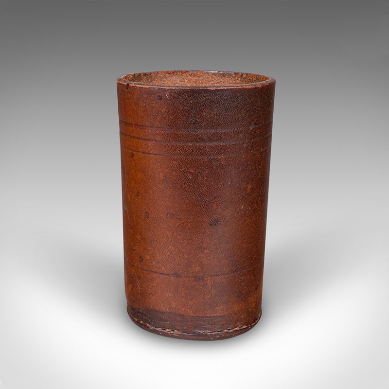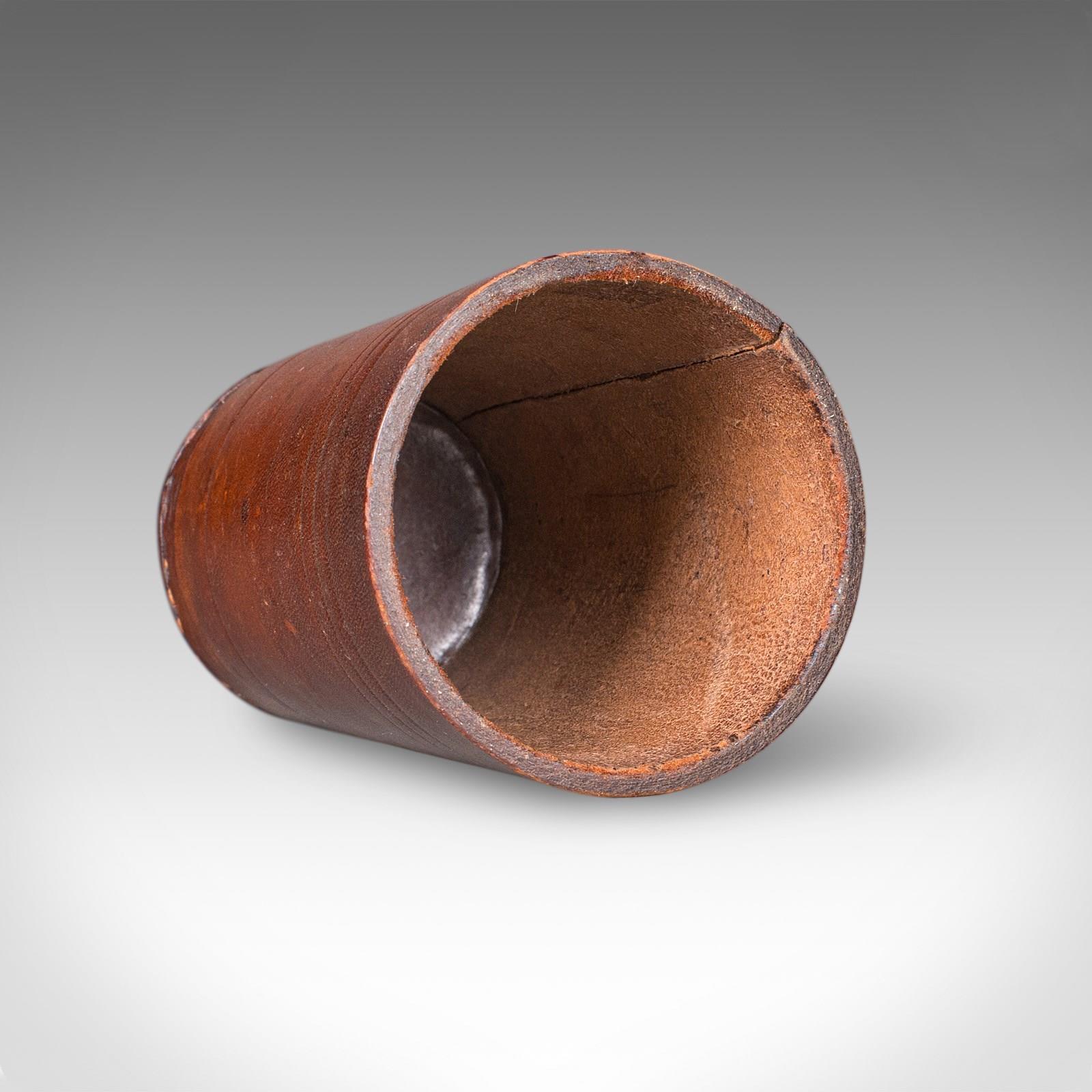 Small Antique Jacquet Dice Pot , French, Leather, Craps, Gaming Tumbler, C.1920