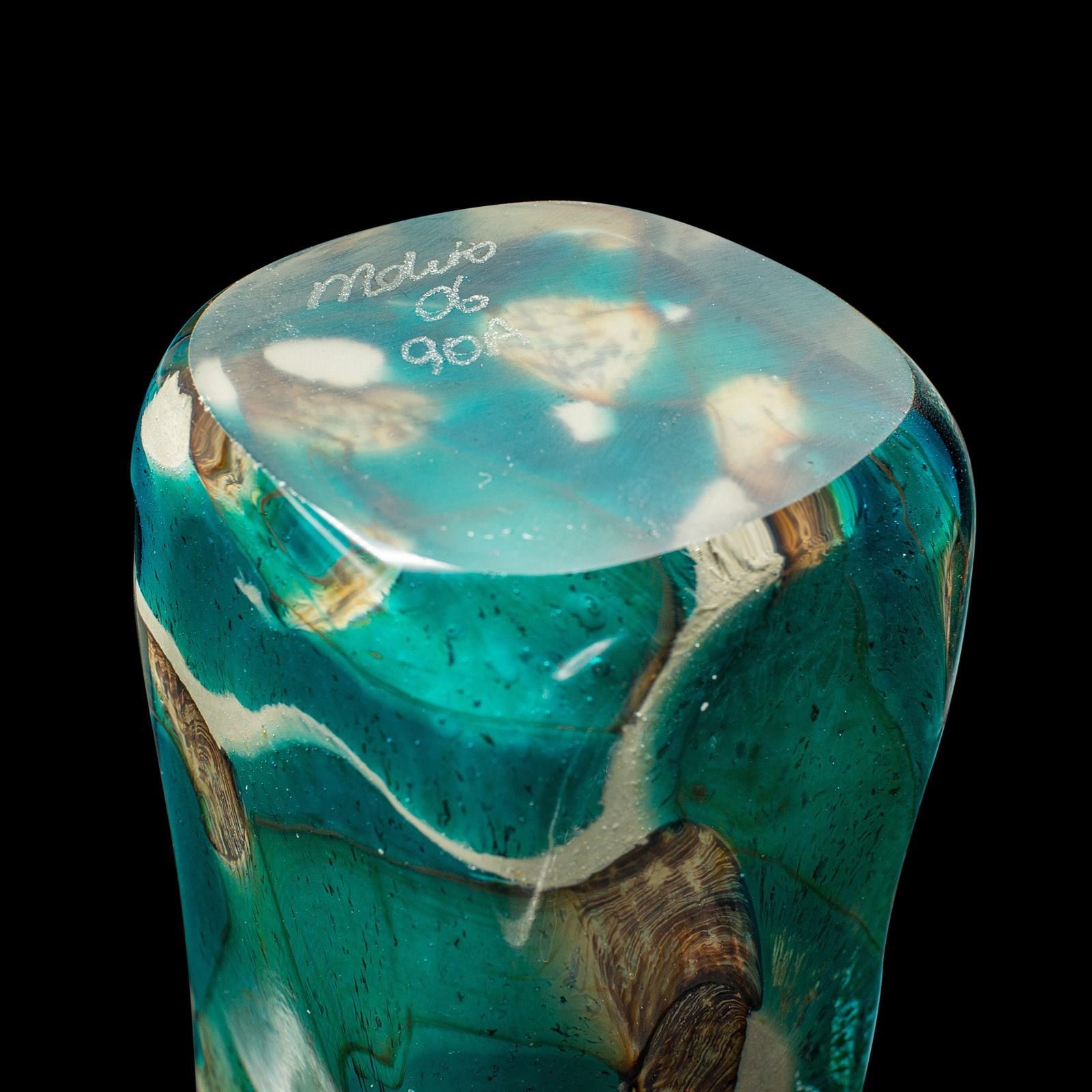 This is a small vintage flower vase. A Maltese, art glass flower sleeve or tea light holder, dating to the late 20th century, circa 1990.