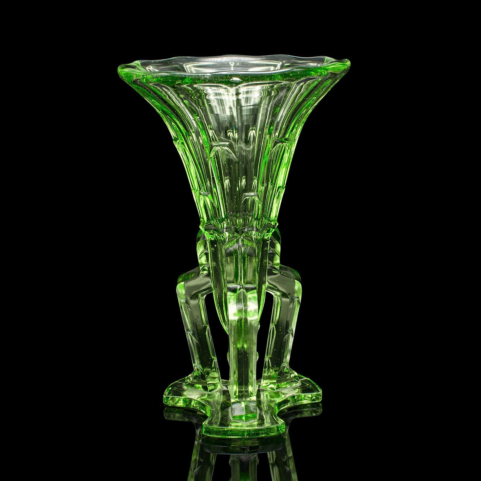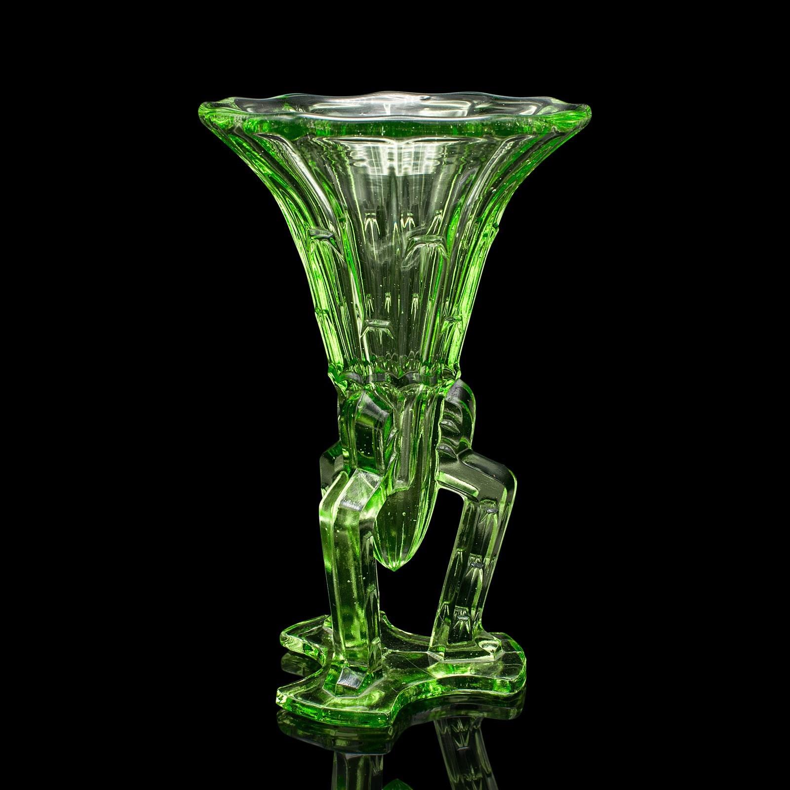 This is a vintage rocket vase. An English, art glass posy vase, dating to the Art Deco period, circa 1930.