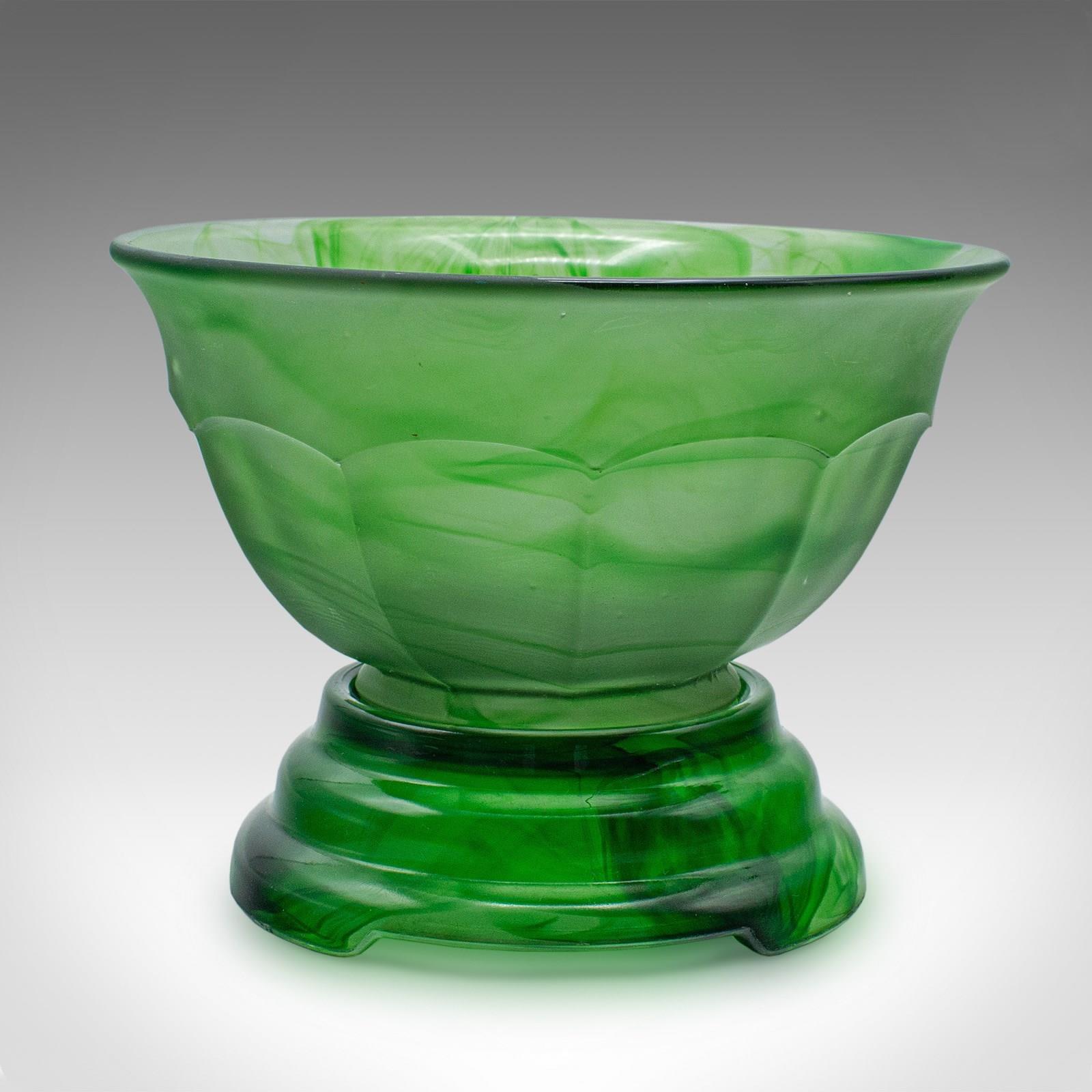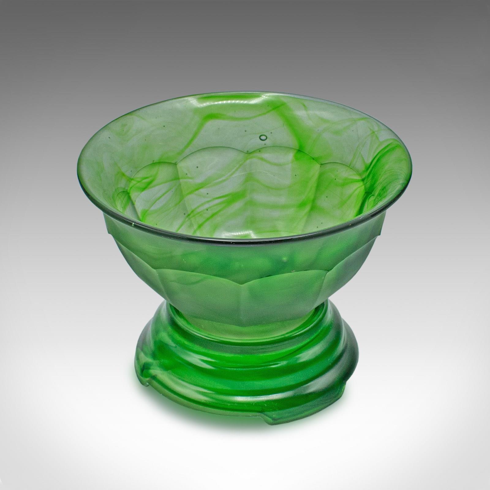 This is a small vintage sugar dish. An English, cloud glass decorative bowl on stand, dating to the early 20th century, circa 1930.
