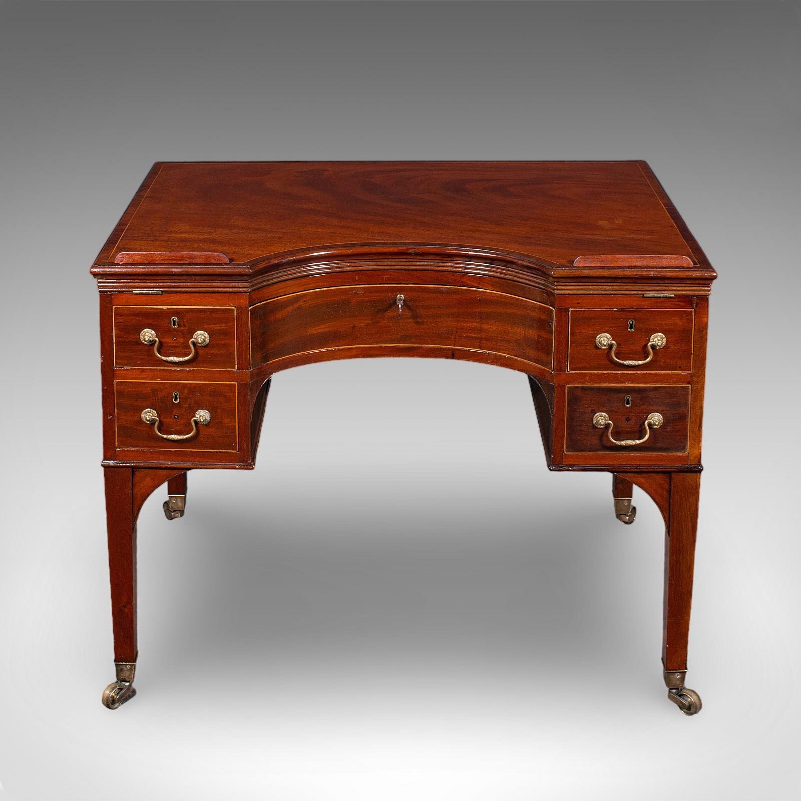 This is an antique lead architect's riser desk. An English, mahogany draughtsman or cartographer's table, dating to the Regency period, circa 1820.