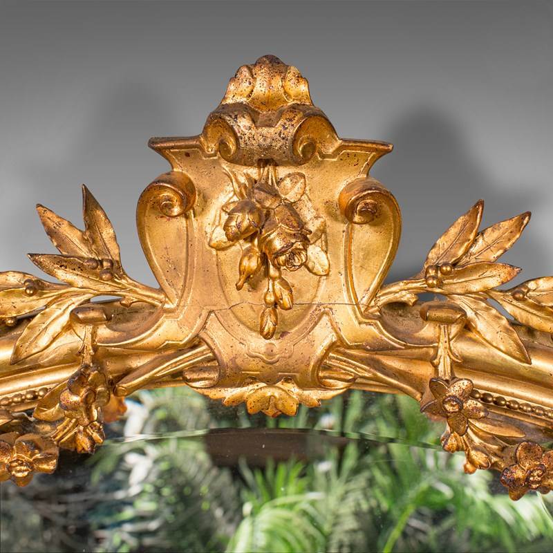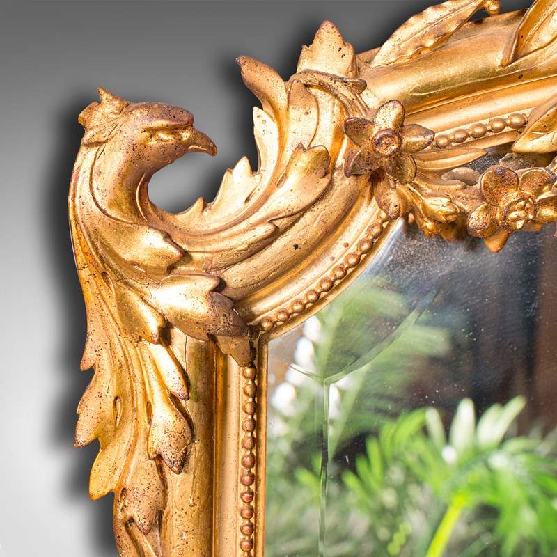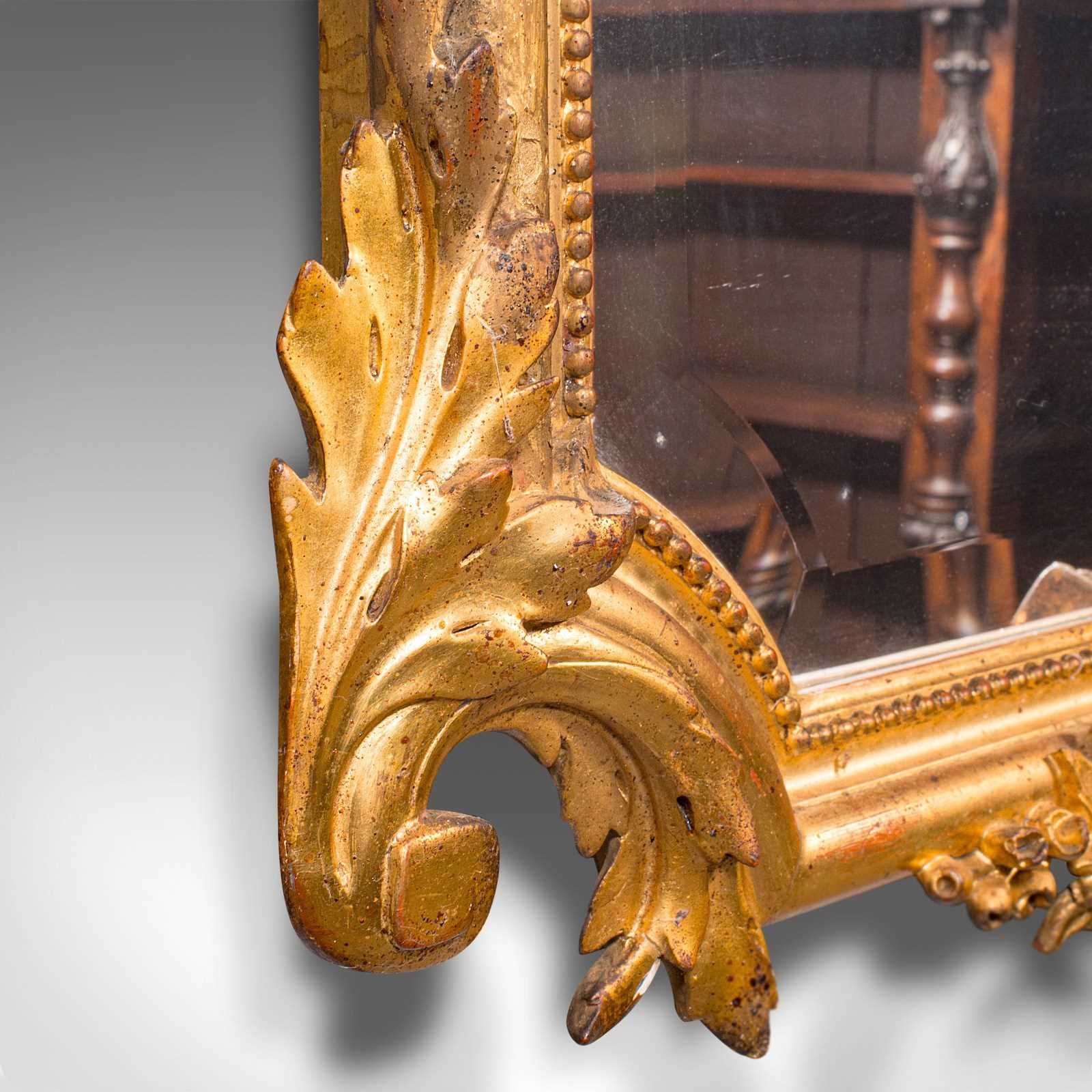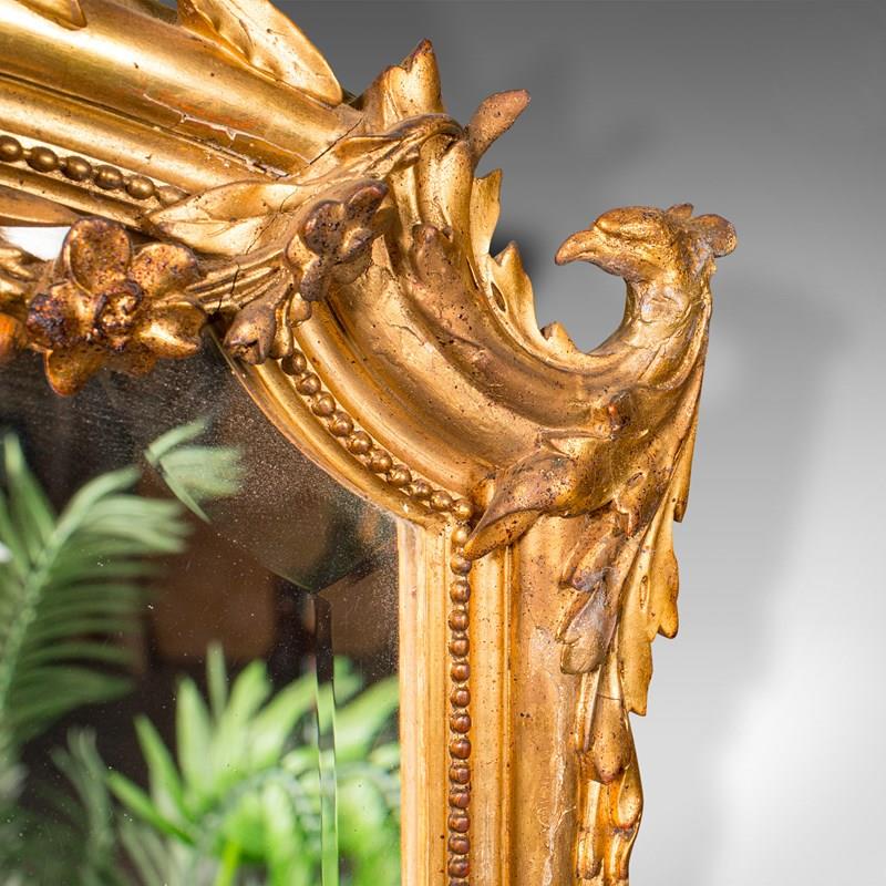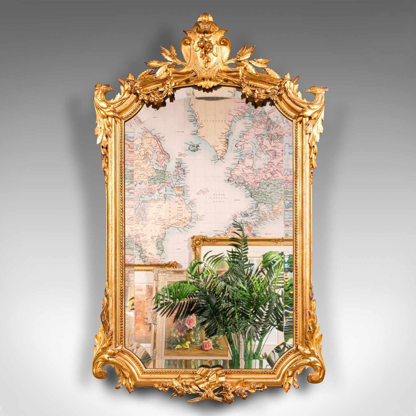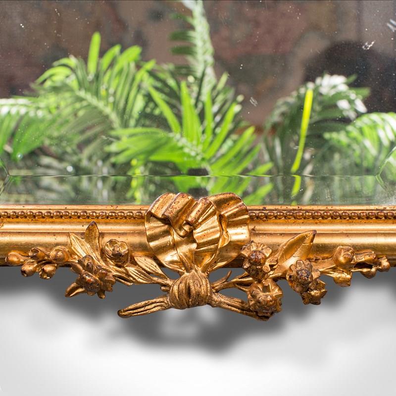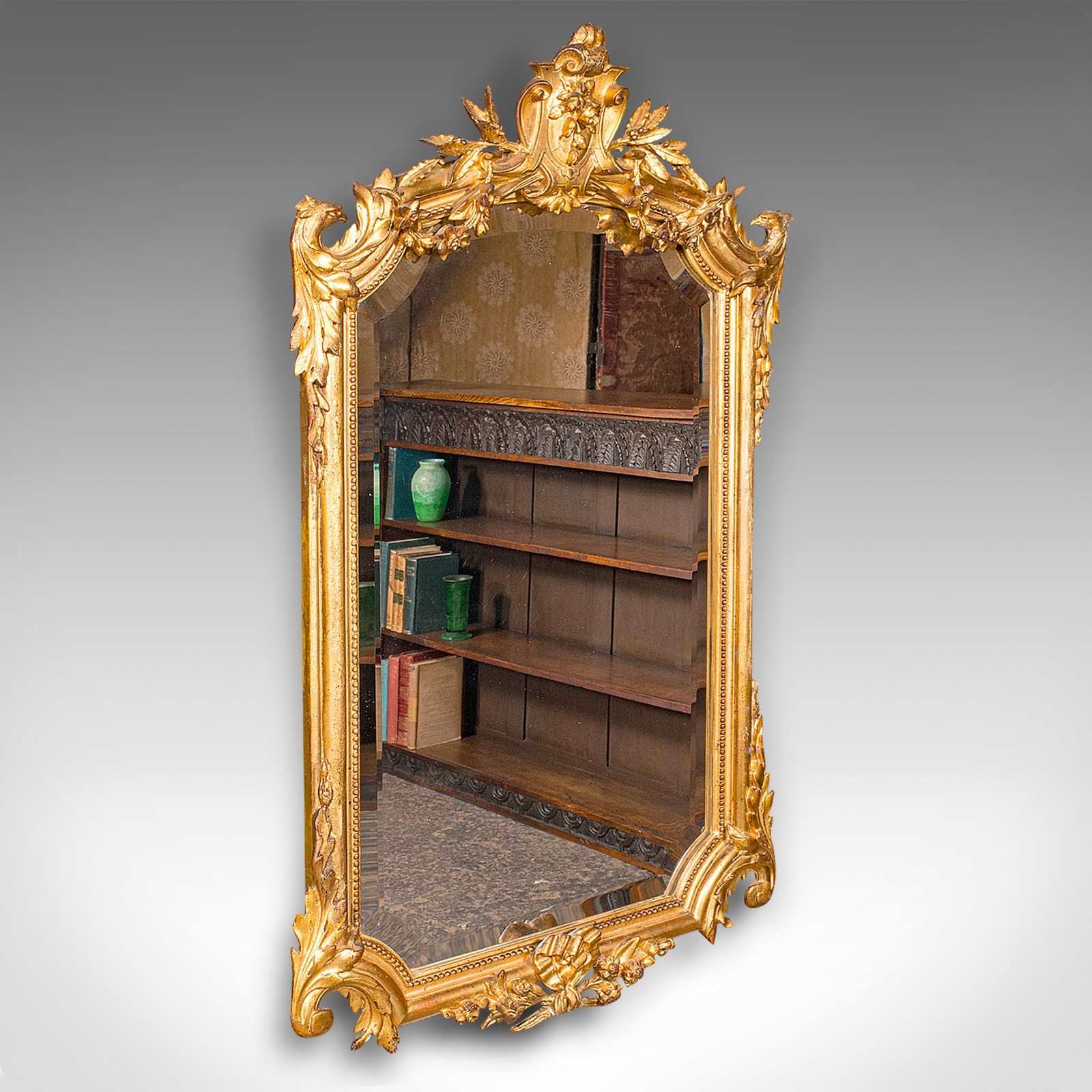 Tall Antique Overmantle Mirror, German Giltwood, Bevelled Plate, Wall, Victorian