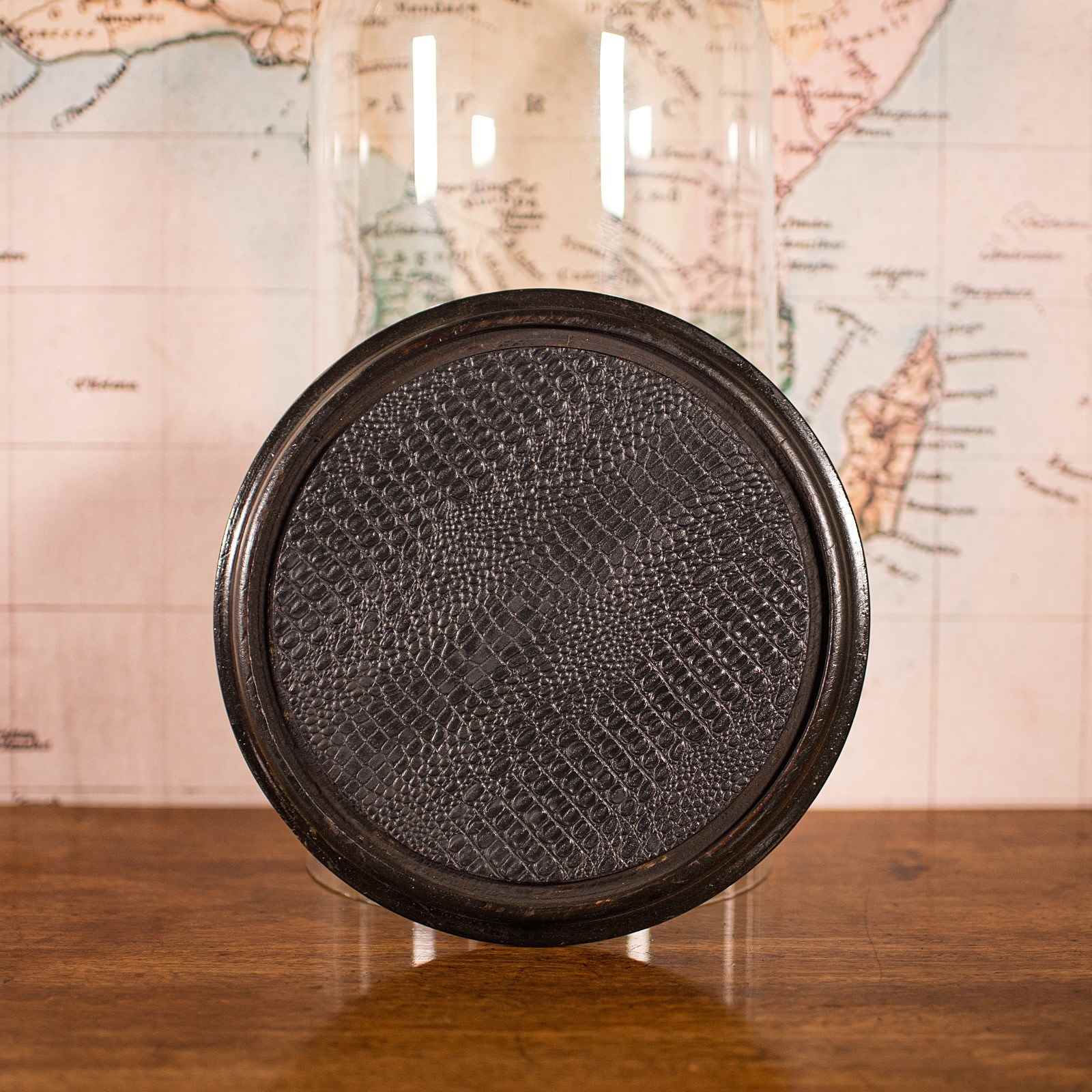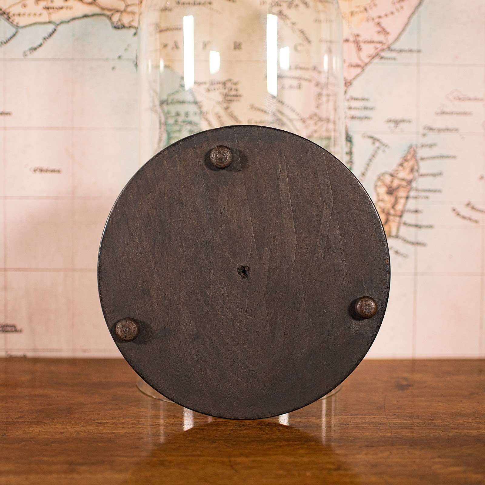 - Raised upon an ebonised base with small bun feet
