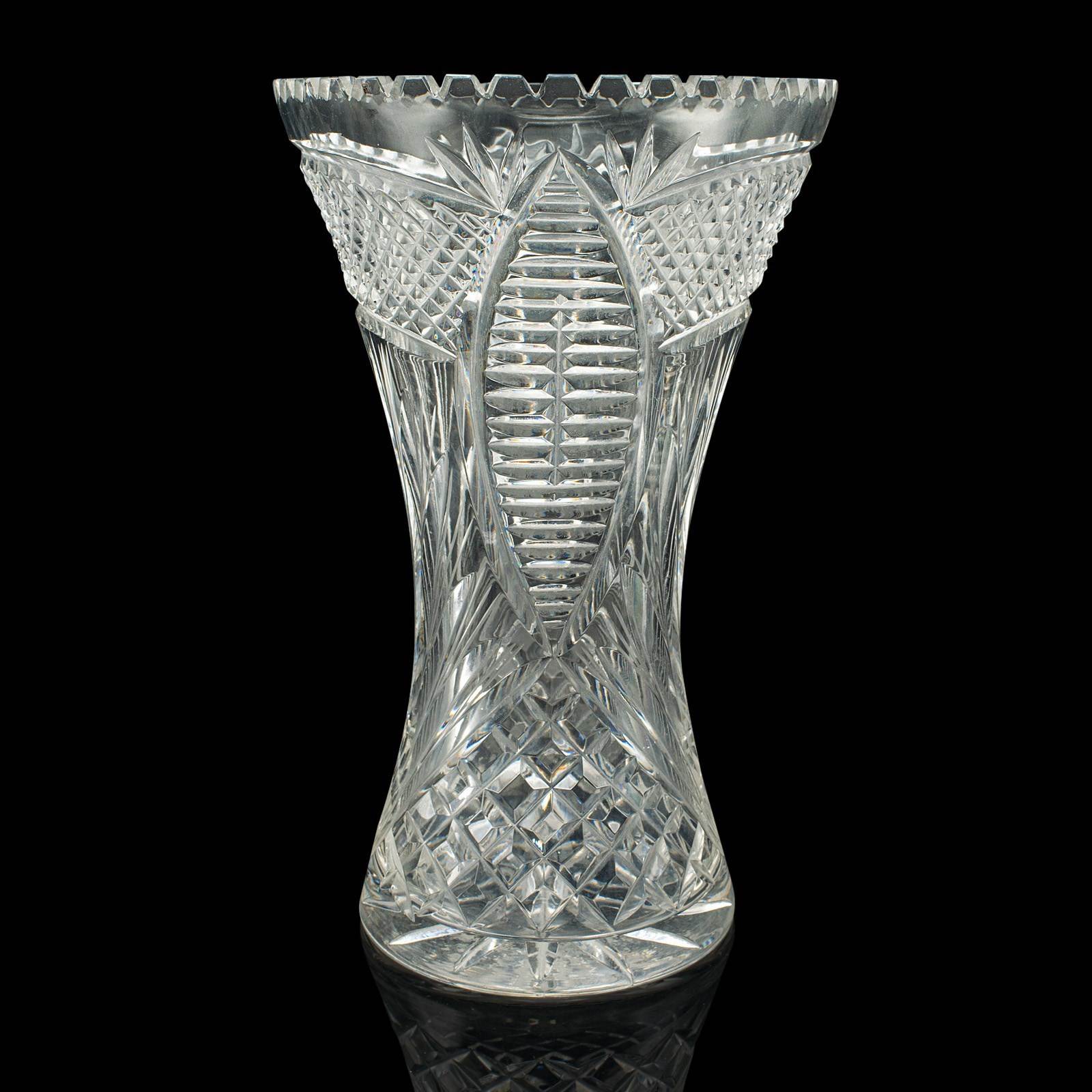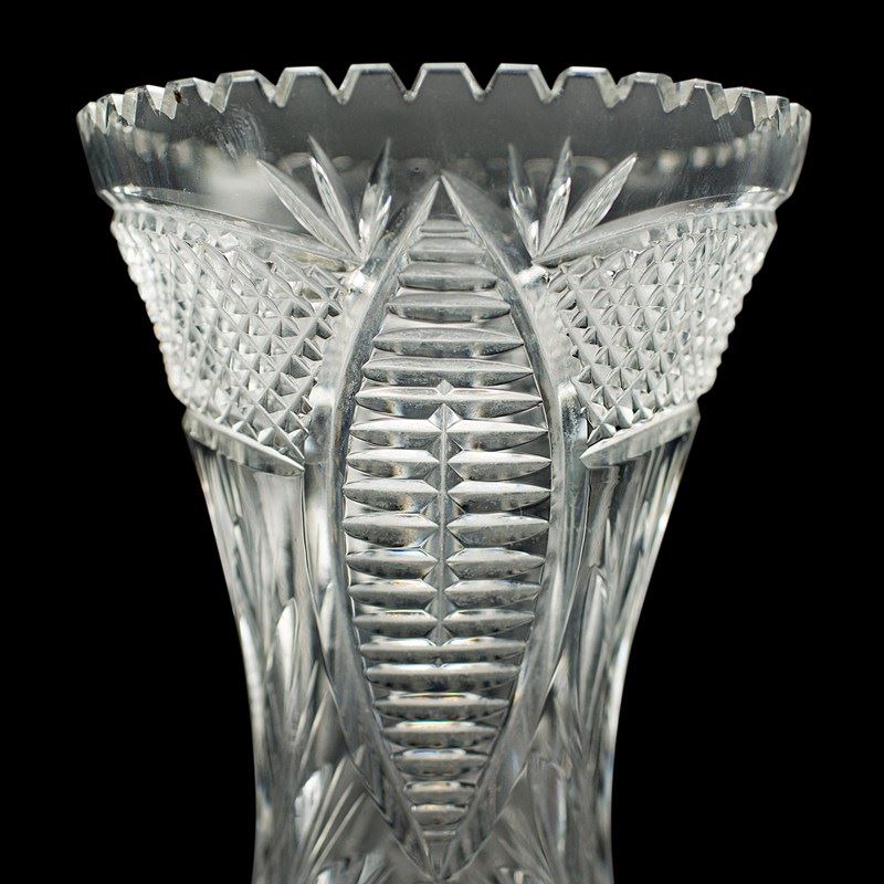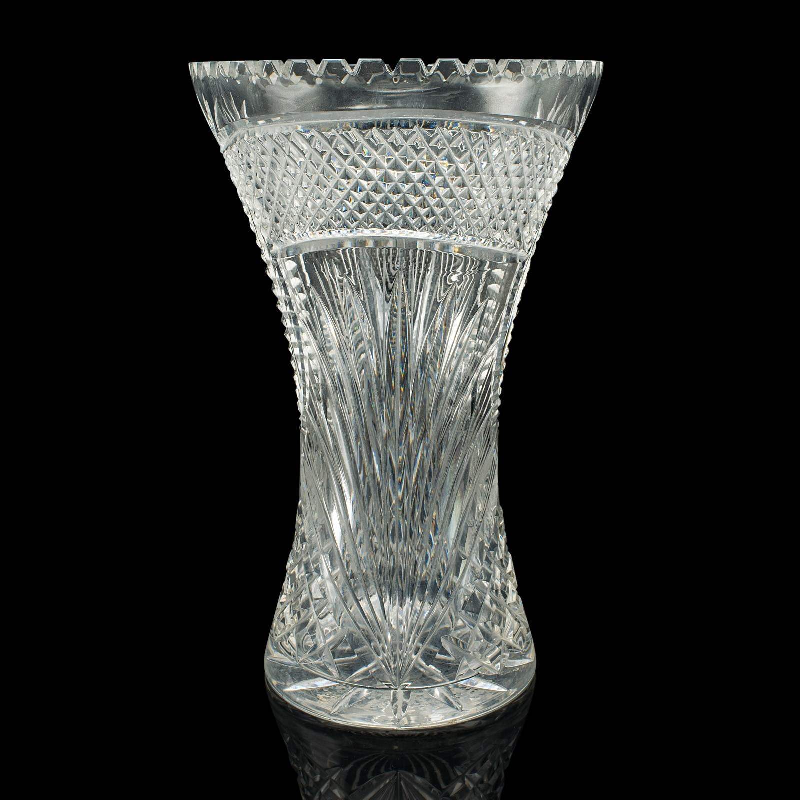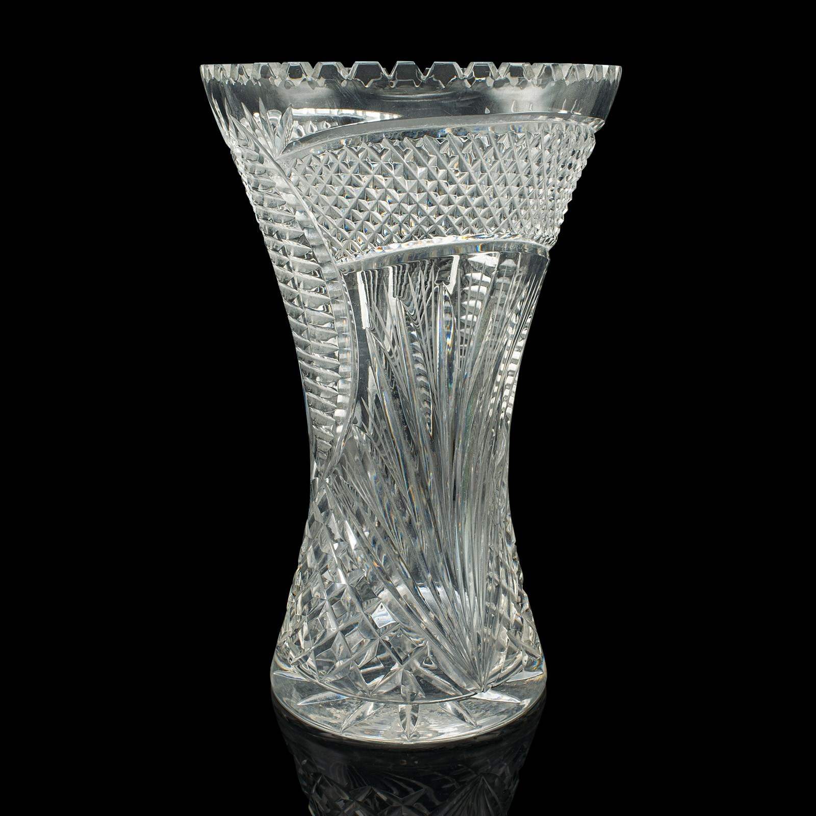 Tall Vintage Crystal Flower Vase, English, Cut Glass, Decorative, Mid Century