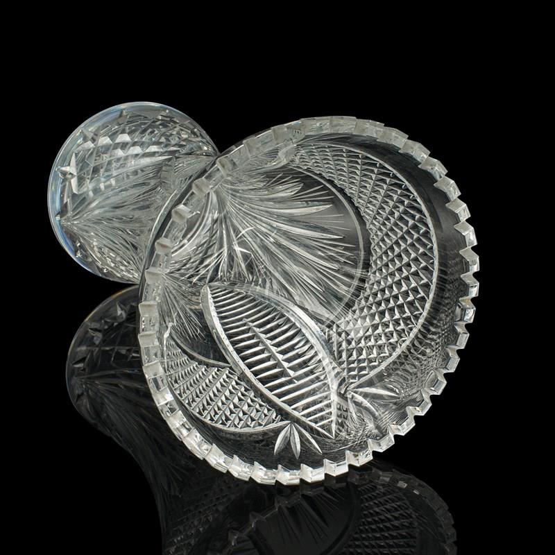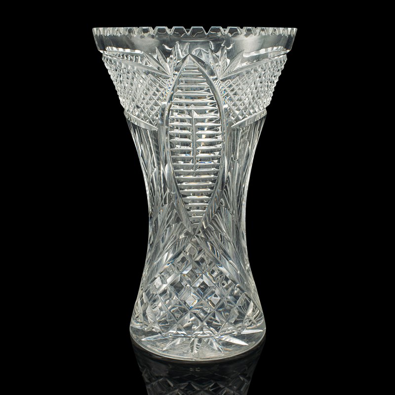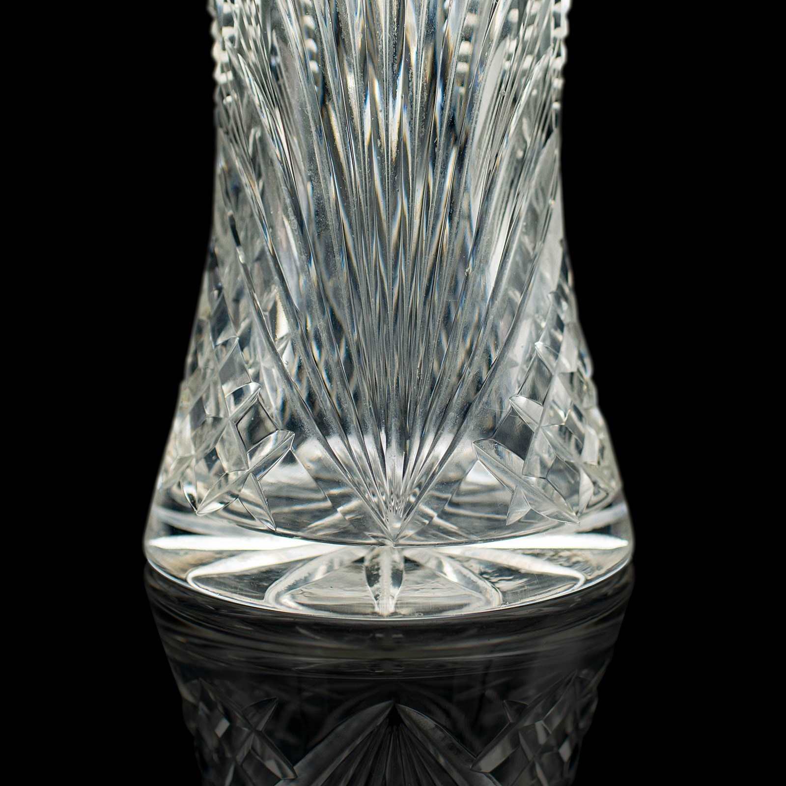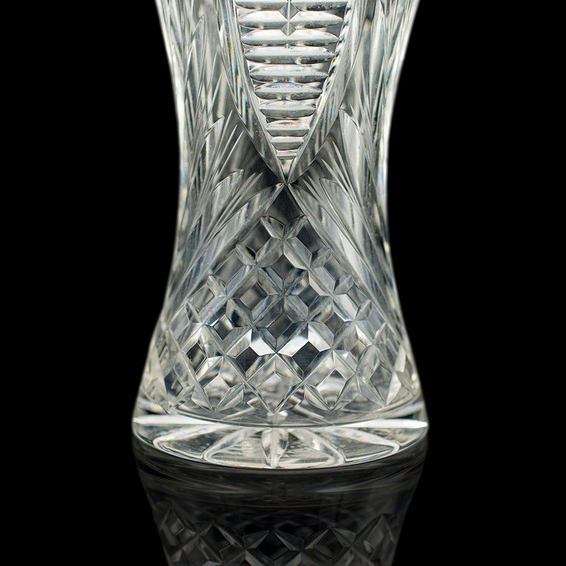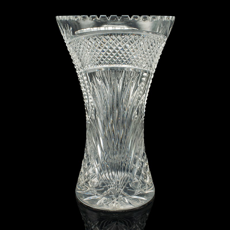 Tall Vintage Crystal Flower Vase, English, Cut Glass, Decorative, Mid Century