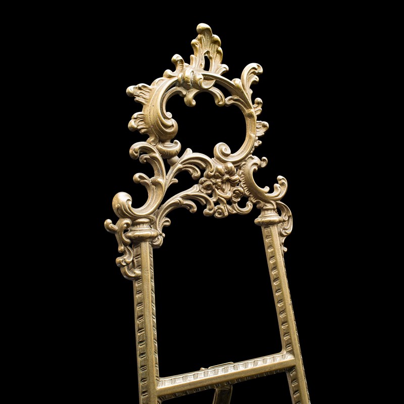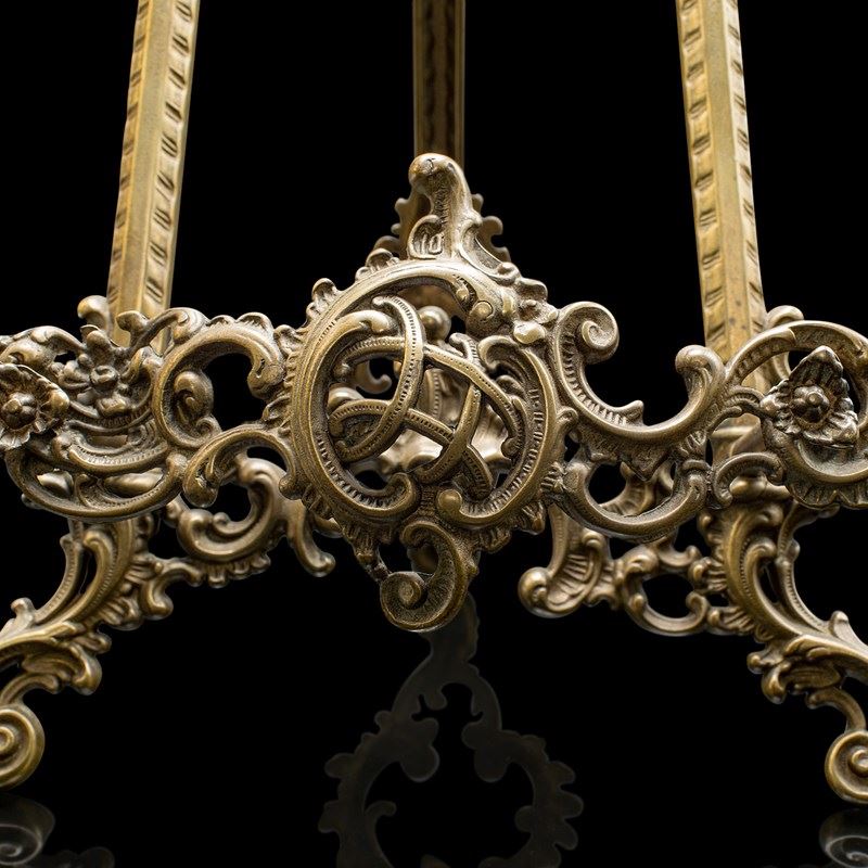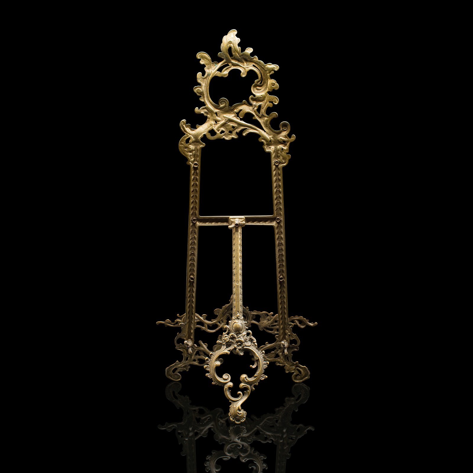Tall Vintage Picture Easel, English, Gilt Metal, Rococo Revival, Artwork Stand