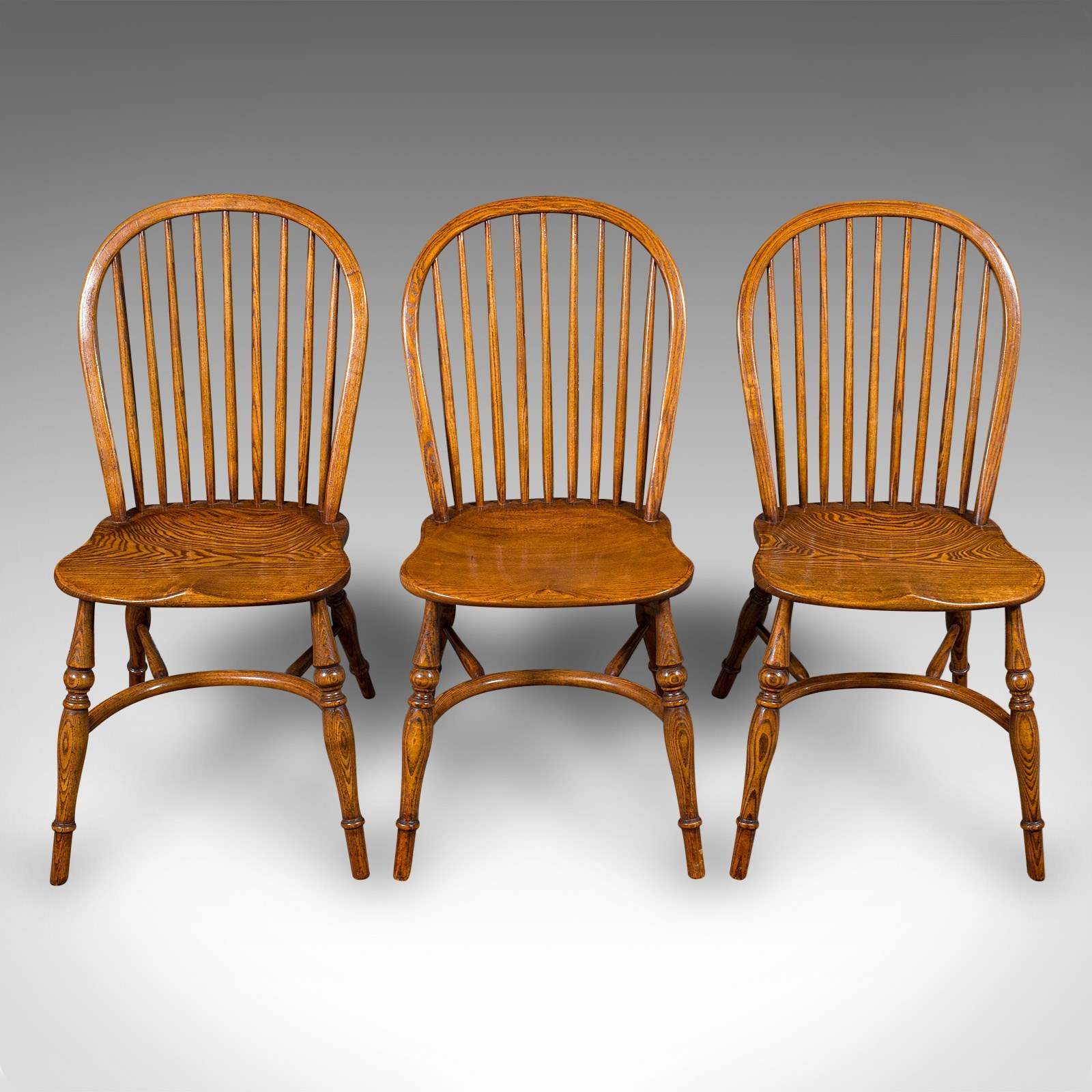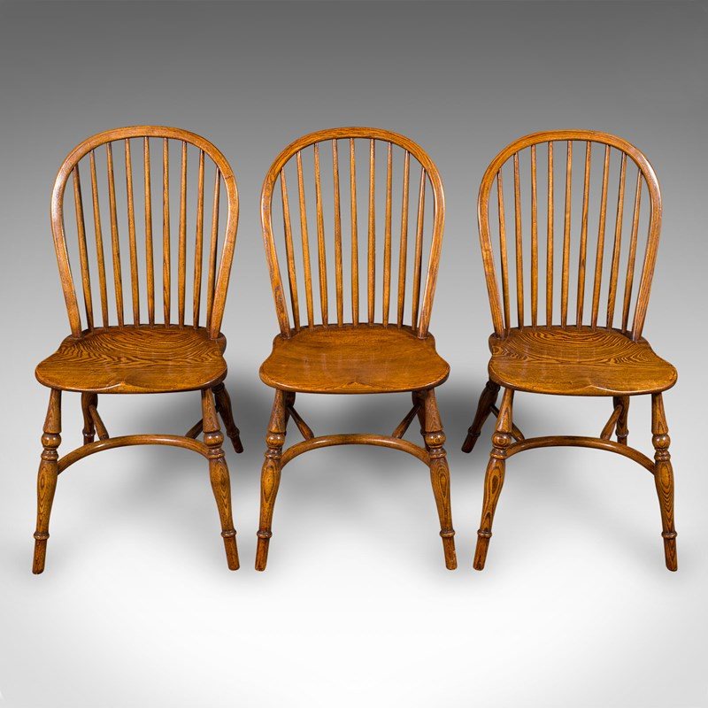Trio Of Vintage Country Kitchen Chairs, English Ash, Elm, Victorian Revival Seat
