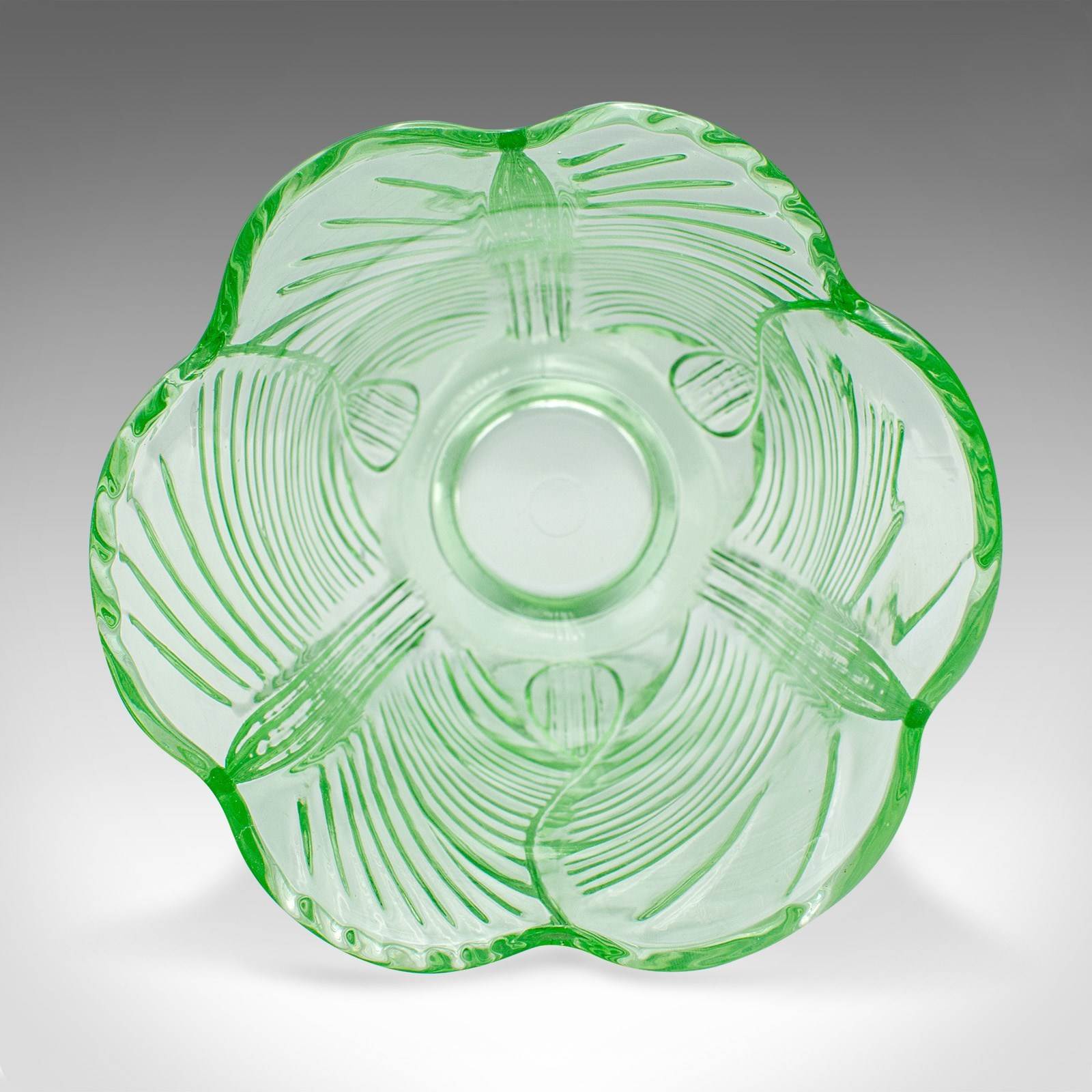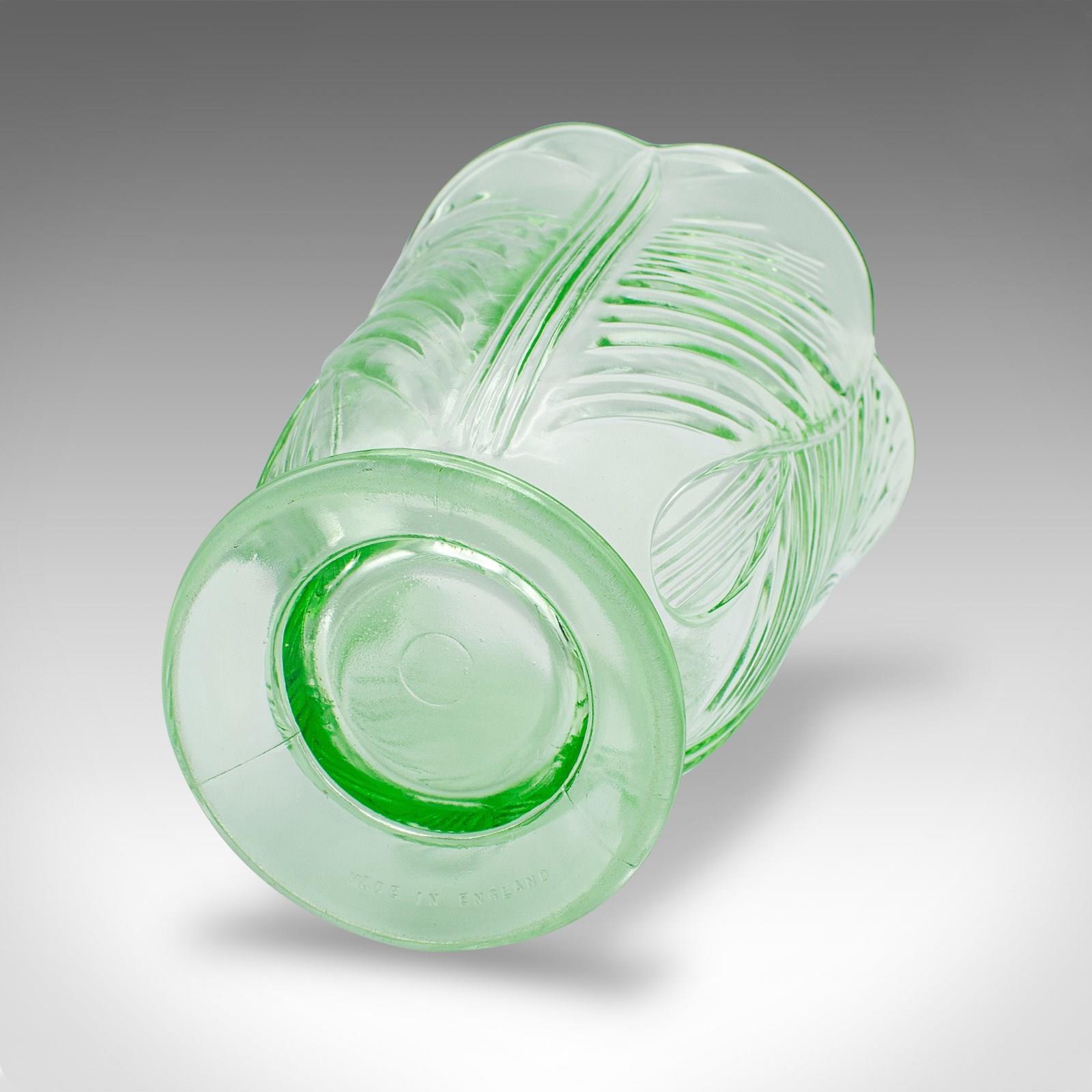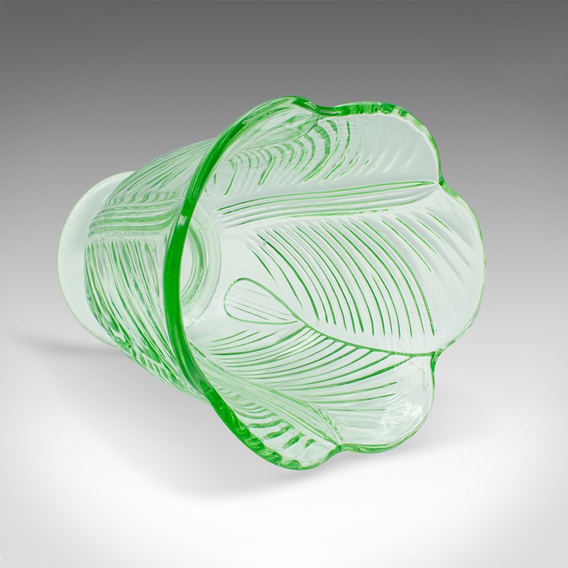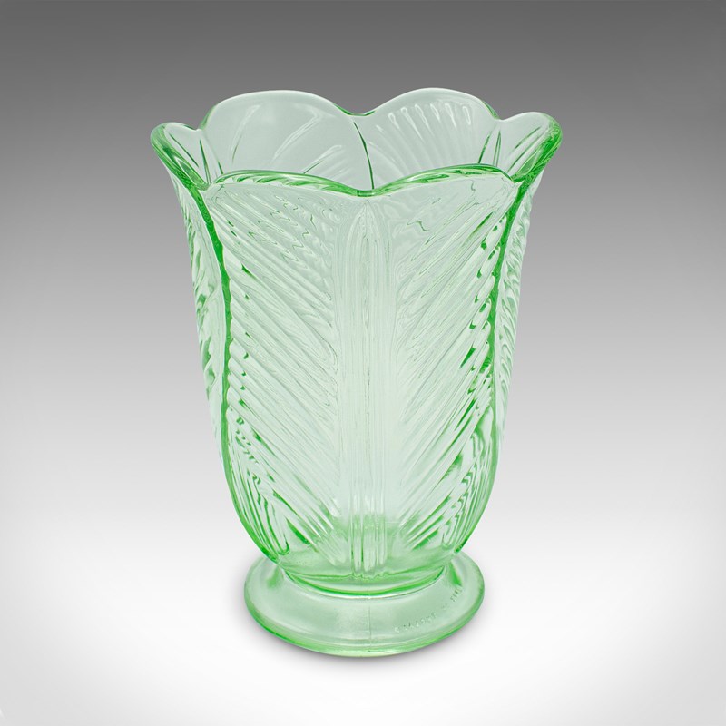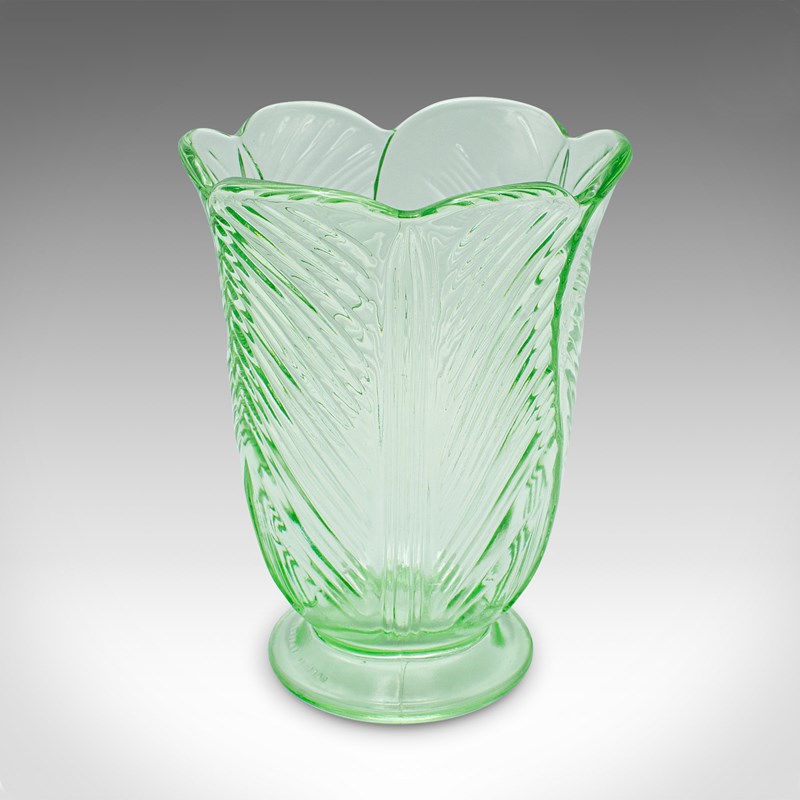 This is a vintage Art Deco vase. An English, tulip motif glass flower pot, dating to the early 20th century, circa 1930.