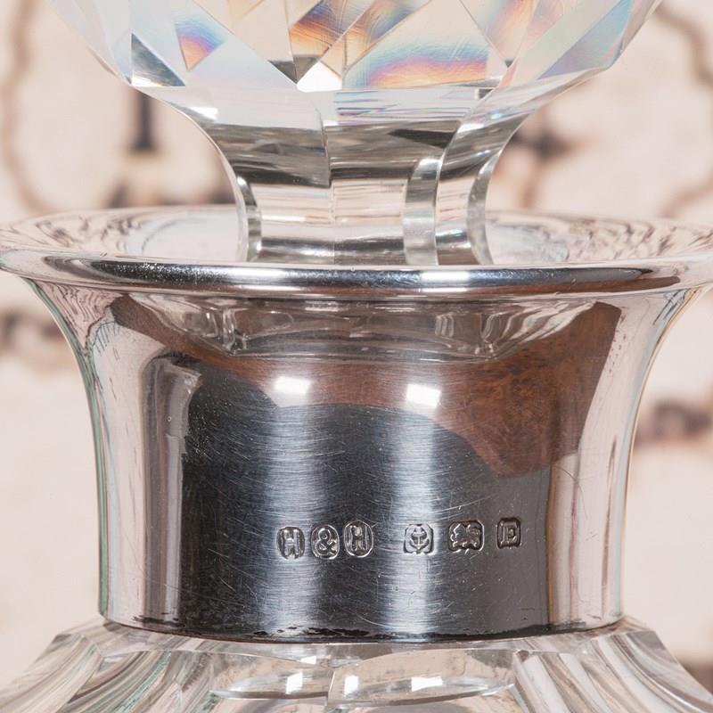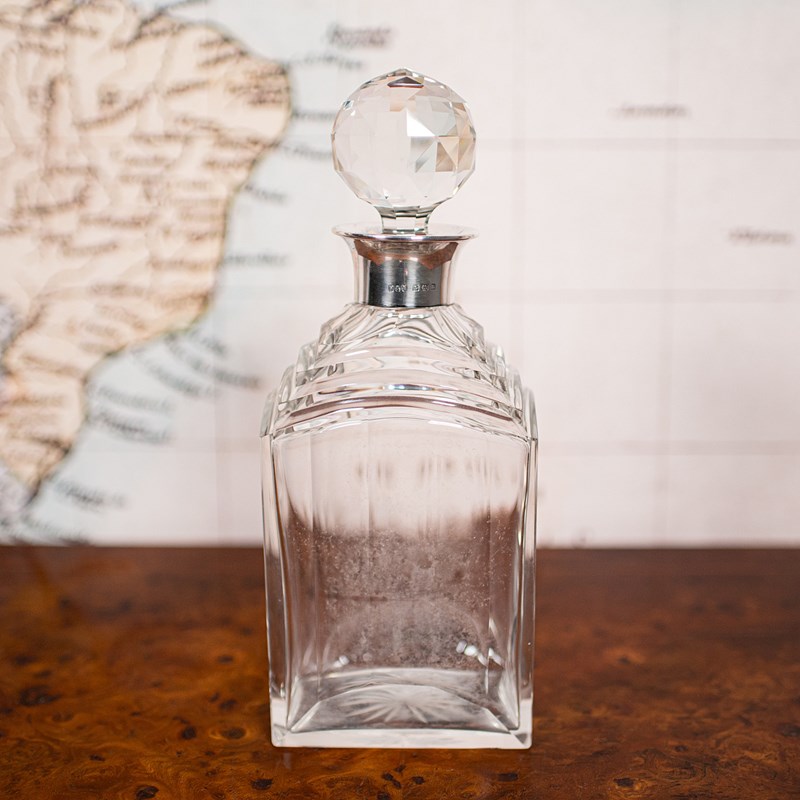Vintage Art Deco Whiskey Decanter, English, Glass, Silver, Hallmarked, C.1930
