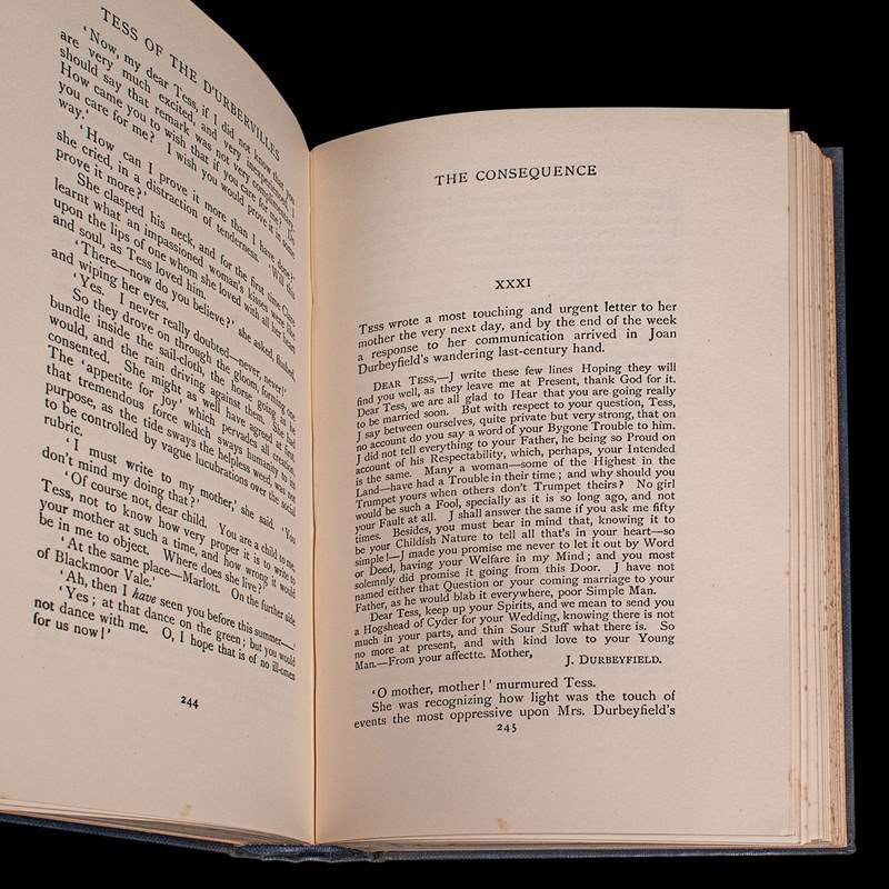 This is a vintage copy of Tess of the D'Urbervilles by Thomas Hardy. An English, cloth bound limited edition novel, dating to the early 20th century, published 1926.