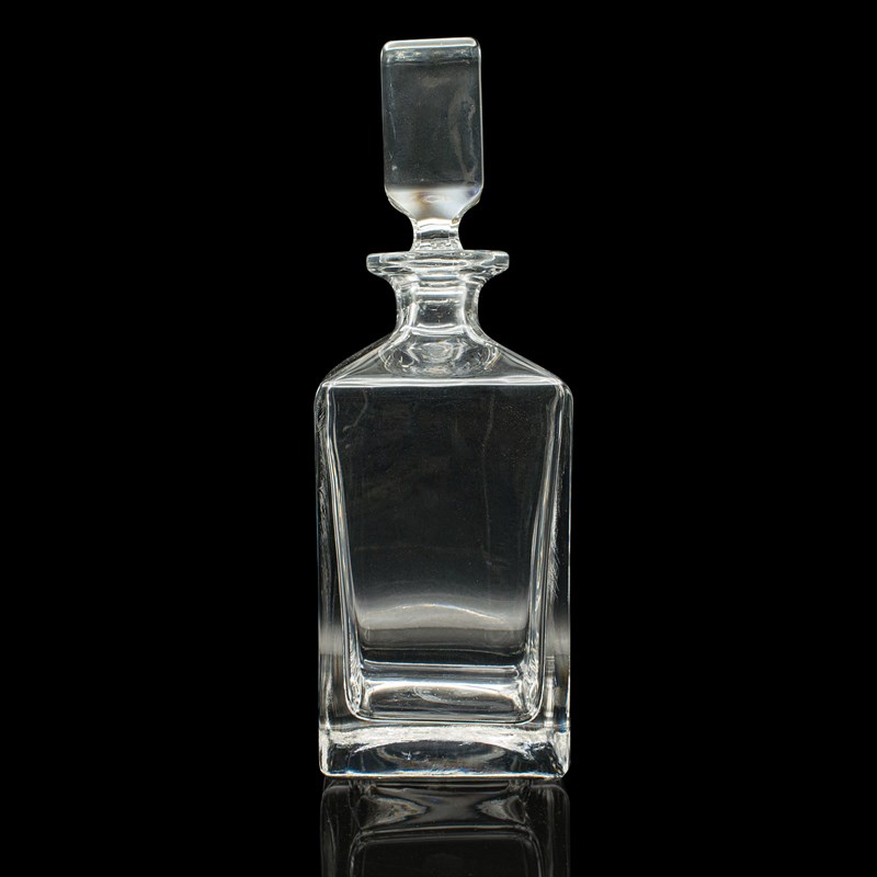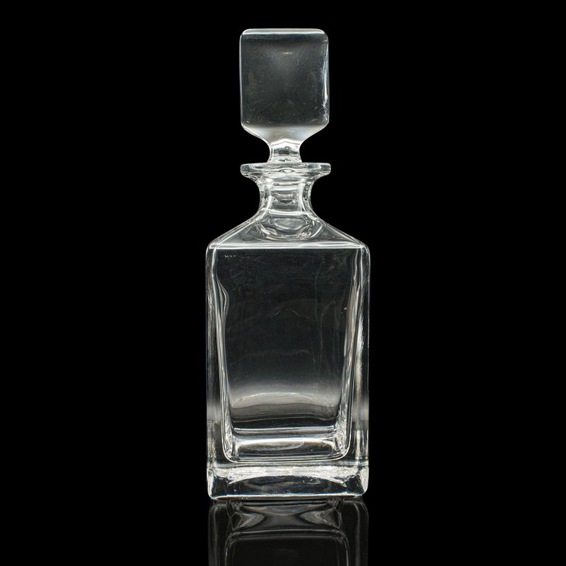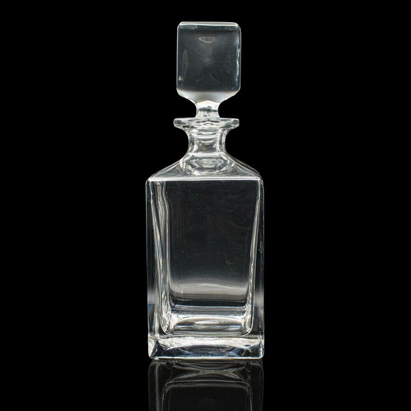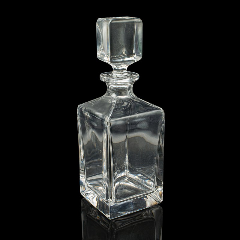 This is a vintage whiskey decanter. An English, glass spirit vessel, dating to the mid 20th century, circa 1950.