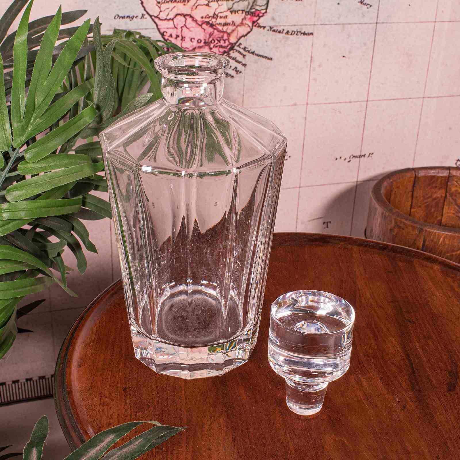 A delightful example of late Art Deco glassware, this English glass decanter embodies the elegance and precision of mid century design — a striking statement piece for the discerning collector or home entertainer. Delivered ready for the home.