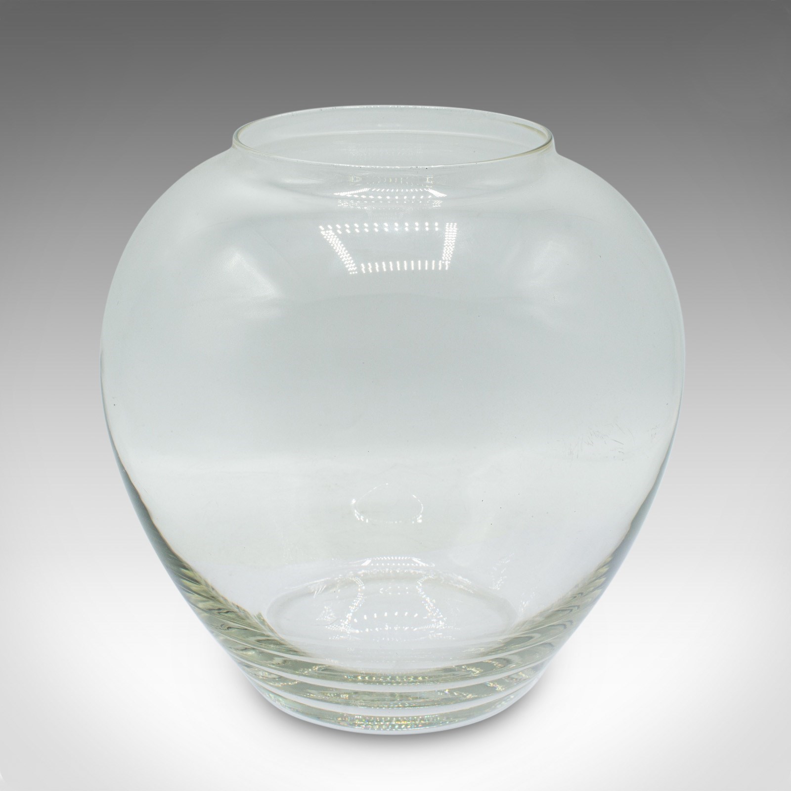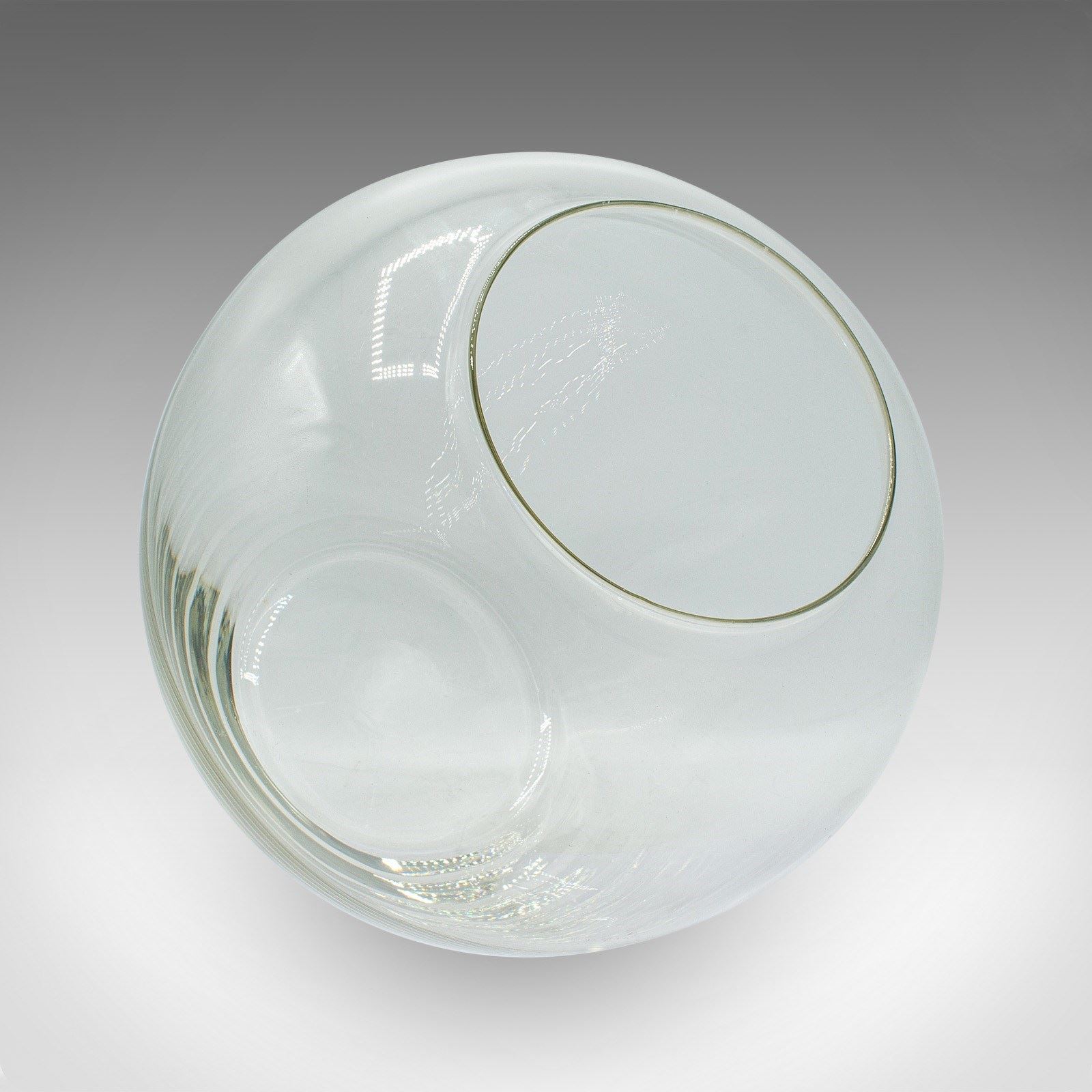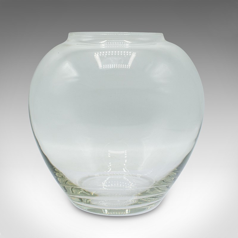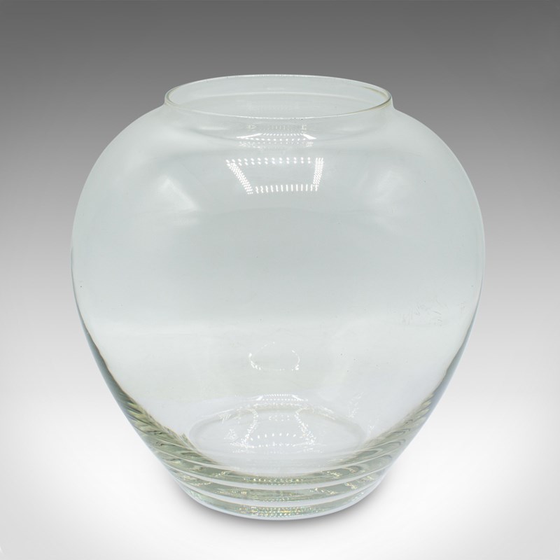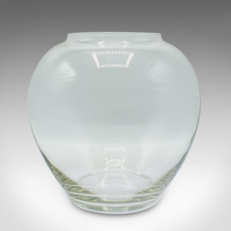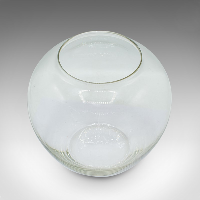 This is a vintage bubble form serving bowl. An English, glass fishbowl or decorative planter, dating to the mid 20th century, circa 1950.