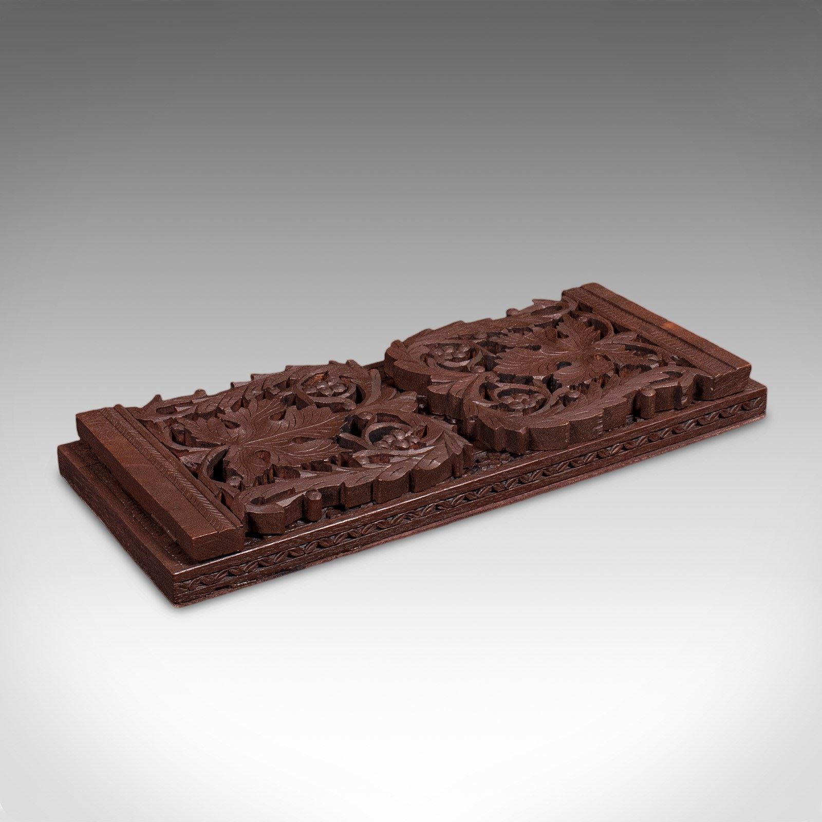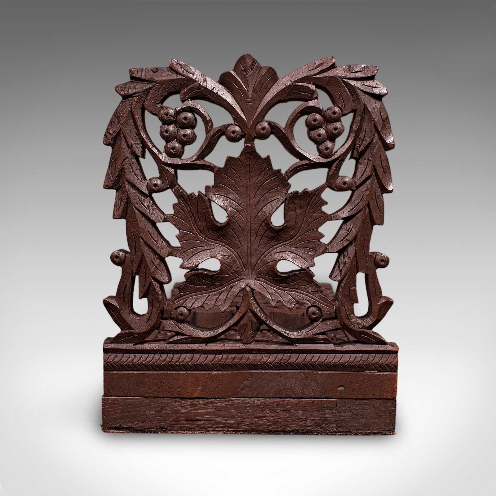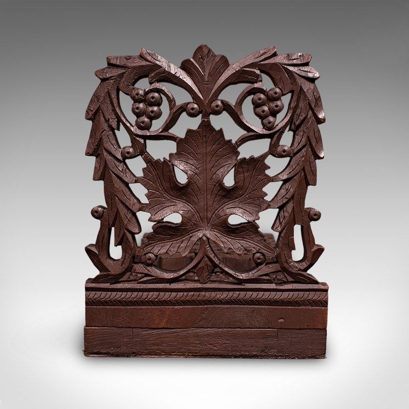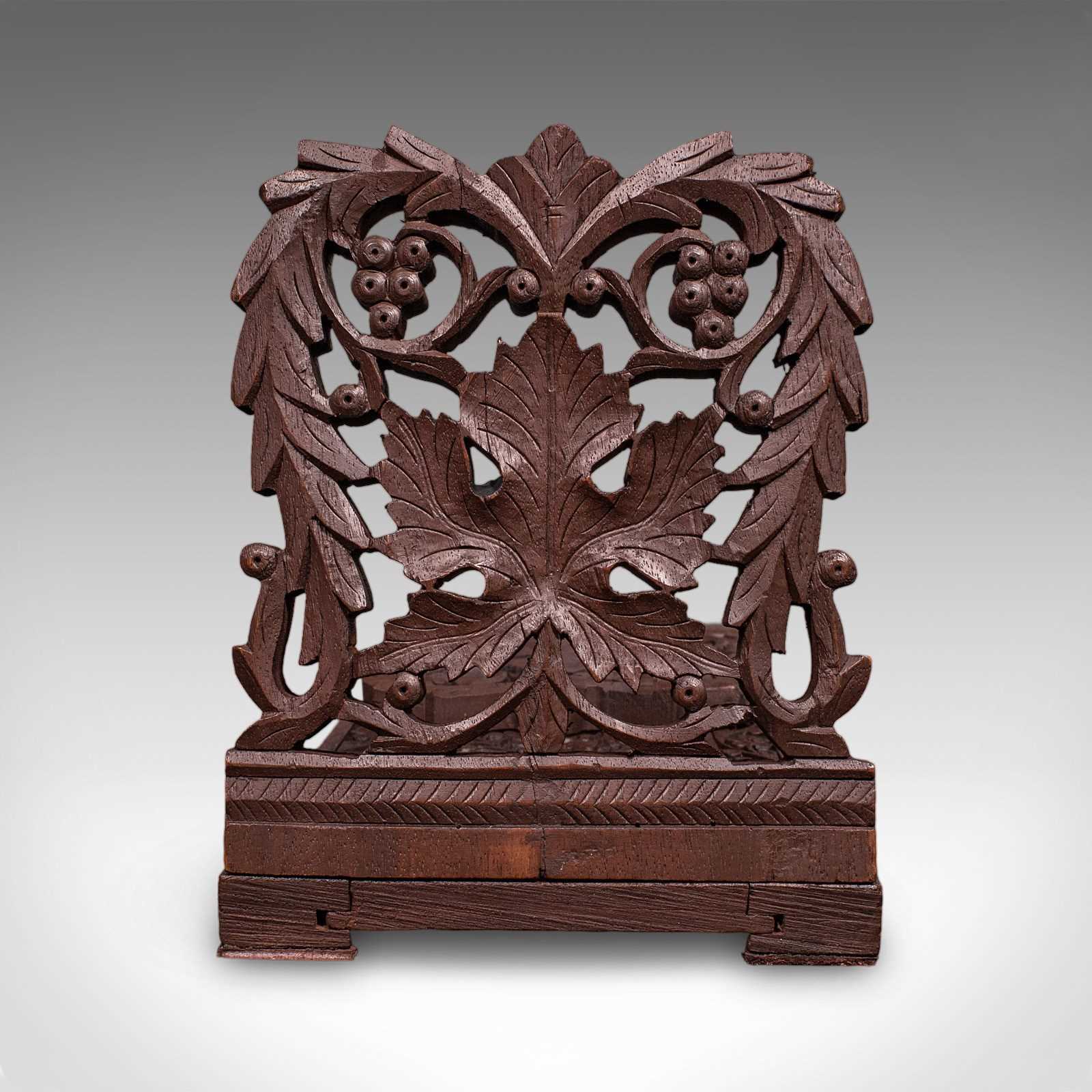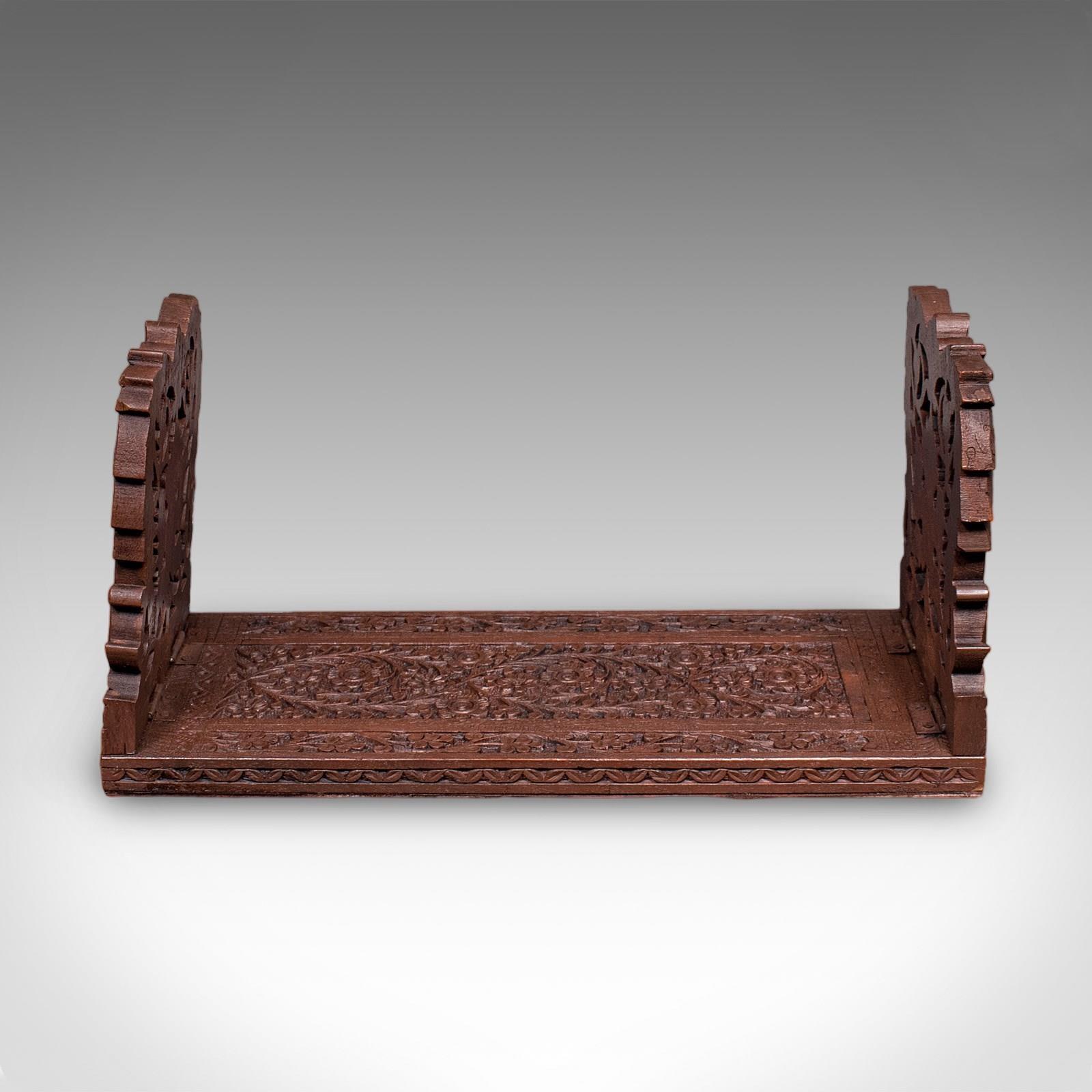 Vintage Carved Book Slide, Anglo Indian, Teak, Library Stand, Colonial, Art Deco