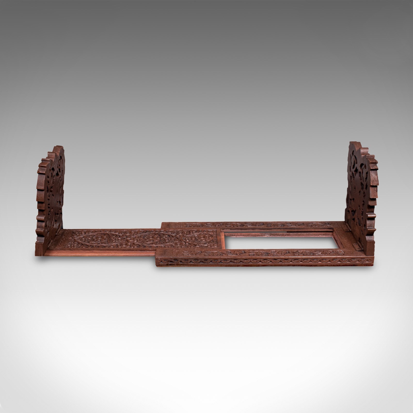 This is a delightful vintage bookslide, with Colonial taste to the striking pierced fretwork. Offering appeal to bibliophiles and collectors, the slide is delivered ready to display.
