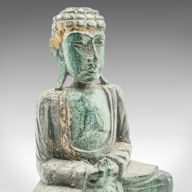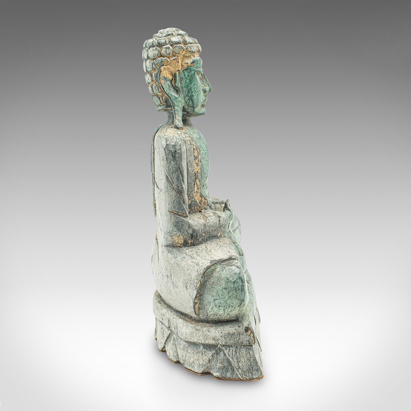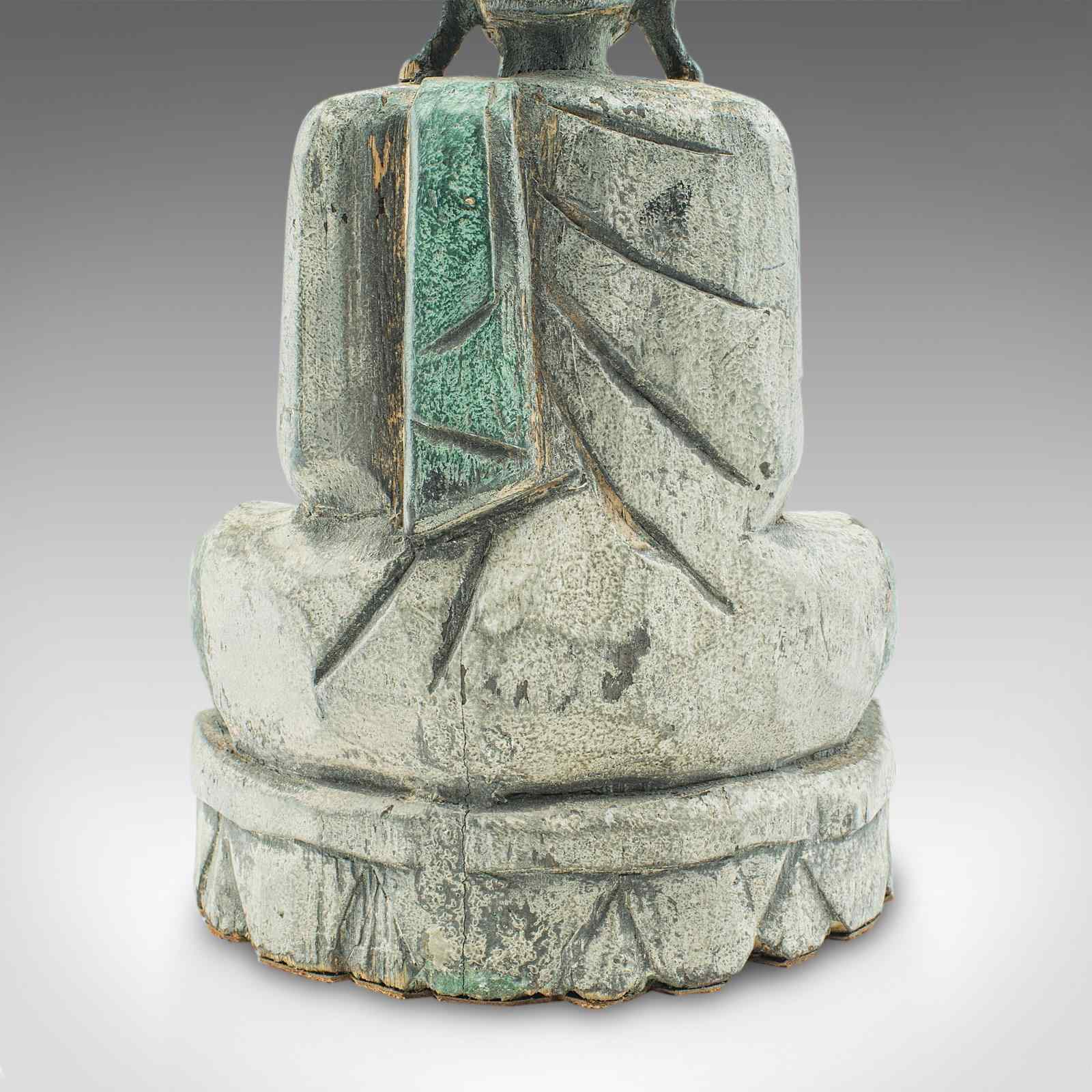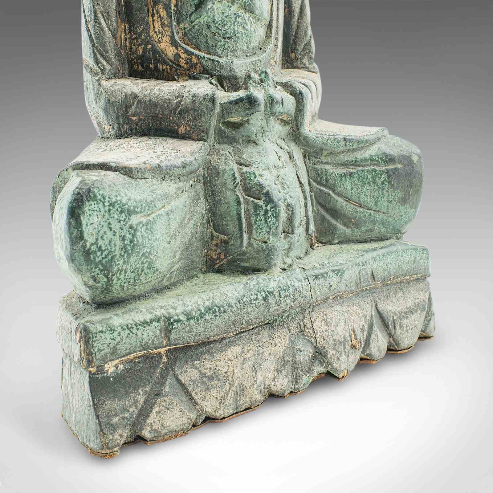 Vintage Carved Deity, Oriental, Bronzed Pine, Buddha Figure, Art Deco, C.1930