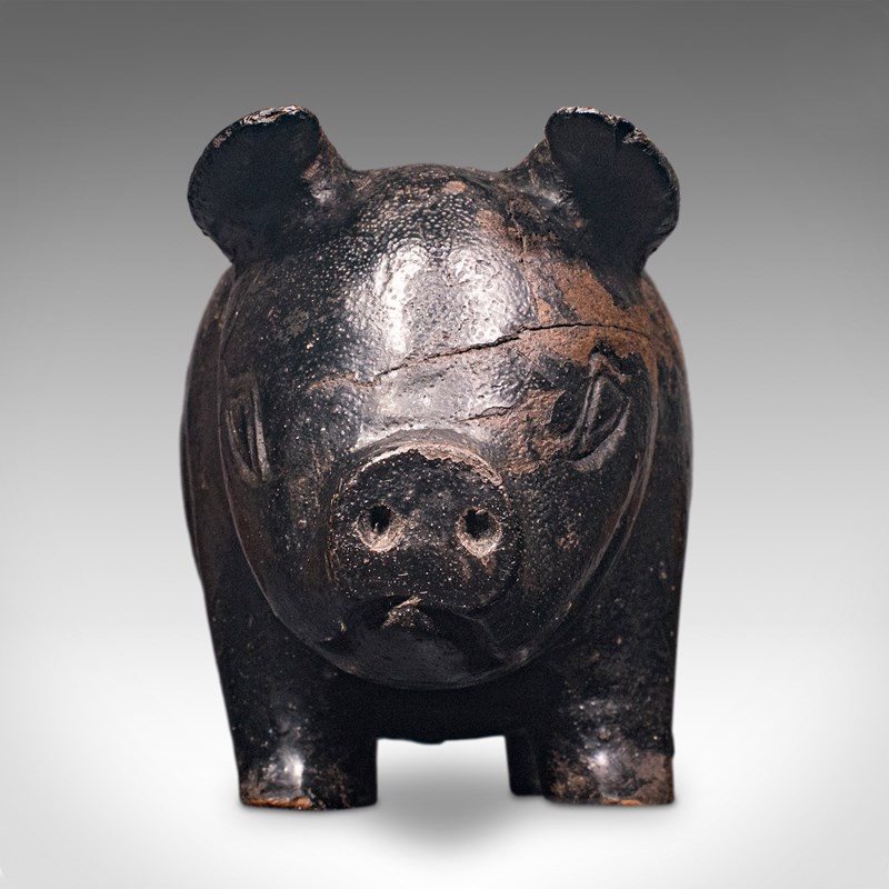 Crafted in the form of a British Lop piglet, with the forward lopped ears