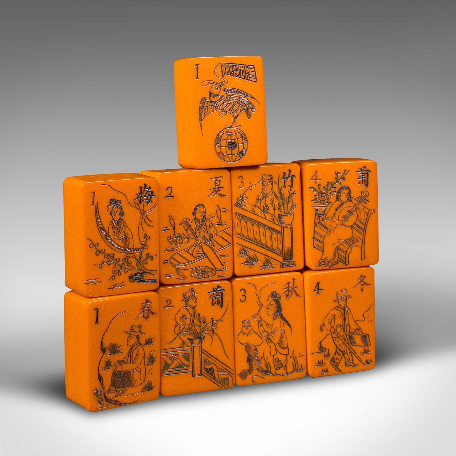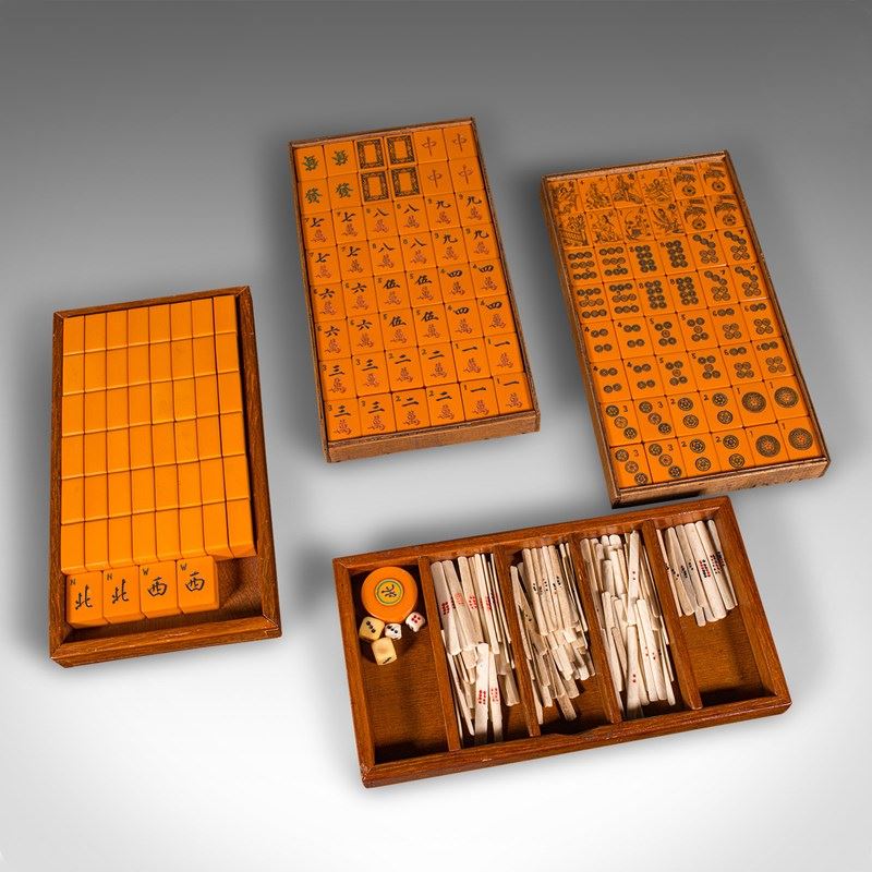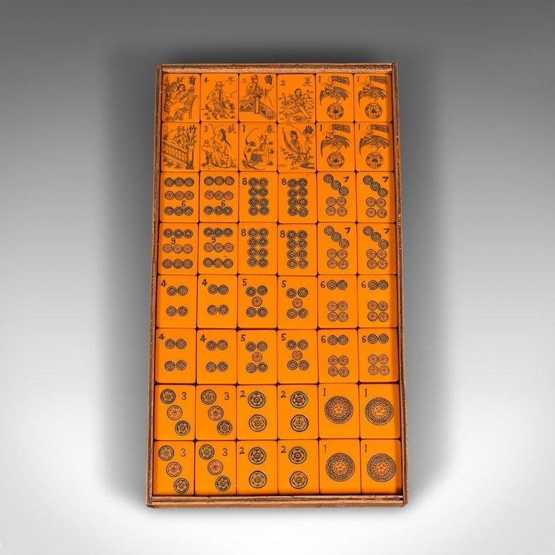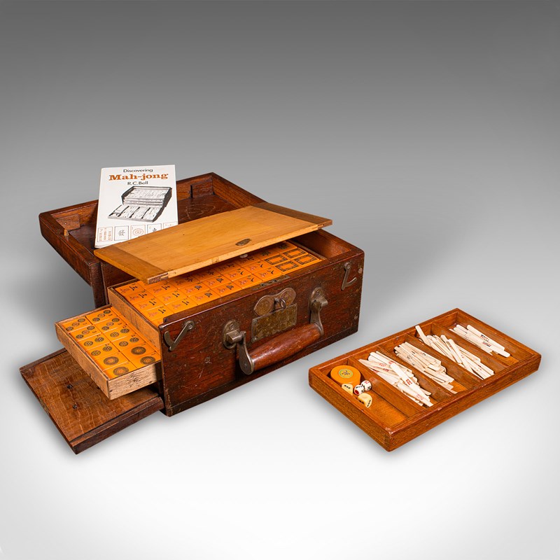 Vintage Cased Mahjong, Chinese, Gaming Counters, Antique Box, Art Deco, C.1940