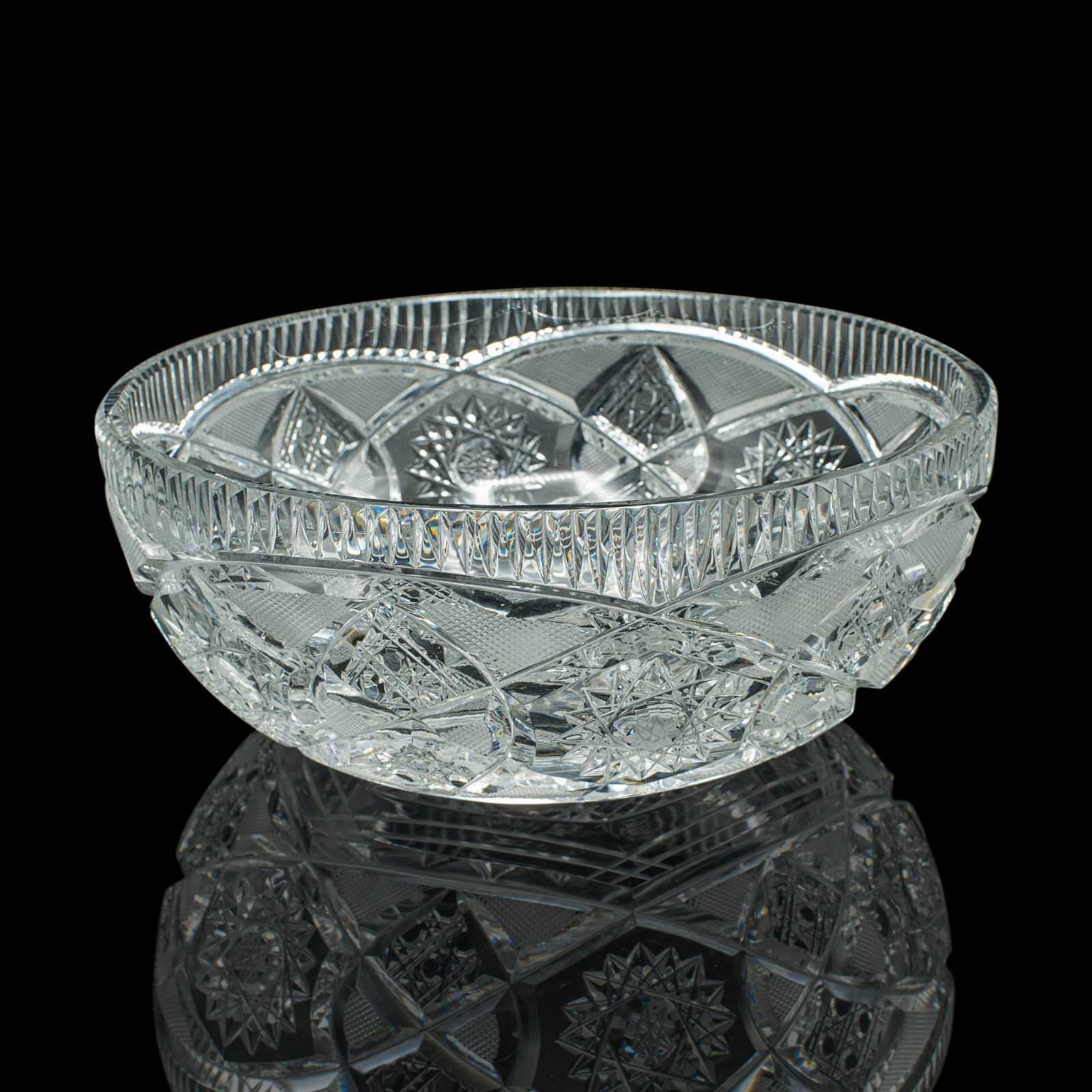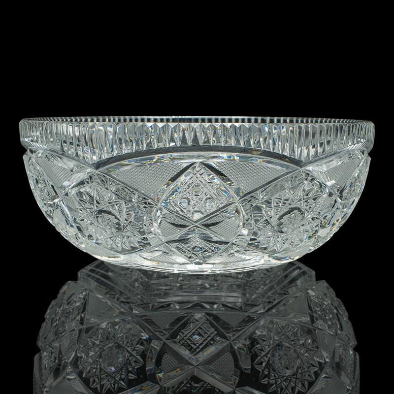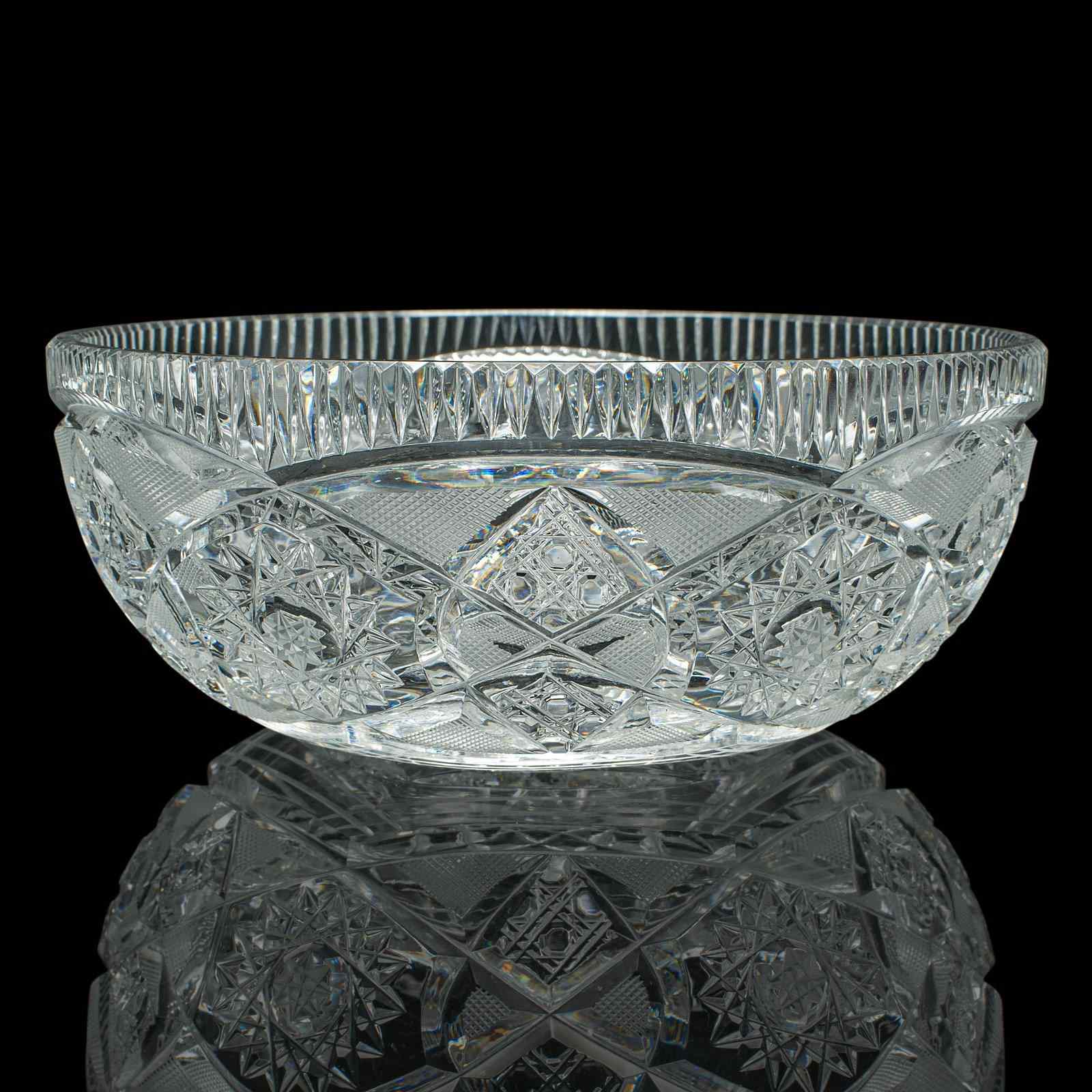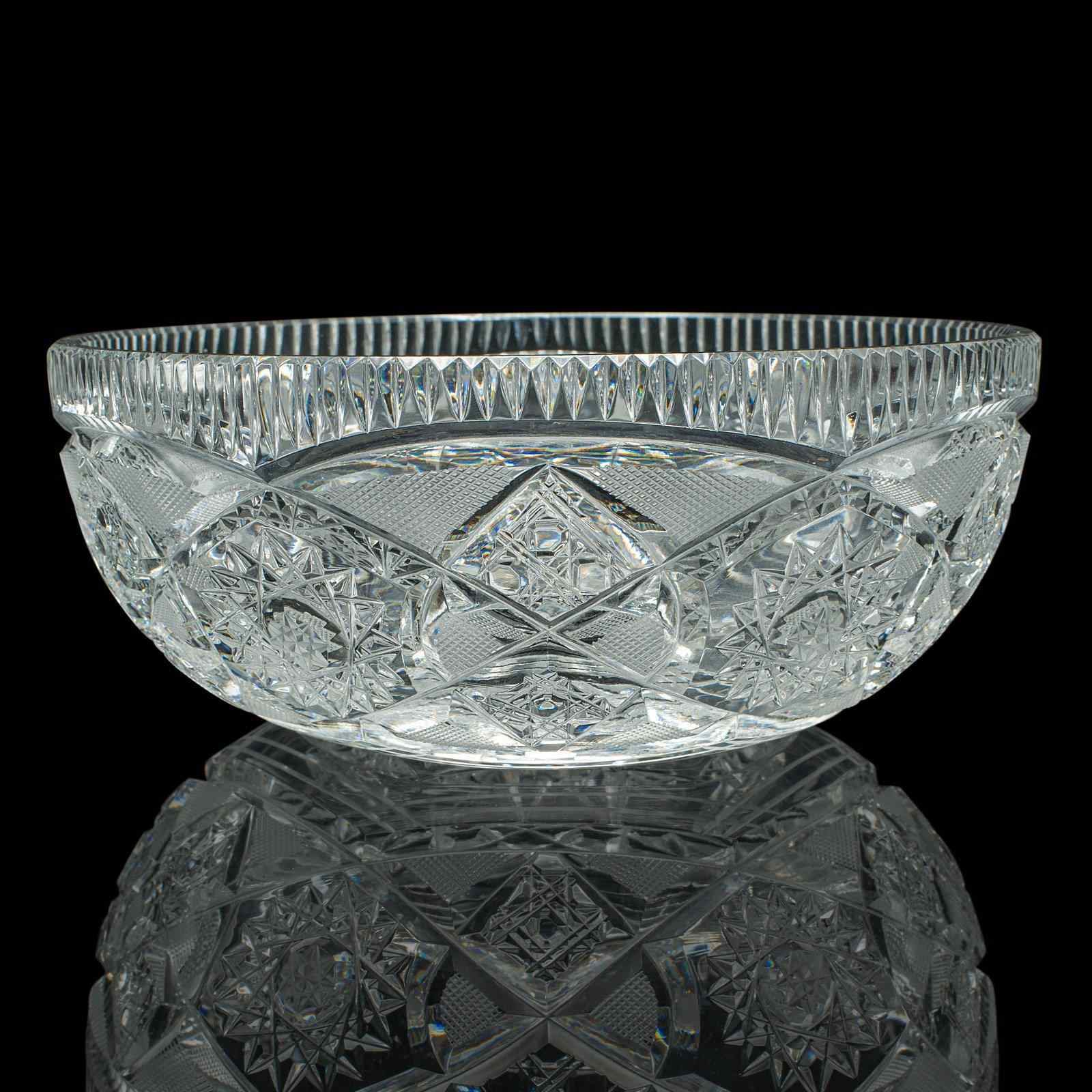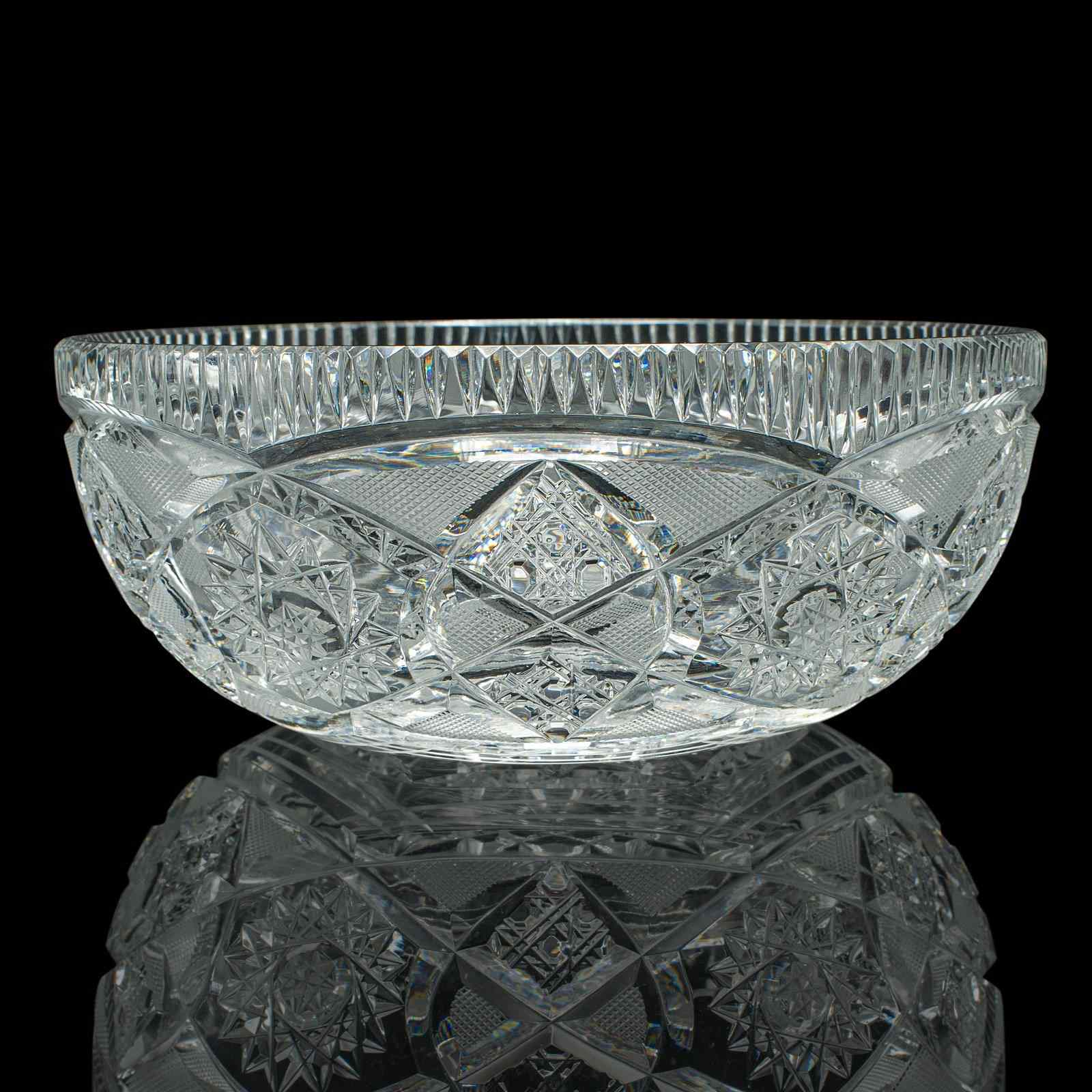 Vintage Centrepiece Fruit Bowl, English, Cut Crystal Glass, Decor, Serving Dish