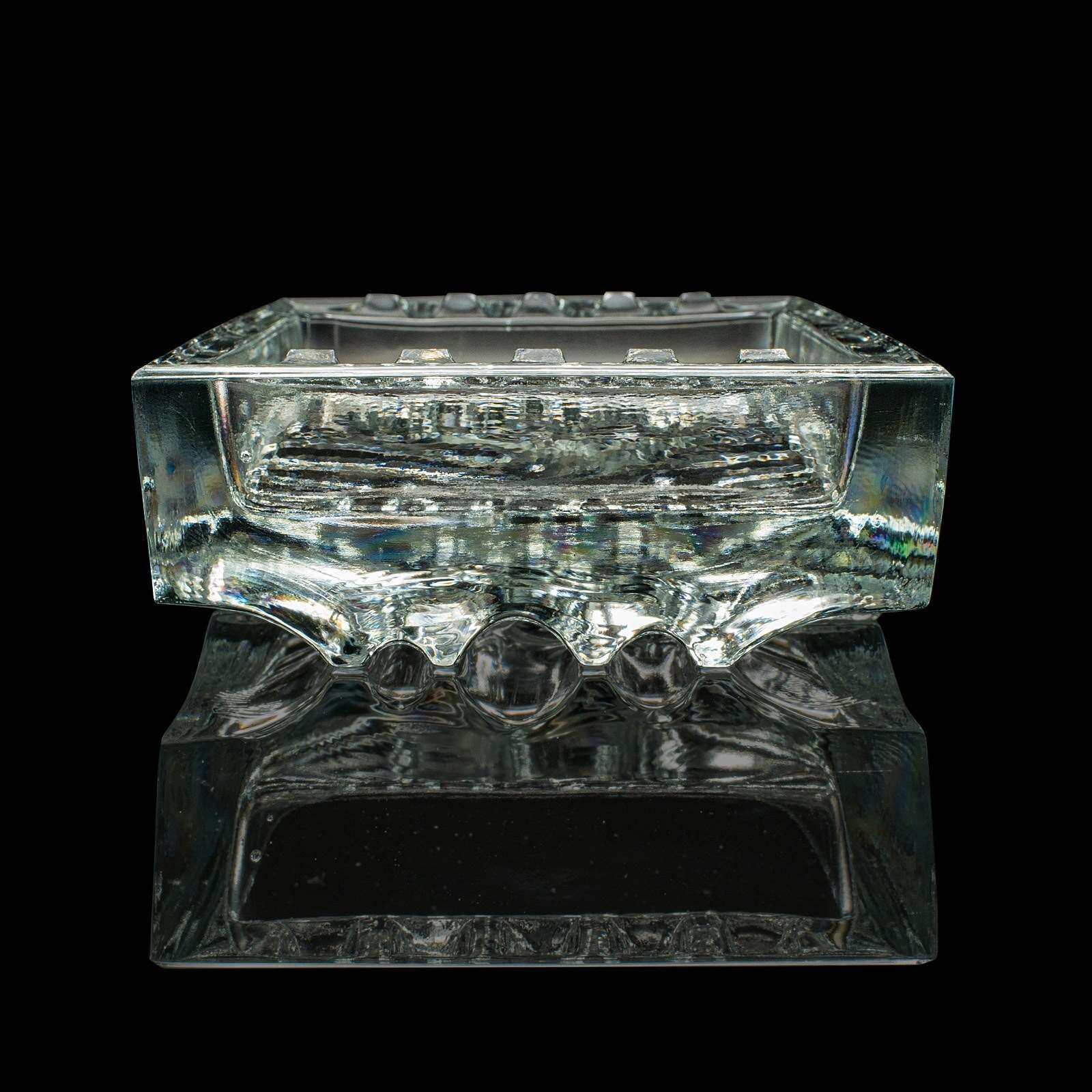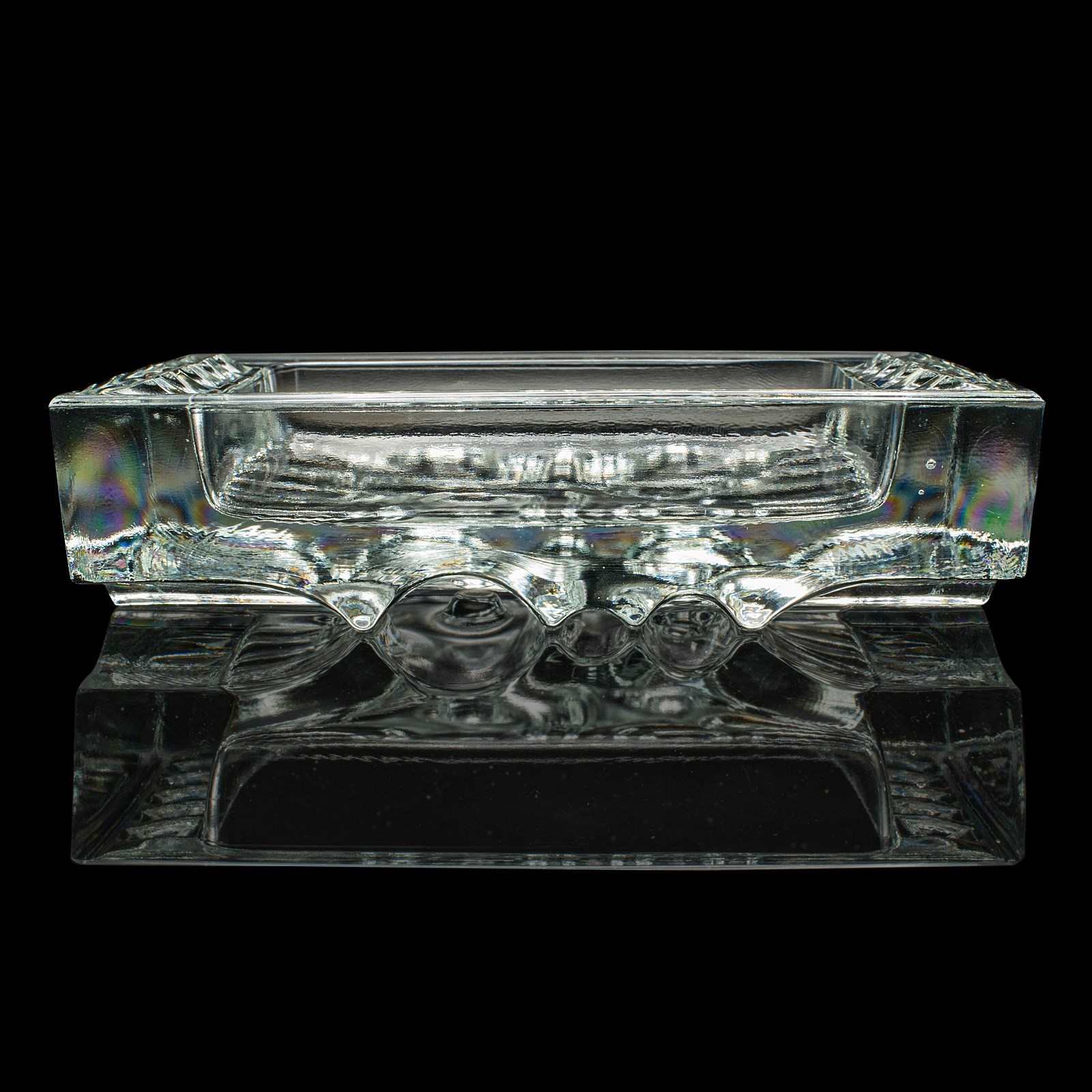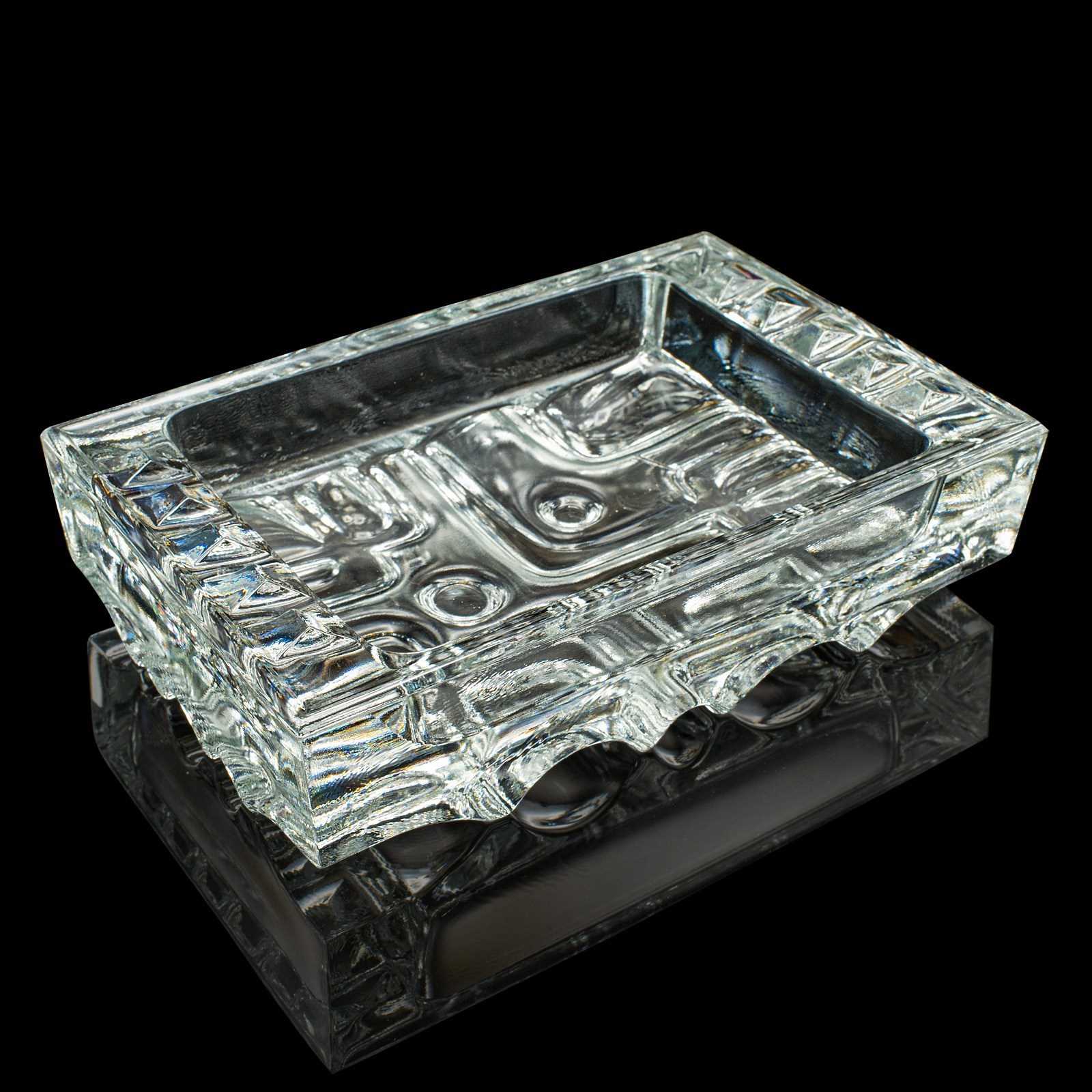 This is a vintage cigar ashtray. A Czech, Bohemian art glass decorative tray, dating to the late 20th century, circa 1970.