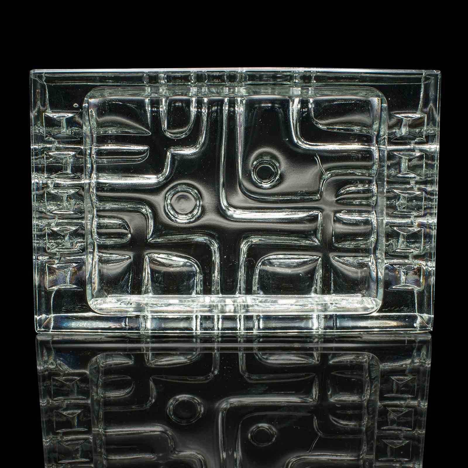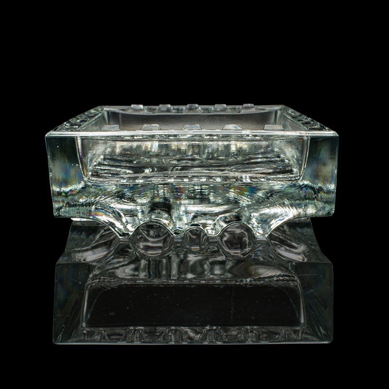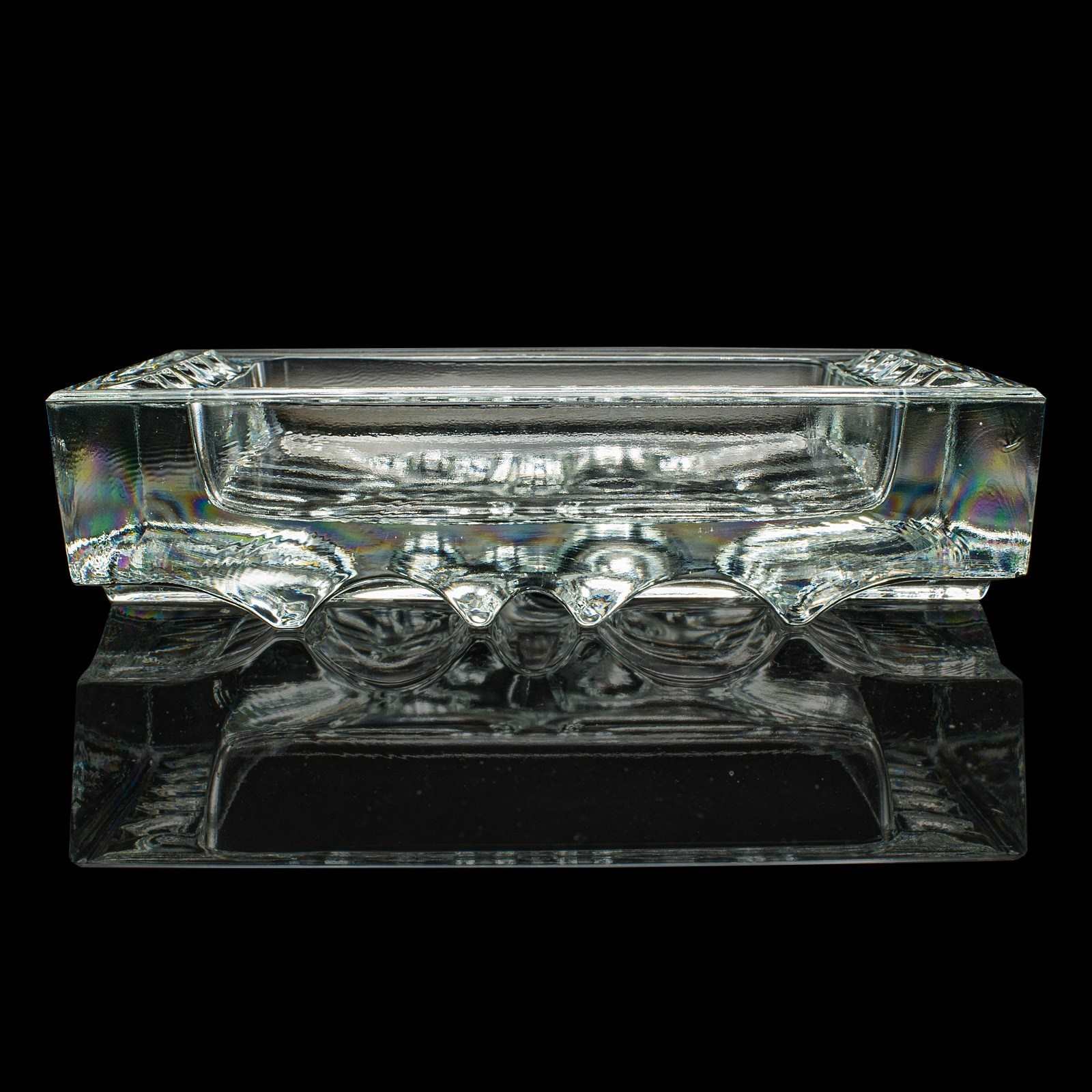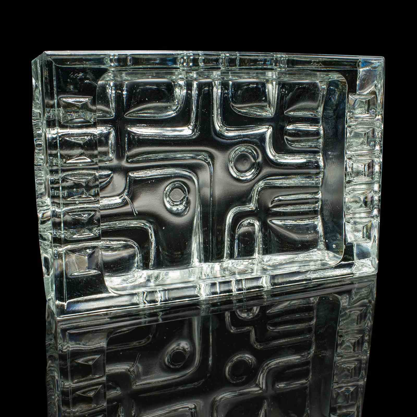 This is a vintage cigar ashtray. A Czech, Bohemian art glass decorative tray, dating to the late 20th century, circa 1970.