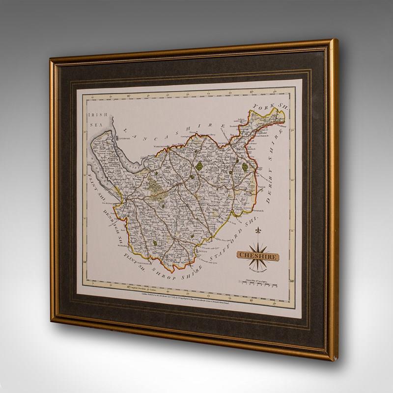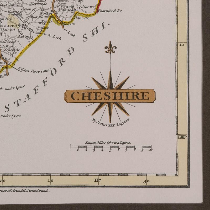 Vintage County Map Of Cheshire, English, After John Cary, Cartography Interest