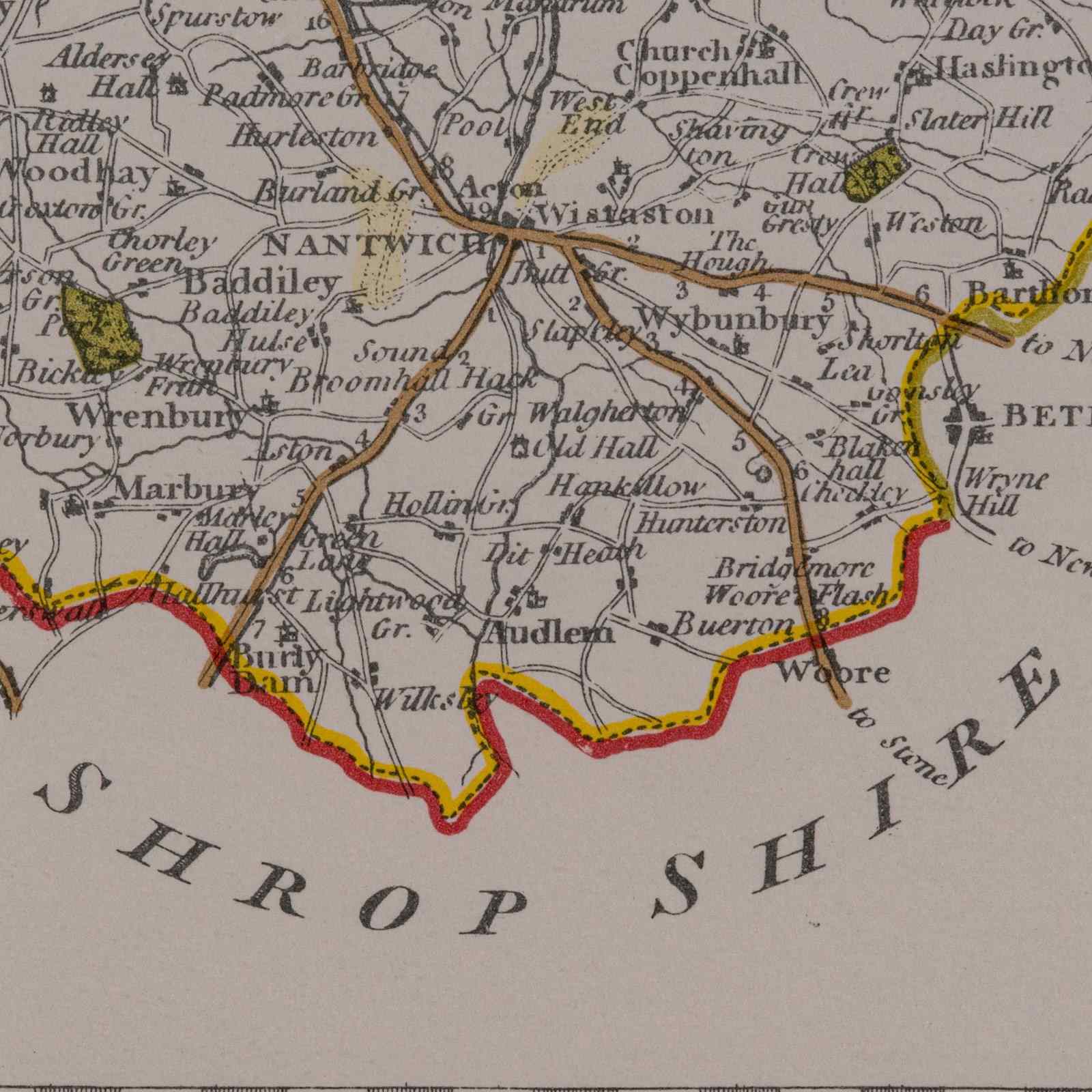 Superb county map of Cheshire, offering fine cartographic interest