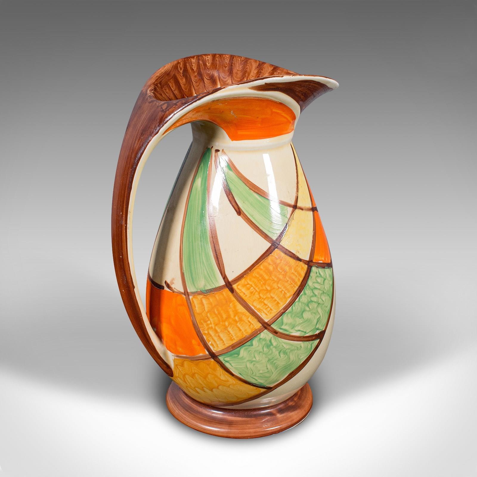 This is a vintage cream pouring jug. An English, hand painted ceramic decorative server in Art Deco taste, dating to the early 20th century, circa 1930.