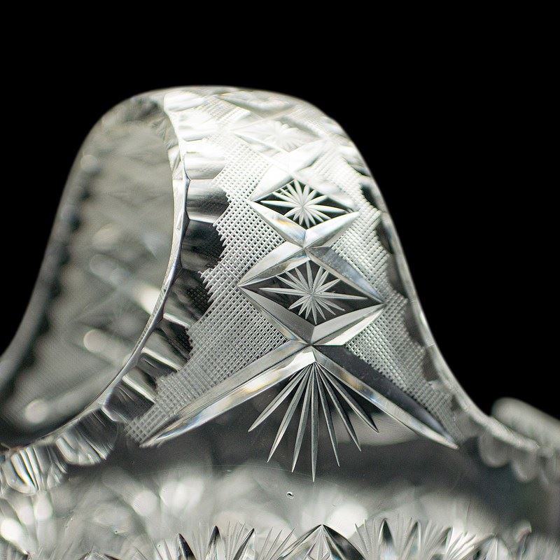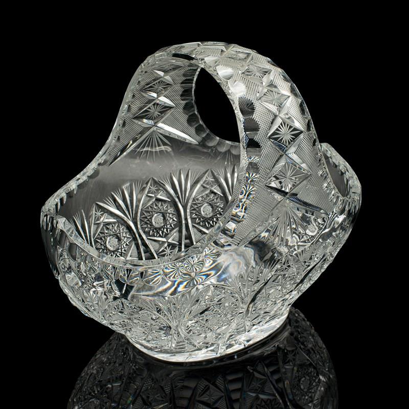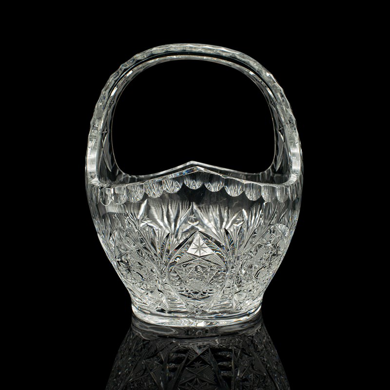 This is a fascinating vintage crystal fruit trug, with an eye-catching cut pattern throughout. Delivered ready to enjoy.