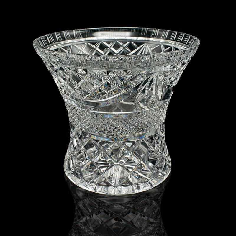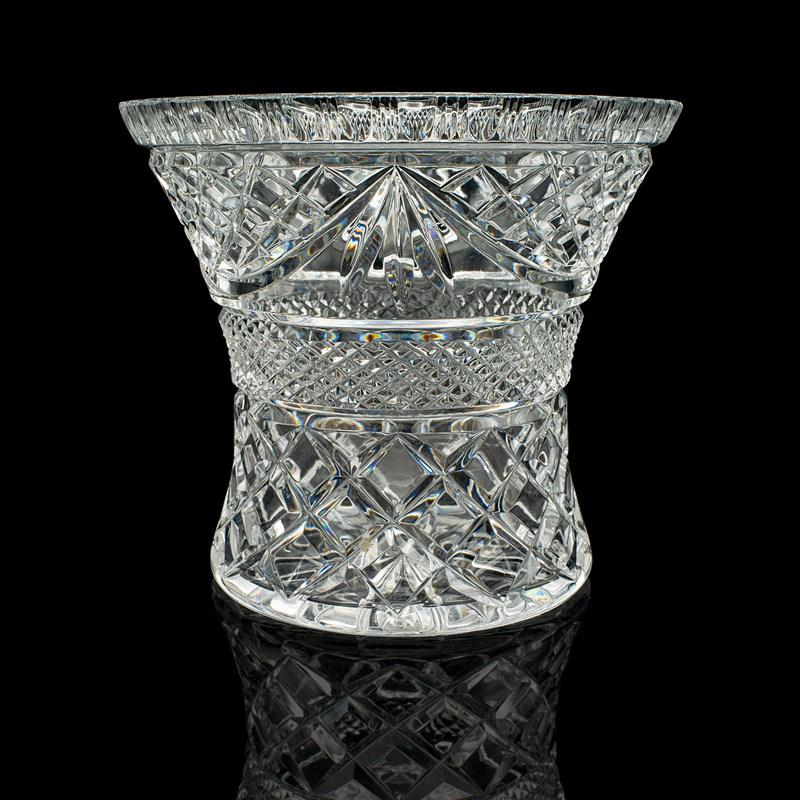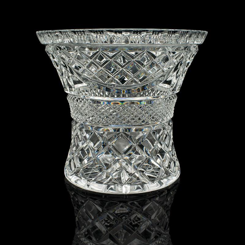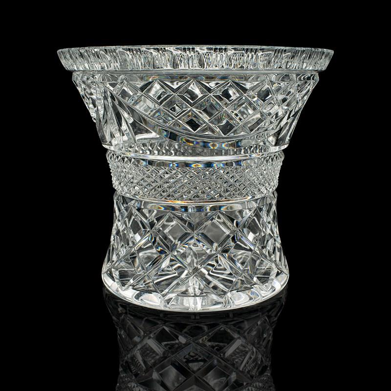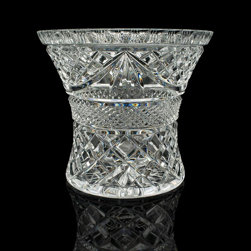 This is a vintage crystal ice bucket. An English, cut crystal glass bottle cooler, dating to the mid 20th century, circa 1950.