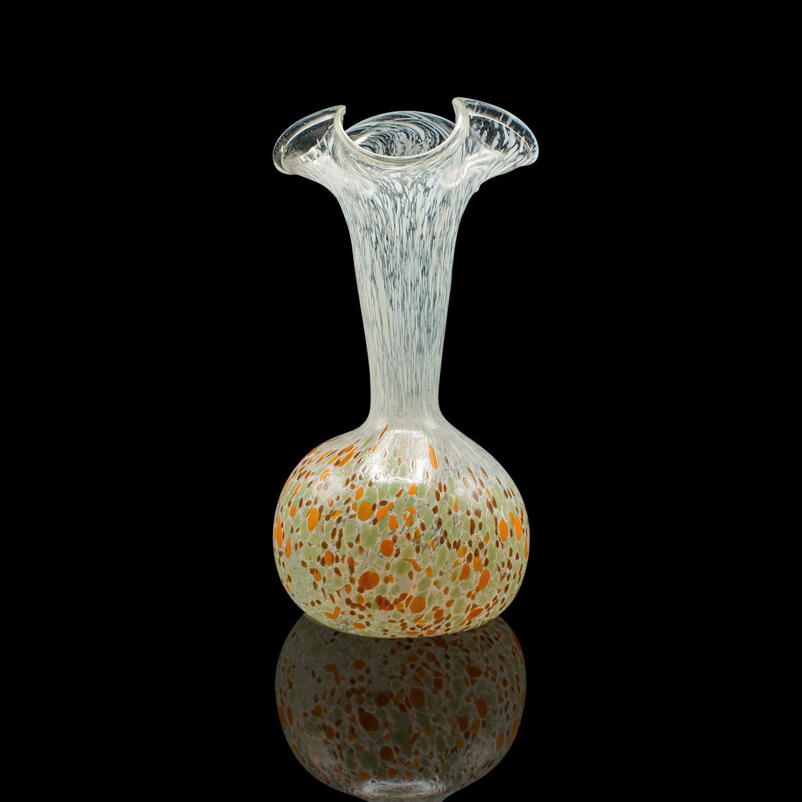This is a vintage display vase with expressive blown glass artistry, dating to the late 20th century, circa 1970. This Continental posy sleeve showcases a striking mid-century inspired colour palette and a bold decorative presence, making it a charming addition to any collection or interior.