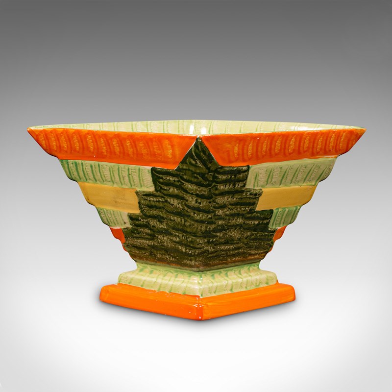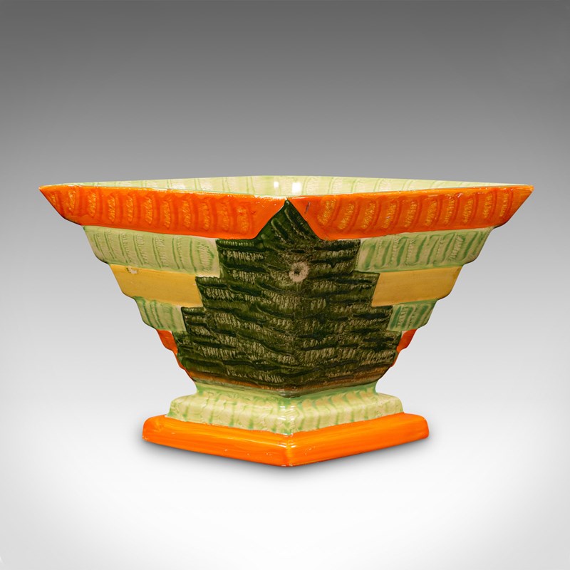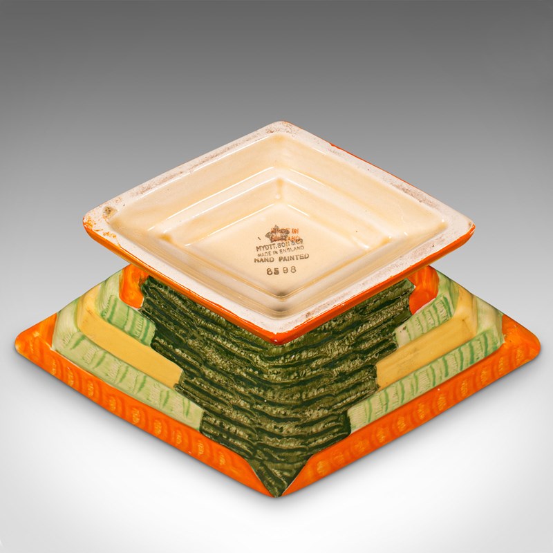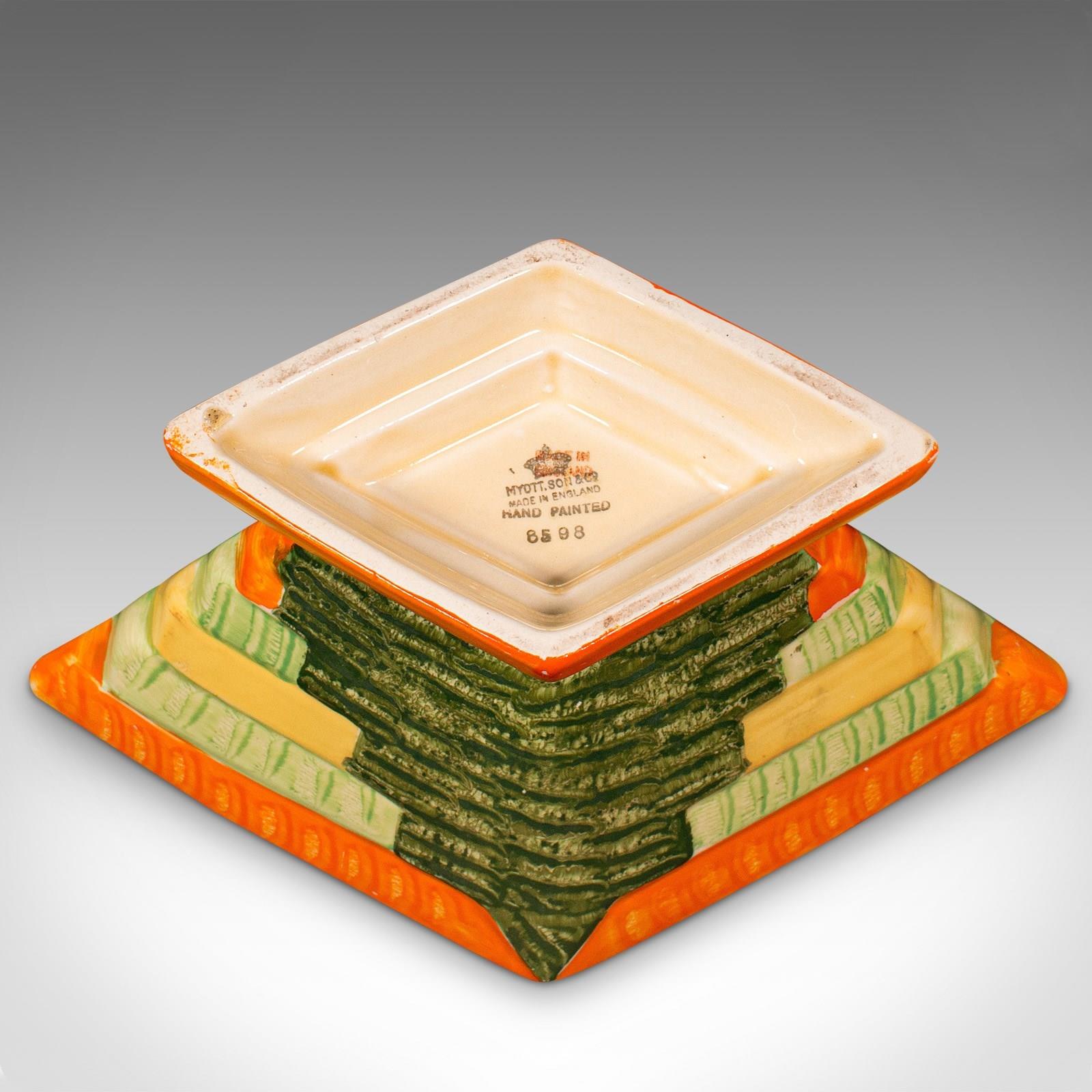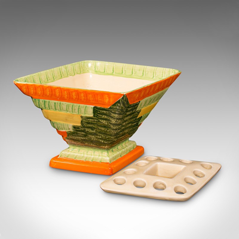 This is a vintage dried flower vase. An English, hand-painted ceramic decorative diamond shaped pot, dating to the Art Deco period, circa 1930.