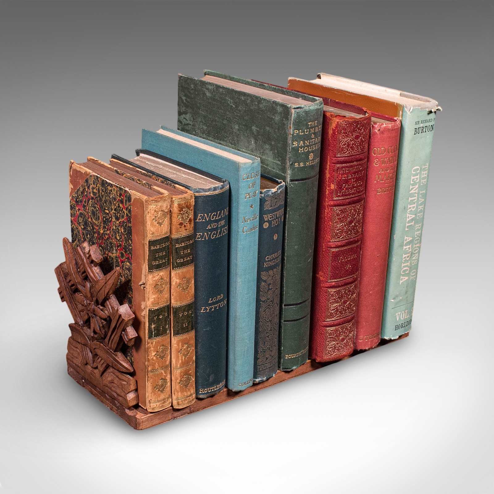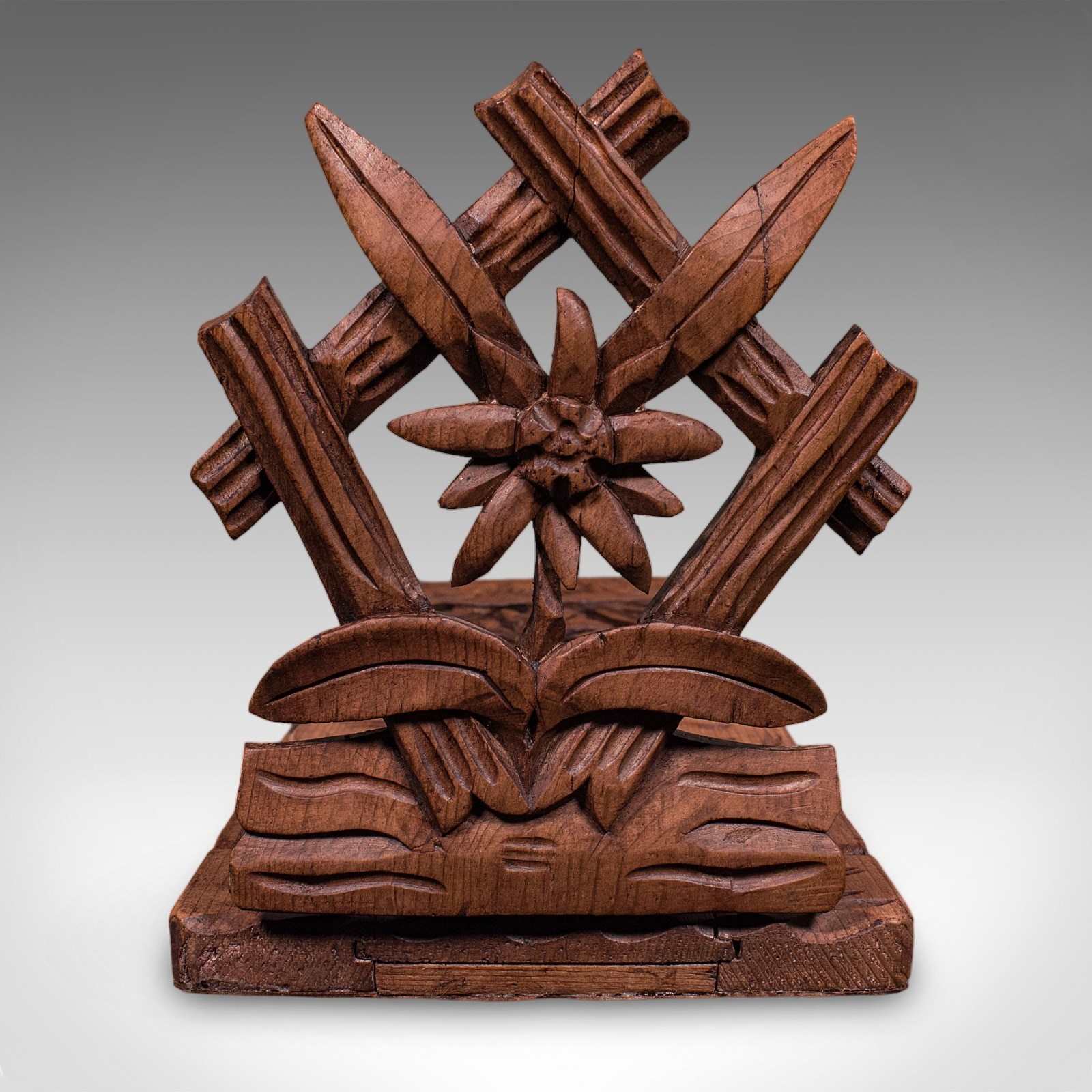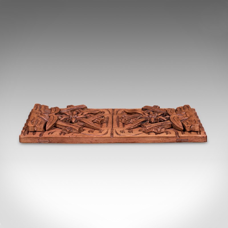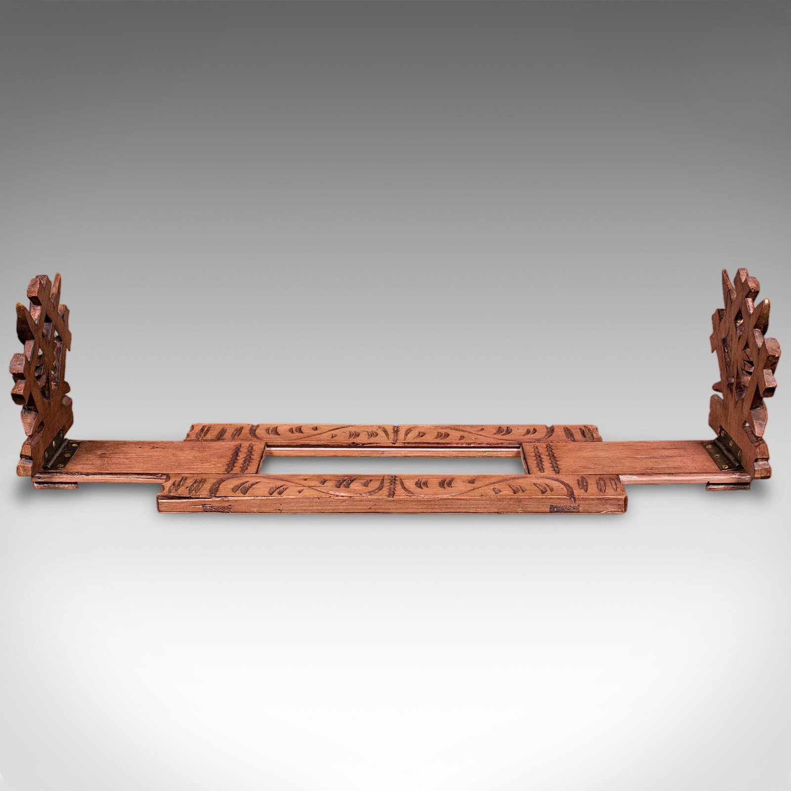 This is a charming vintage extending book slide, with distinctive carving and usefully extending to both ends. Offering appeal to bibliophiles and collectors, delivered ready to display.