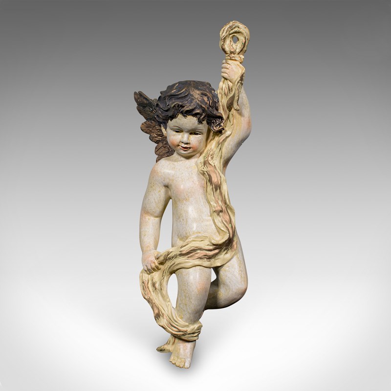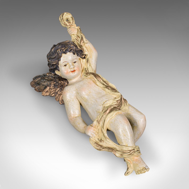 This is a delightful vintage flying cherub, offering Italianate elegance and classical appeal. Delivered ready for display.