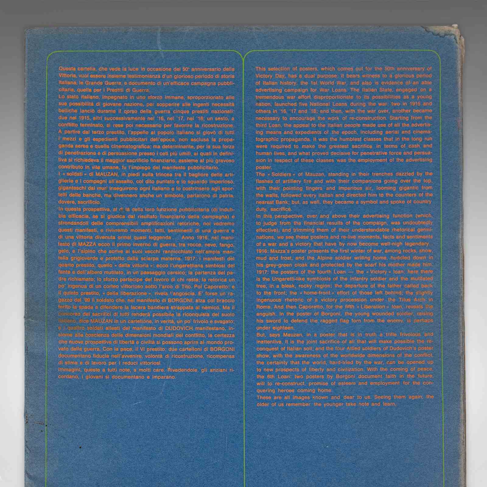 This is a vintage folio of 12 posters titled 50° Della Redenzione 1918–1968. An Italian, art exhibition collection of WWI era propaganda, dating to the mid 20th century, printed in 1968. A fascinating mid 20th century commemorative folio presenting striking Italian poster art with historical and graphic design interest.