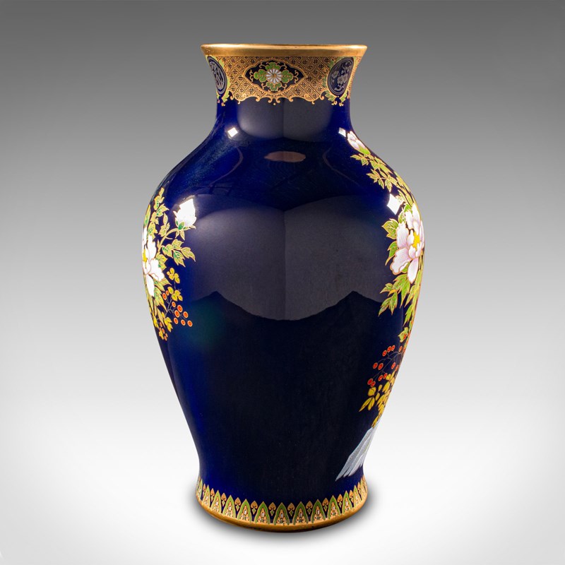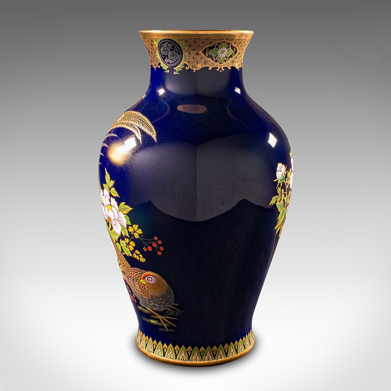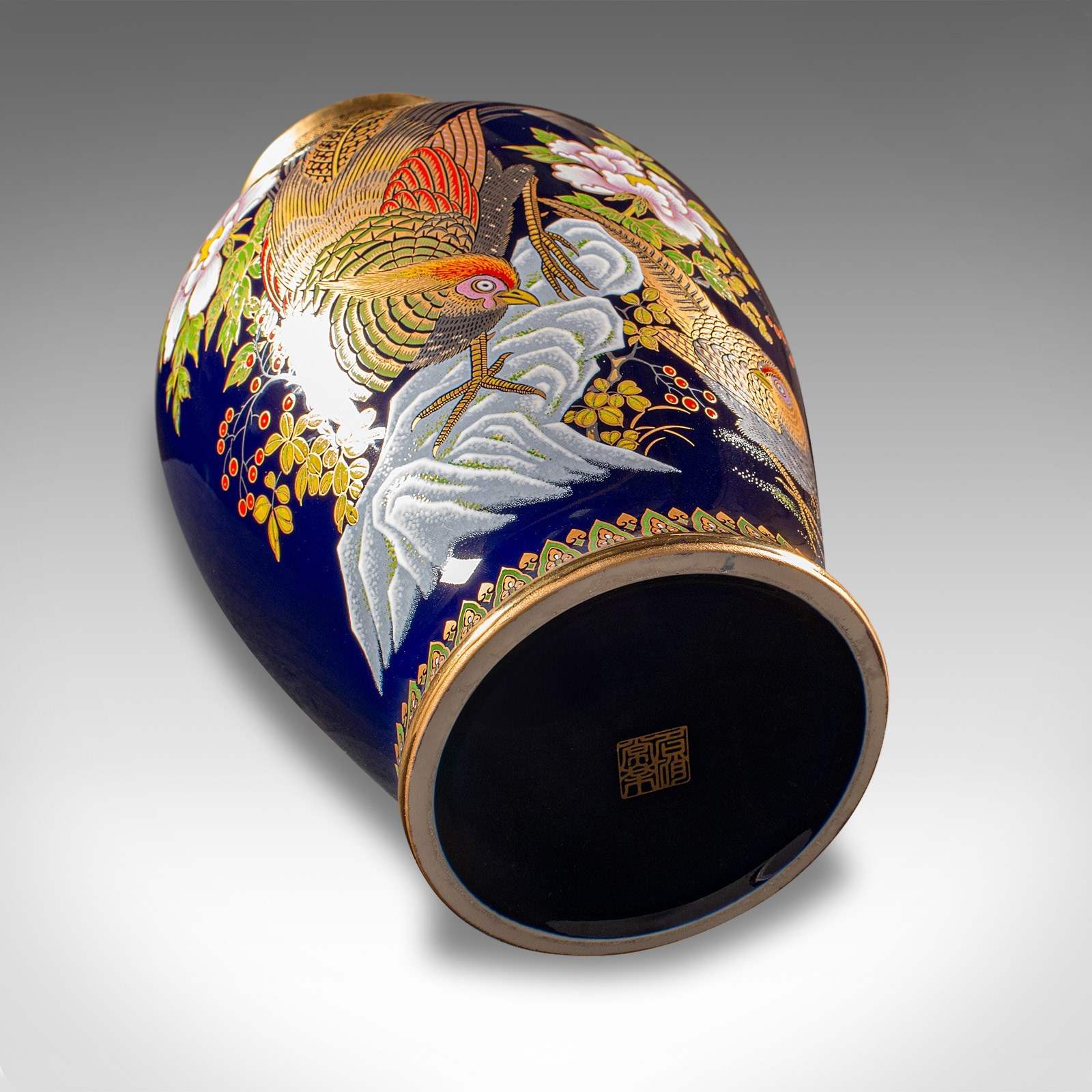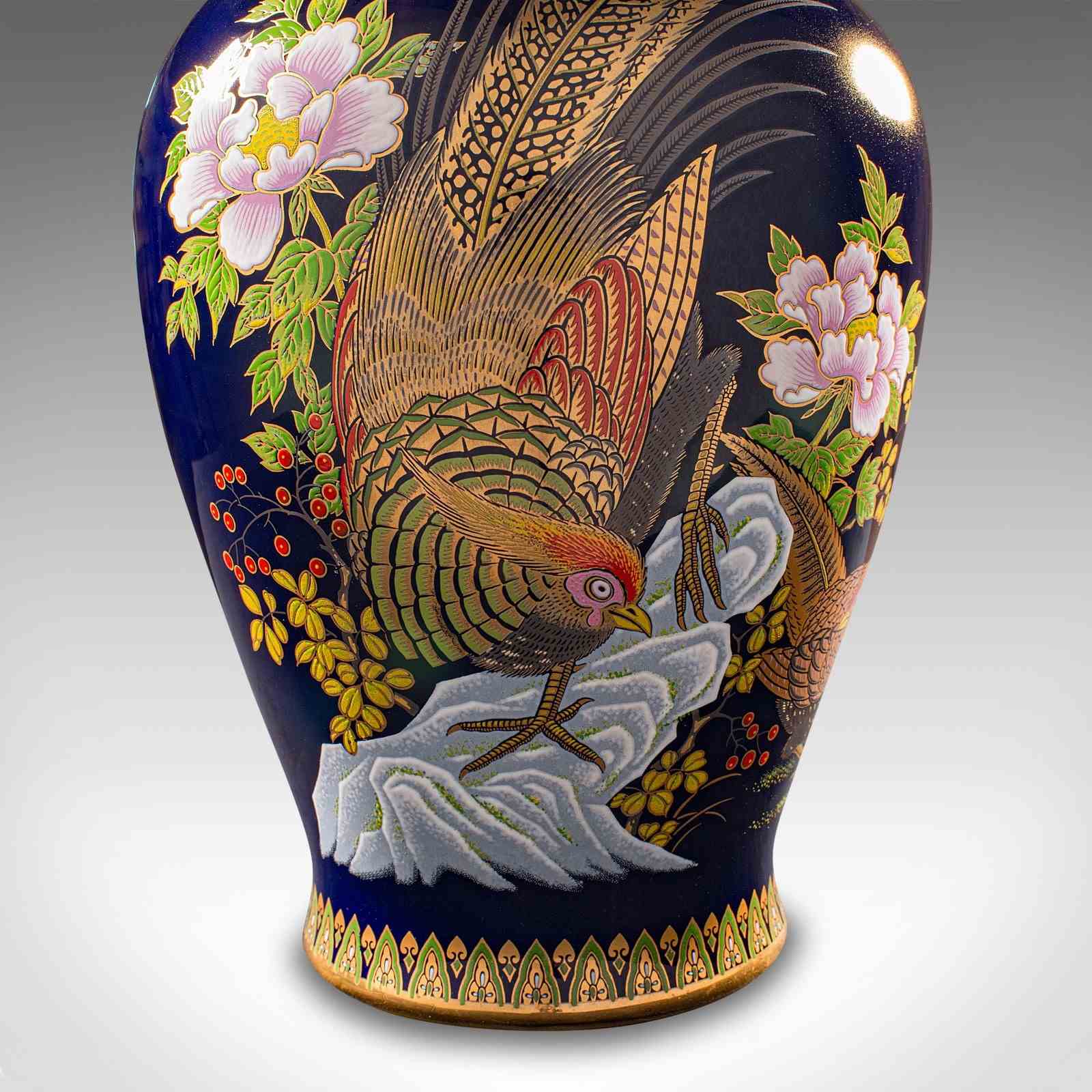 This is a vintage pheasant vase. A Chinese, lacquer ceramic baluster urn, dating to the late 20th century, circa 1980.