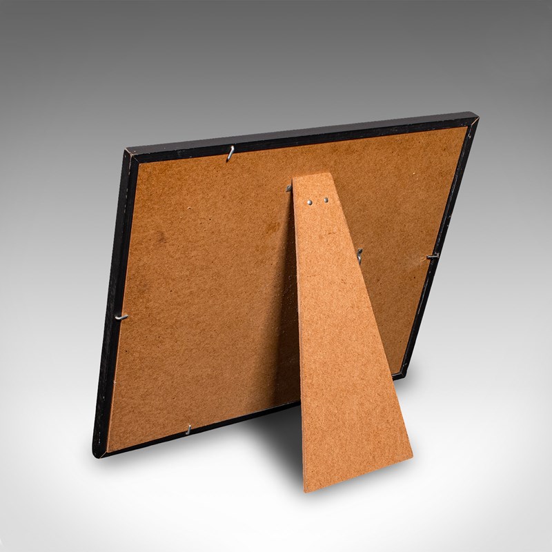 Set within an ebonised frame, with angled desk stand arm